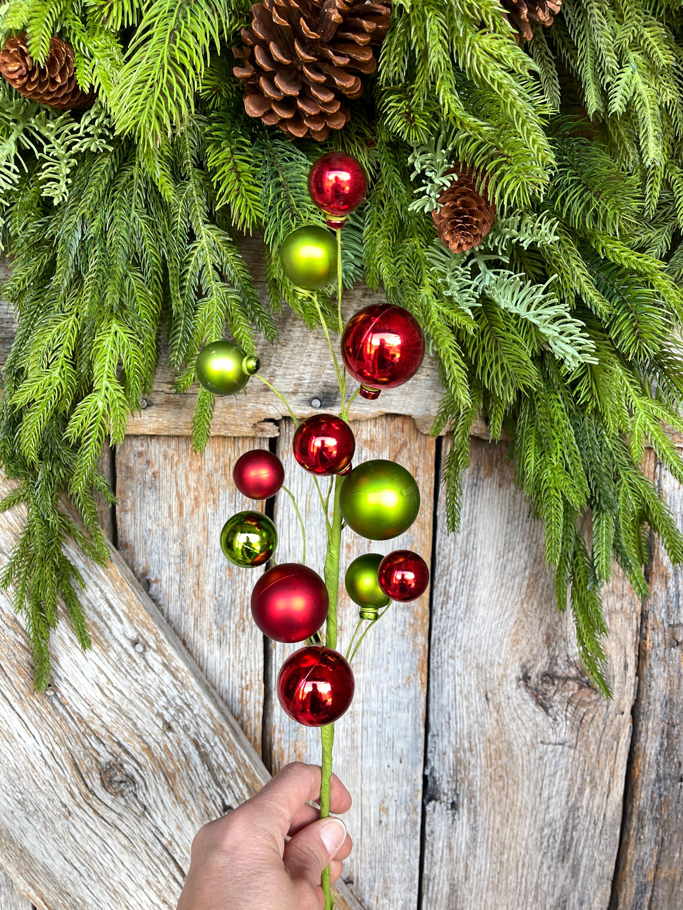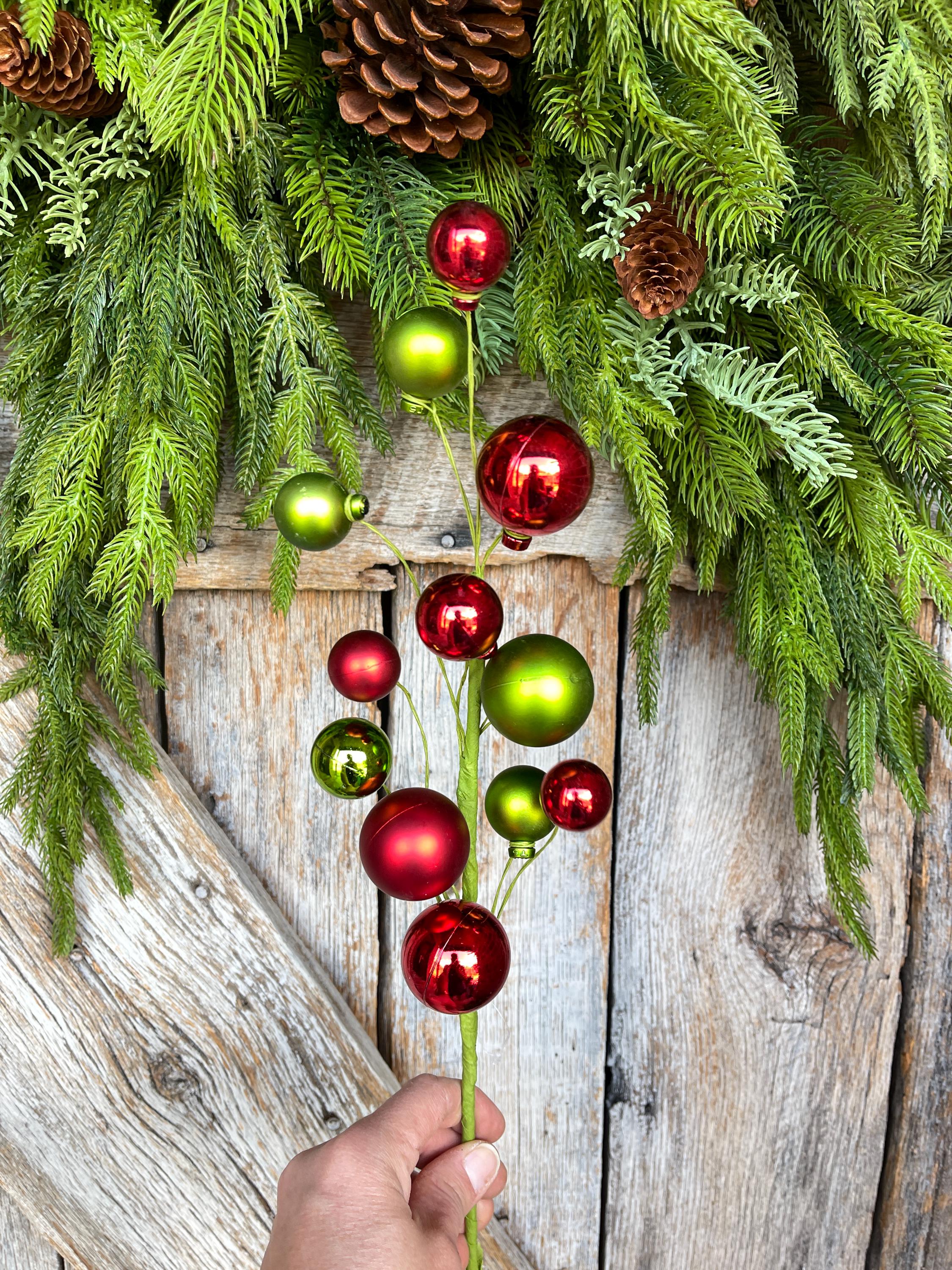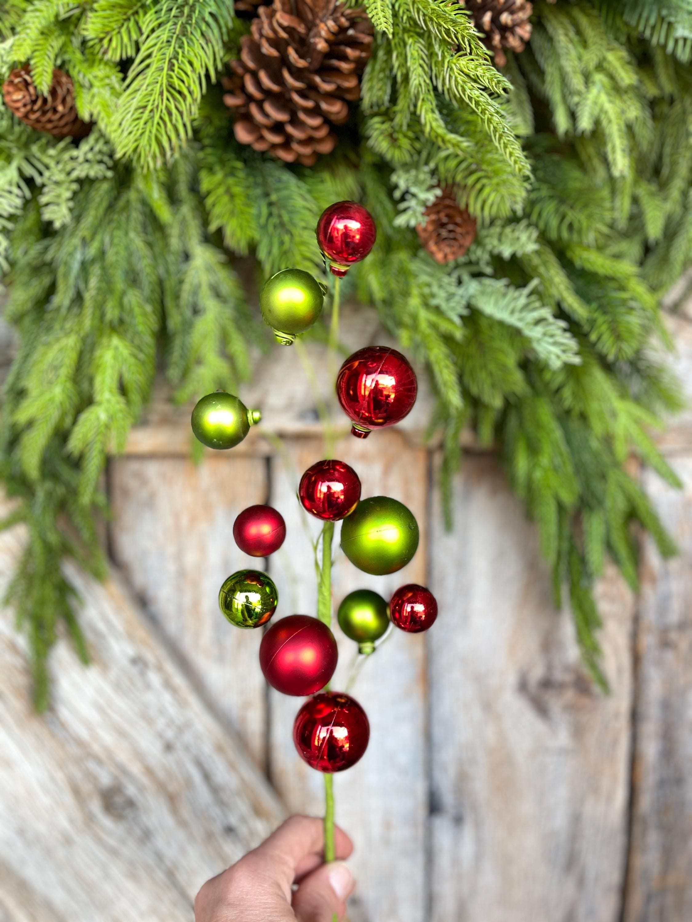 16" Ornament Ball Pick, Red Green Ball Pick, Ornament Pick, Christmas Ornaments