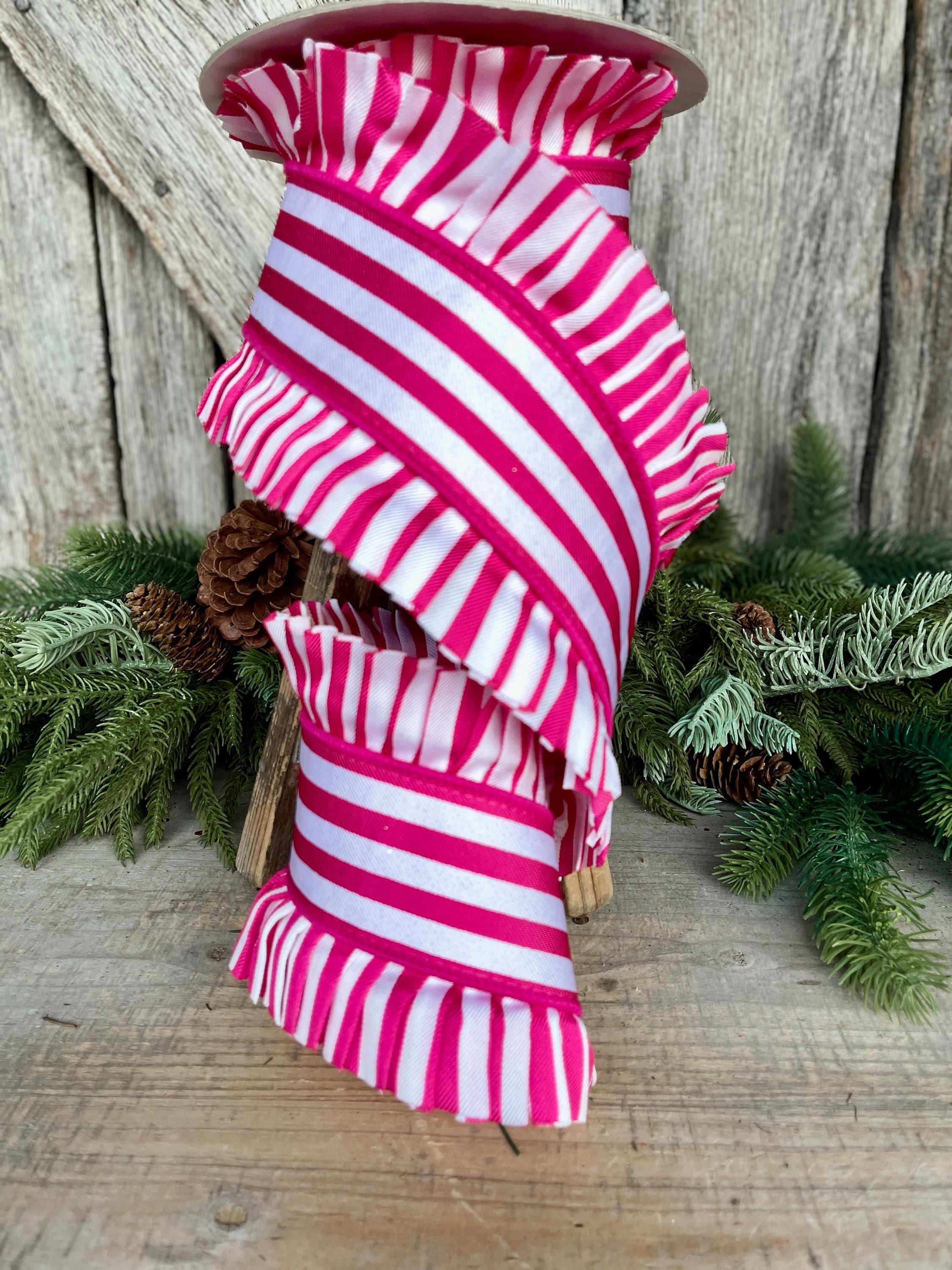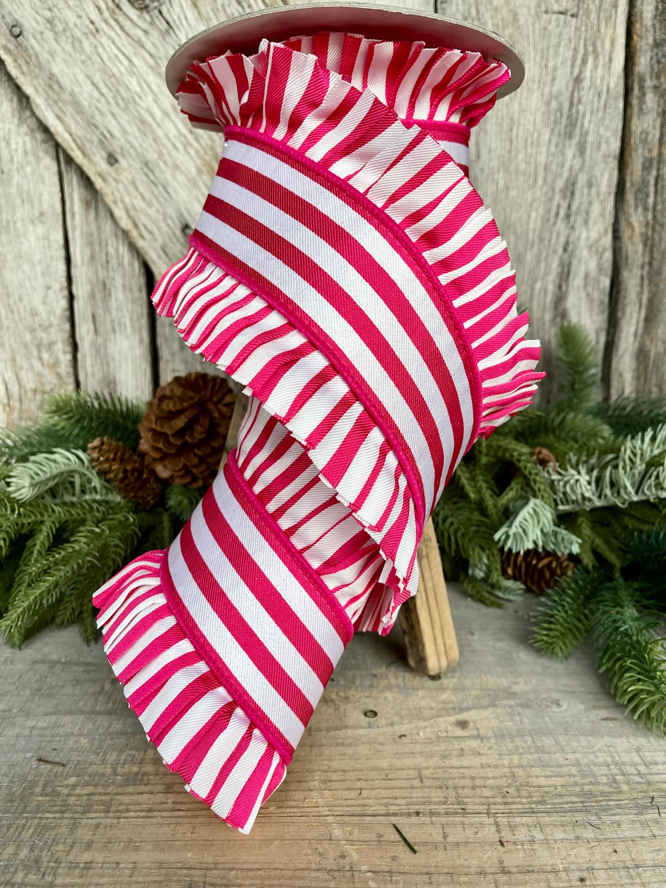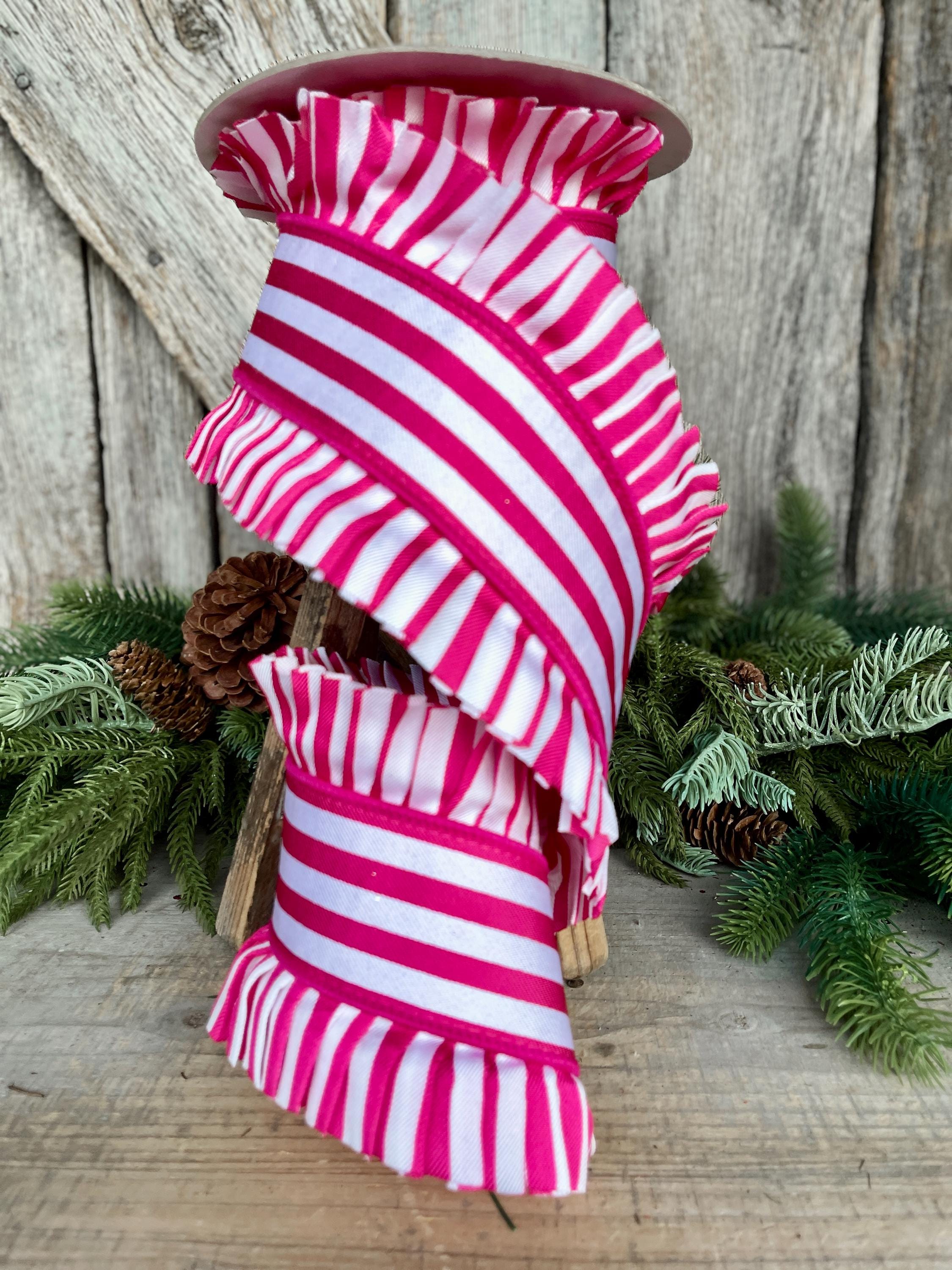 4.5" Hot Pink Ruffle Ribbon, Farrisilk Ribbon, Pink Candy Wrap Ruffle, Pink Stripe Ribbon, Pink Christmas Ribbon, Ruffle Ribbon, RK865-15