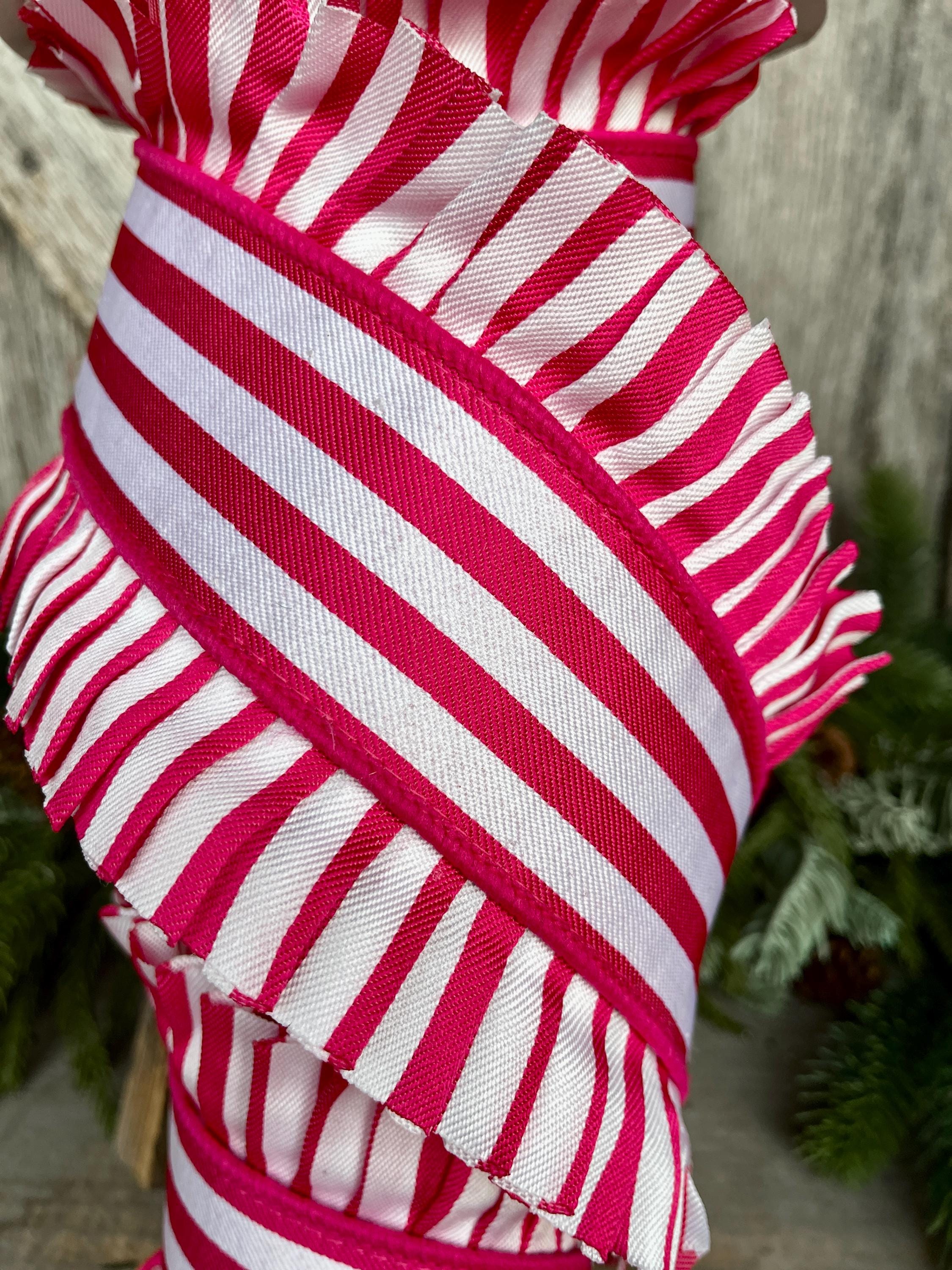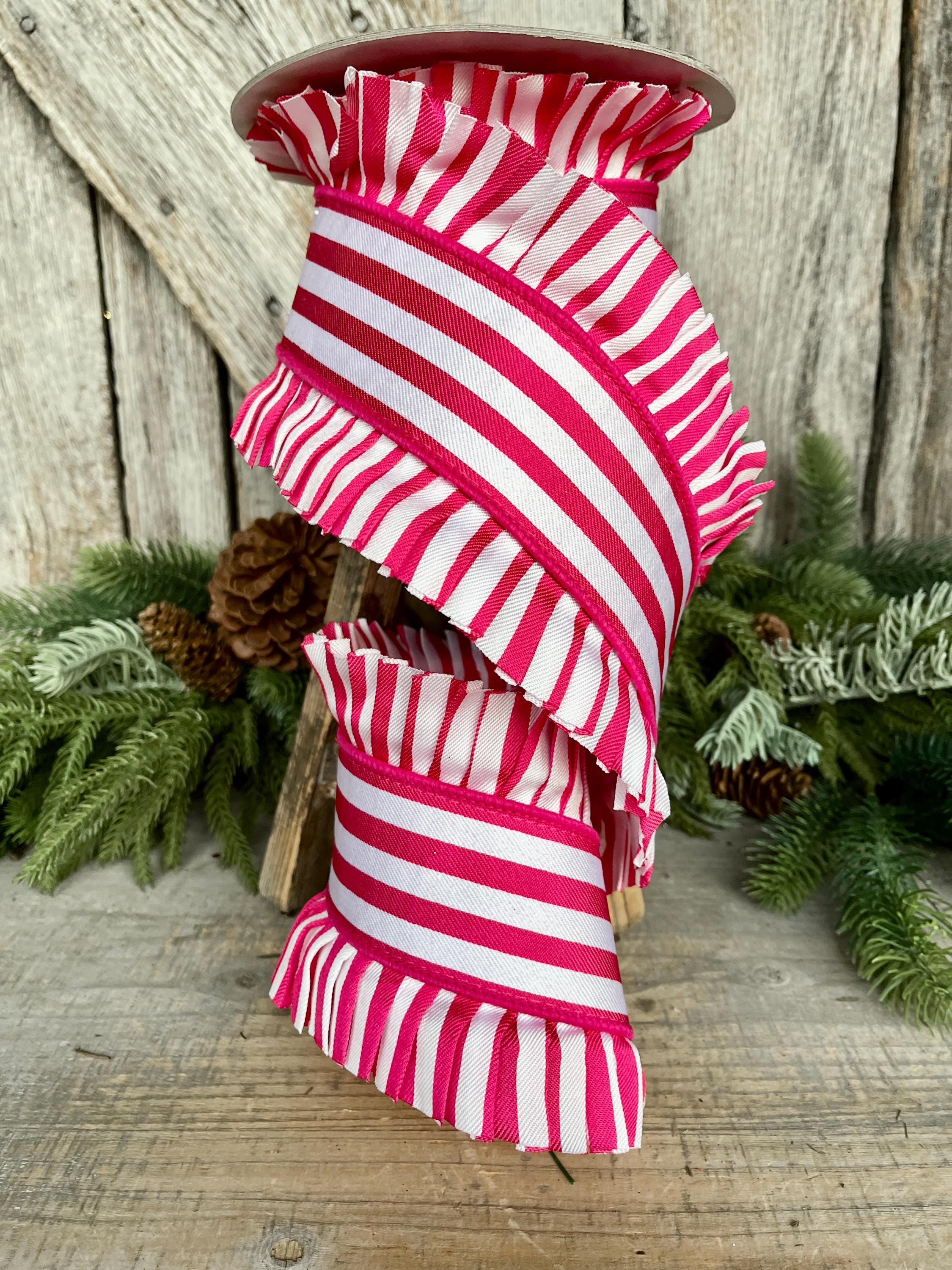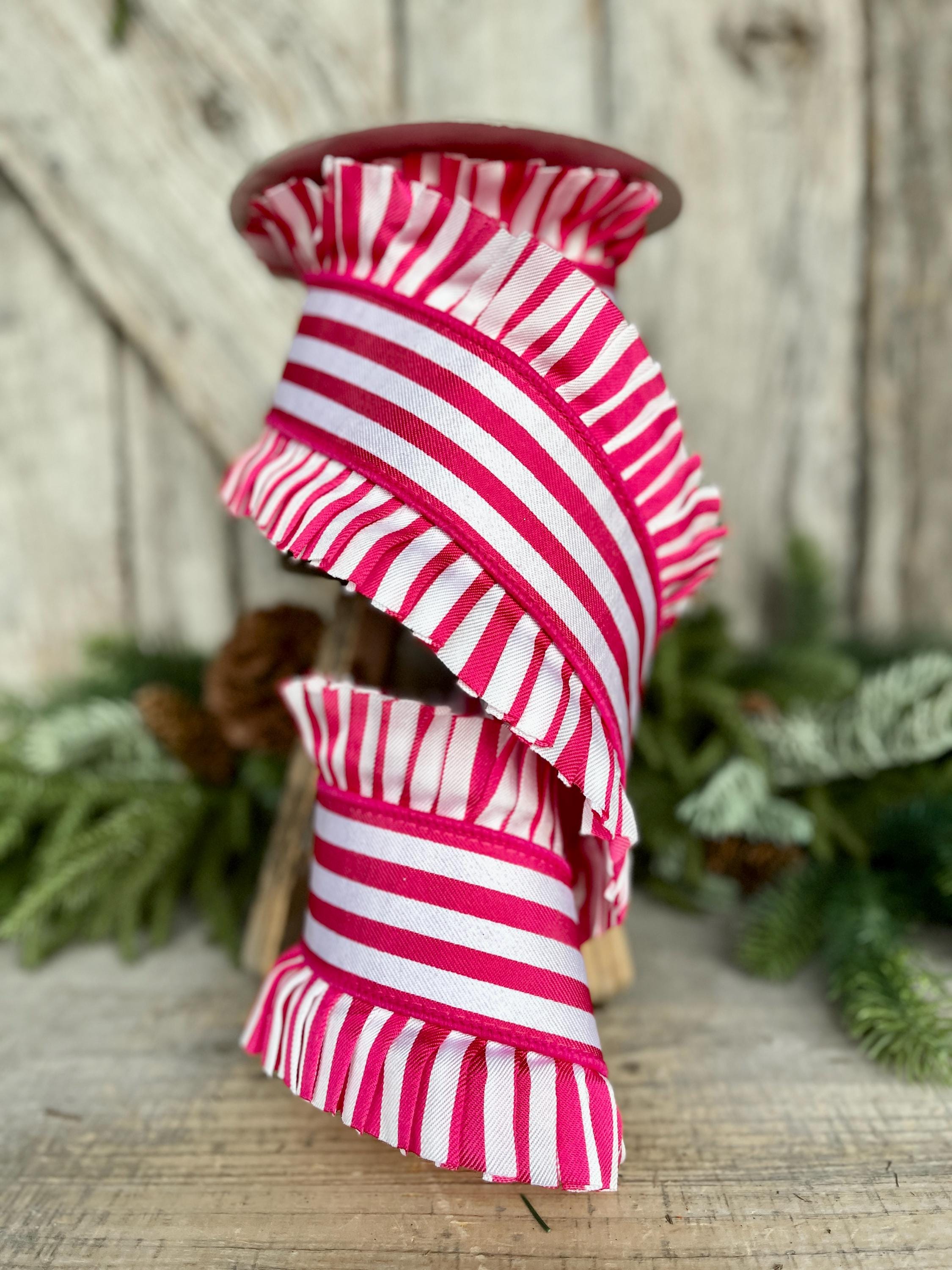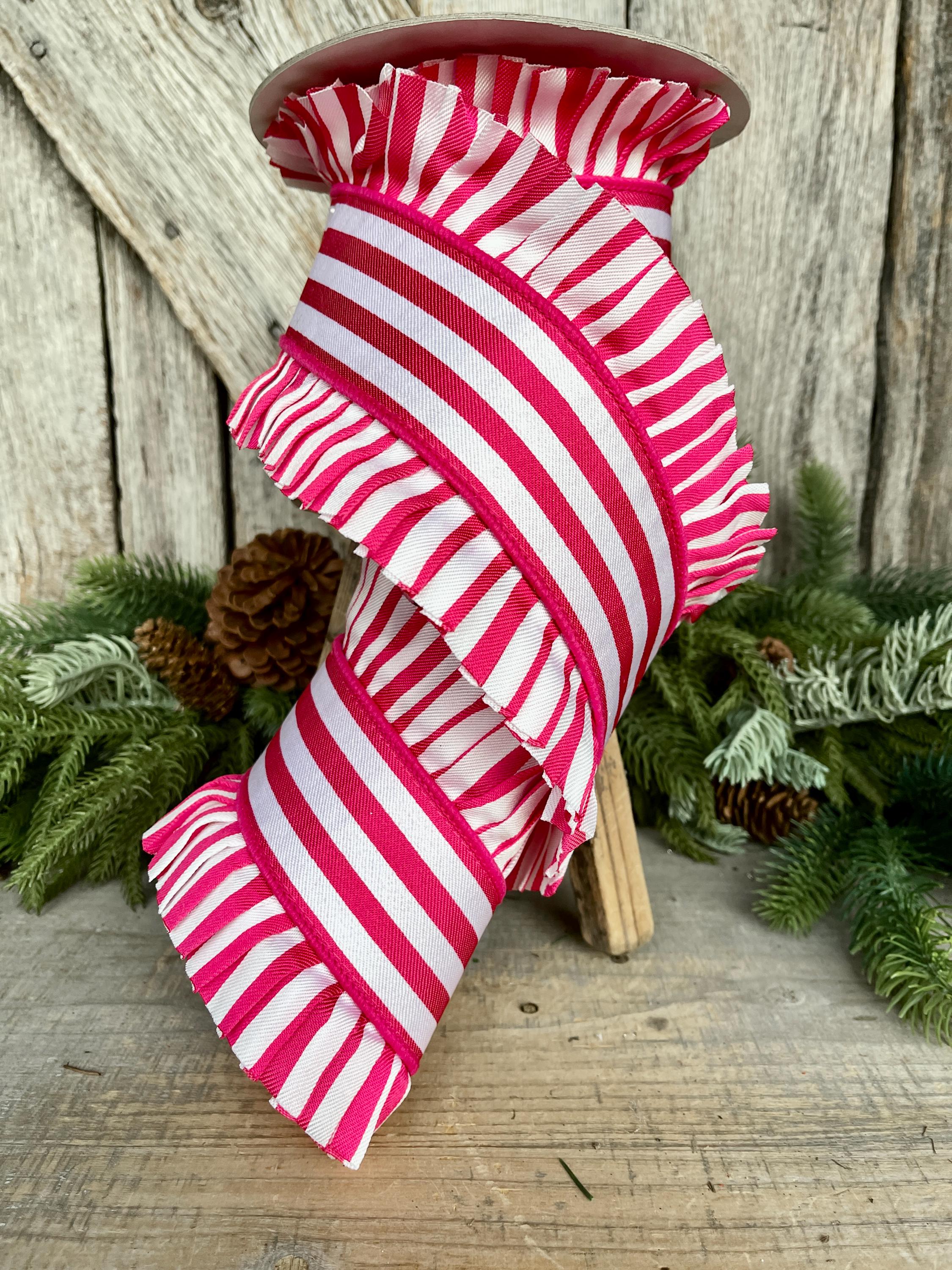 4.5" Hot Pink Ruffle Ribbon, Farrisilk Ribbon, Pink Candy Wrap Ruffle, Pink Stripe Ribbon, Pink Christmas Ribbon, Ruffle Ribbon, RK865-15
