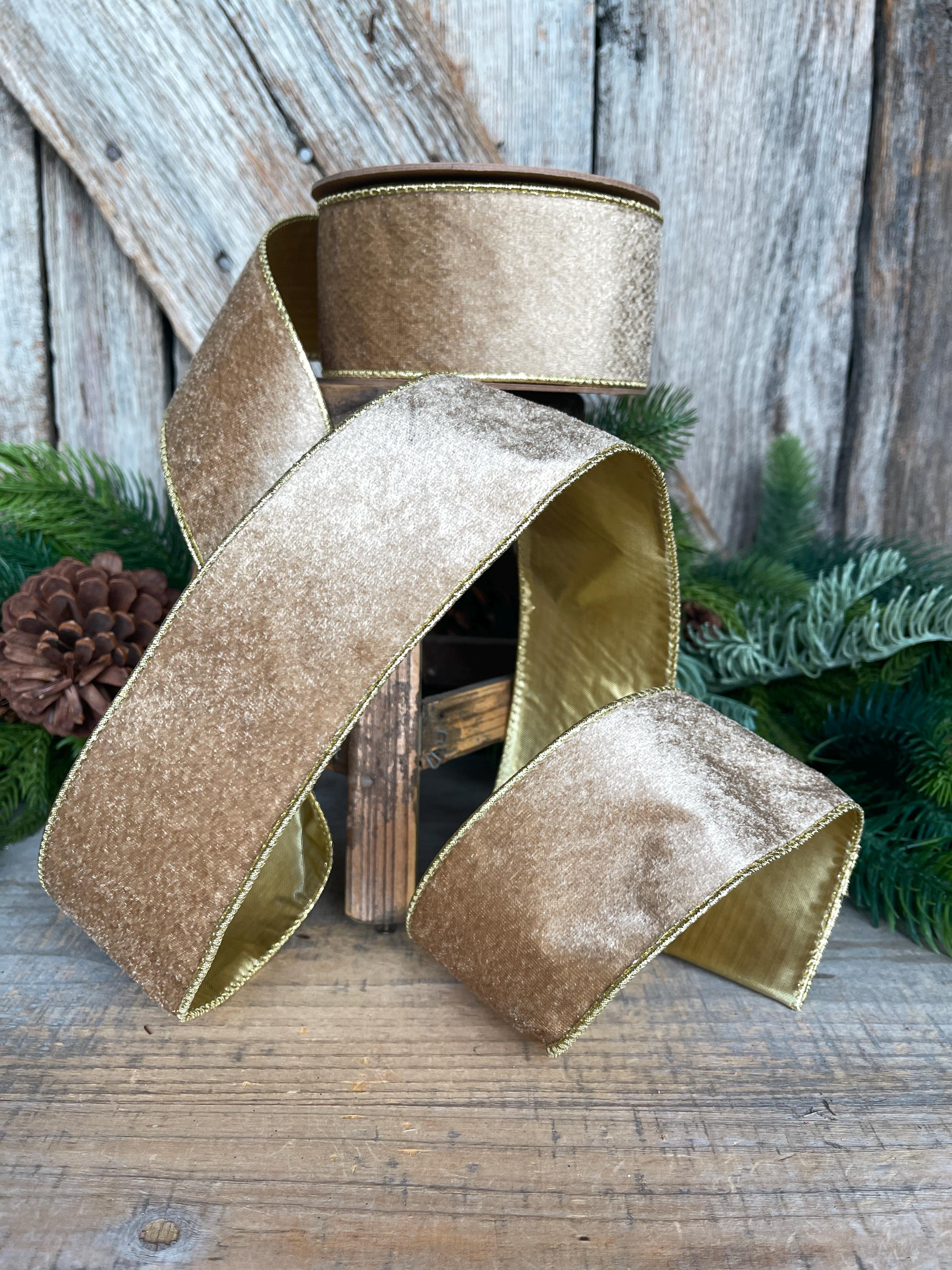 2.5" Gold Velveteen Ribbon, Christmas Ribbon, Gold Velvet