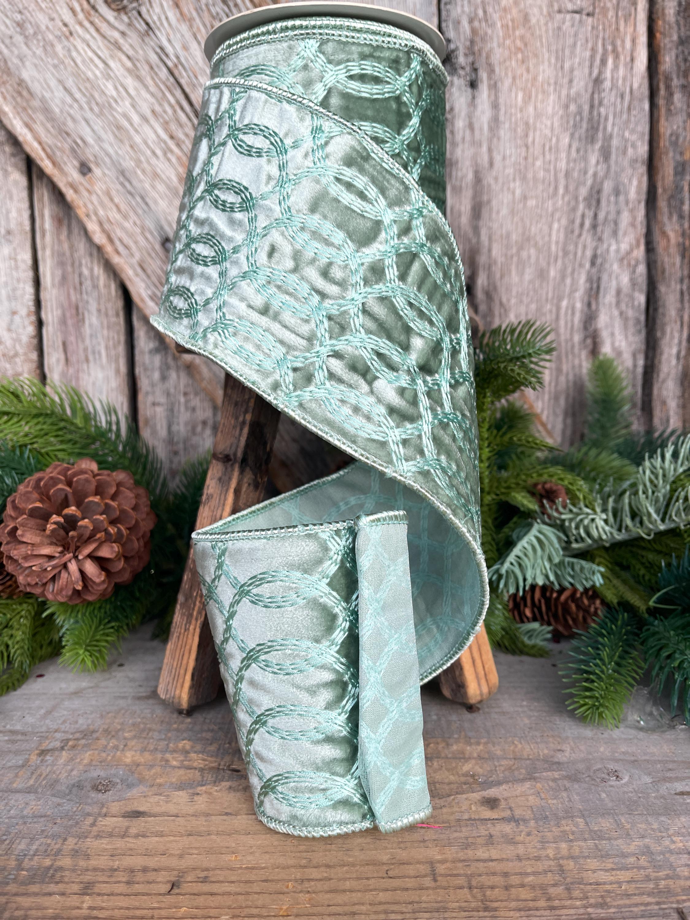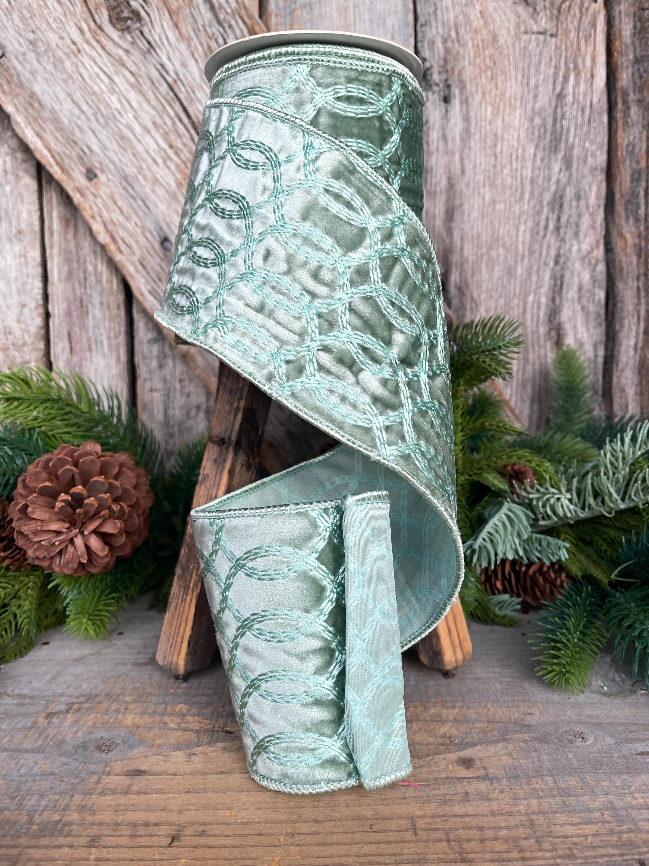 4" Aqua Celadon Velvet Ribbon, Celadon Velvet Ribbon, Christmas Ribbon