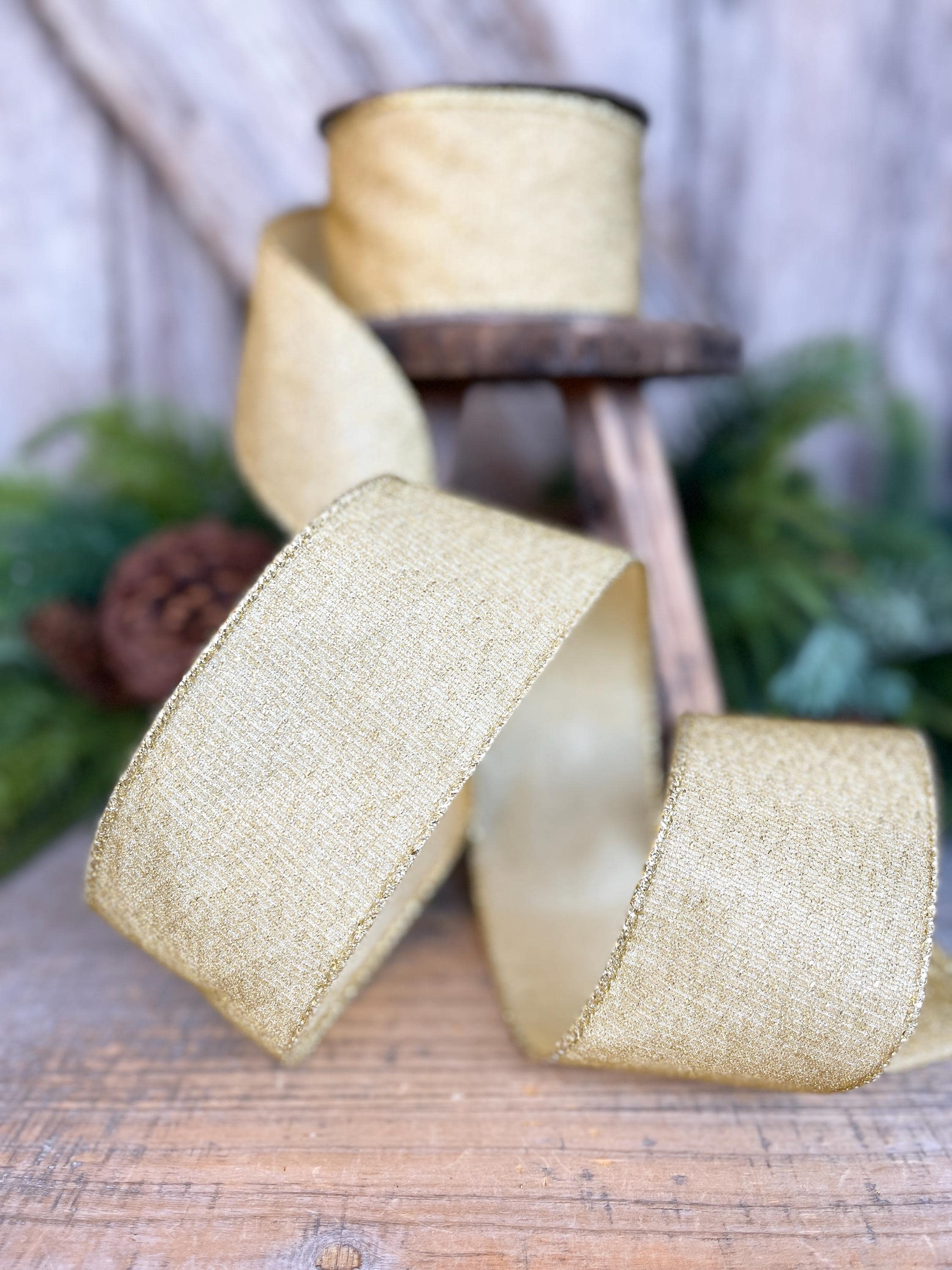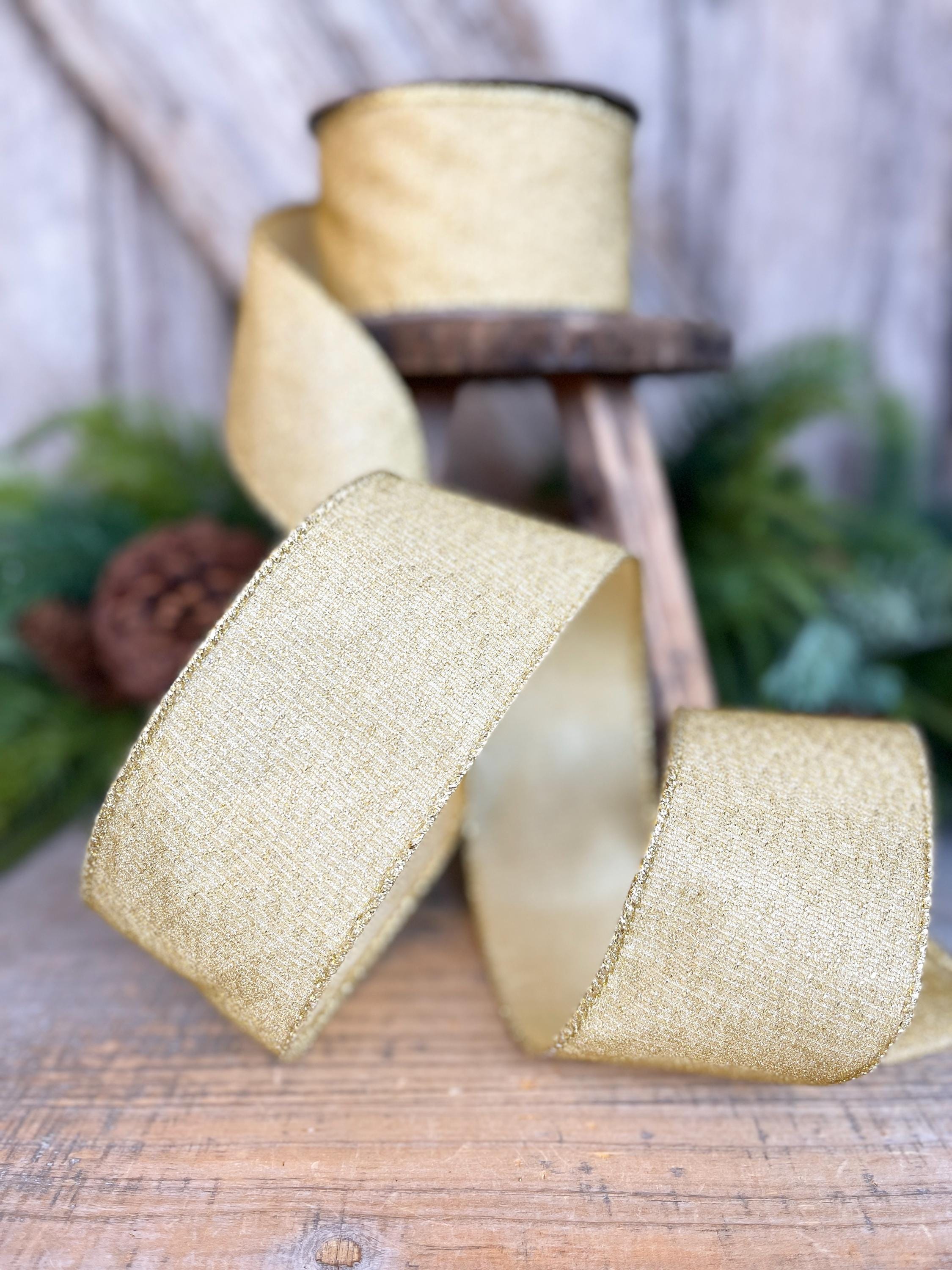 2.5" Gold Ribbon, Christmas Tree Ribbon, Gold Christmas Ribbon, Giftwrap ribbon