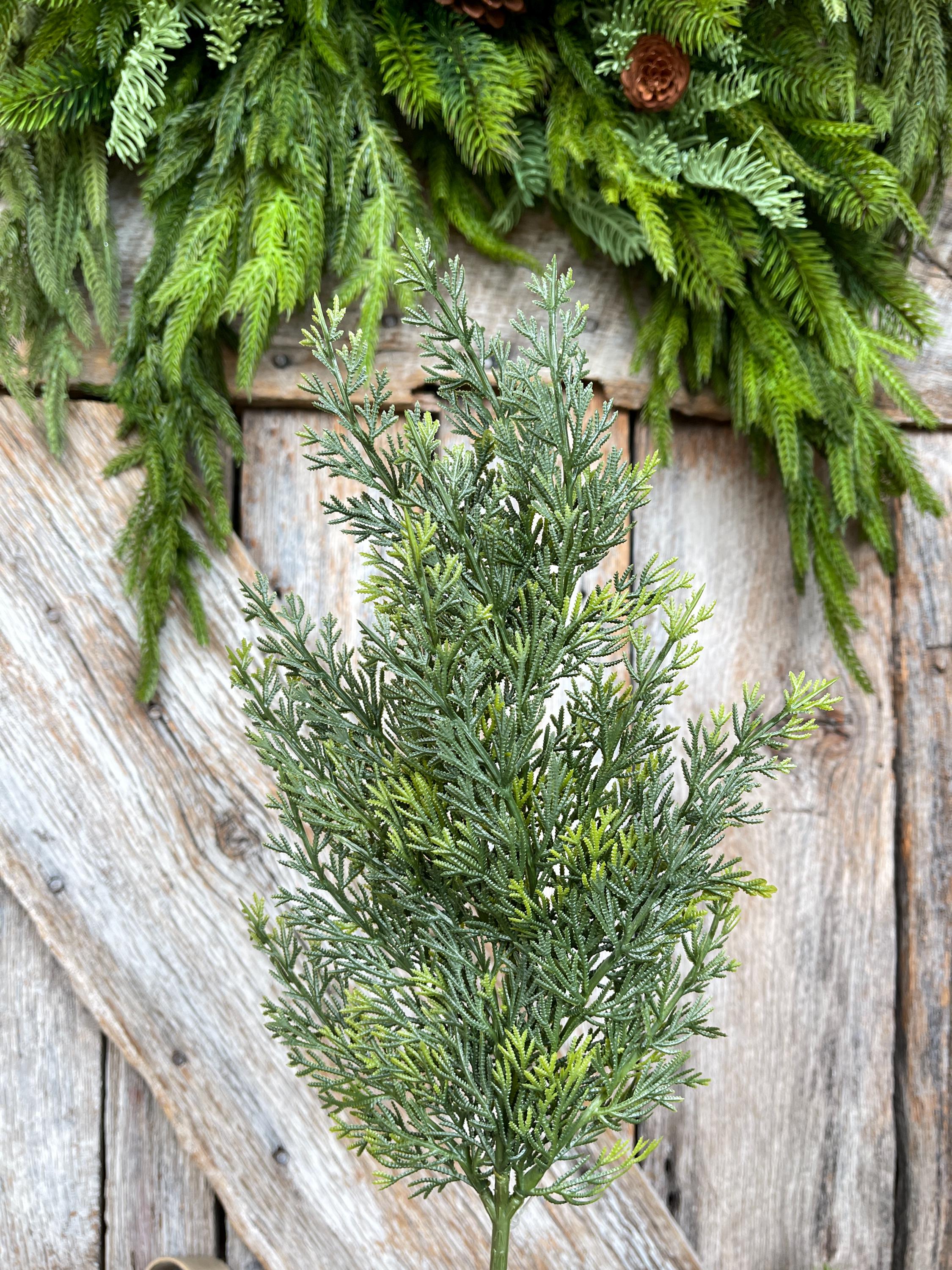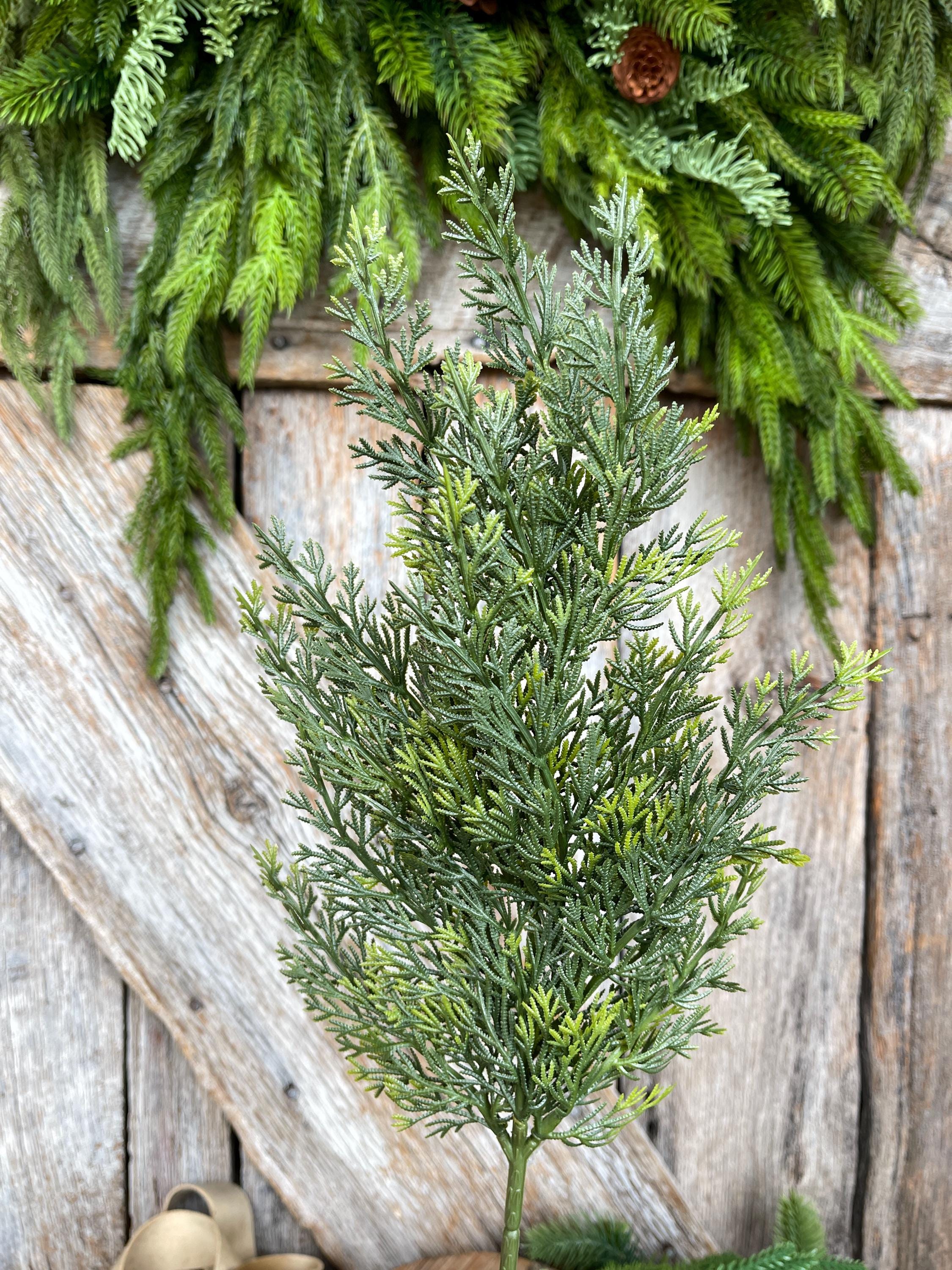 20" Cedar Pine Spray, Real Touch Cedar Pine, Artificial Pine Spray, Christmas Greenery