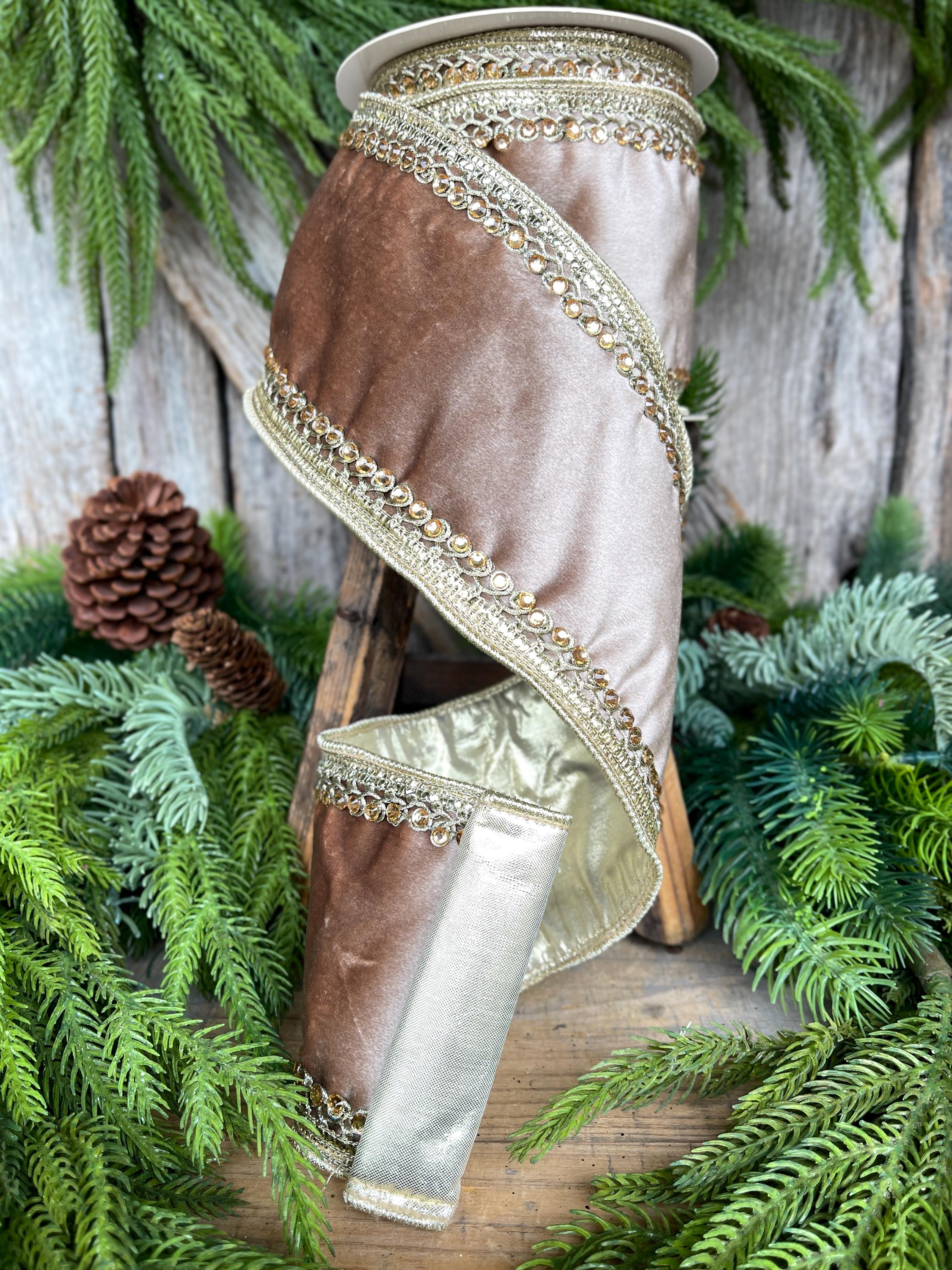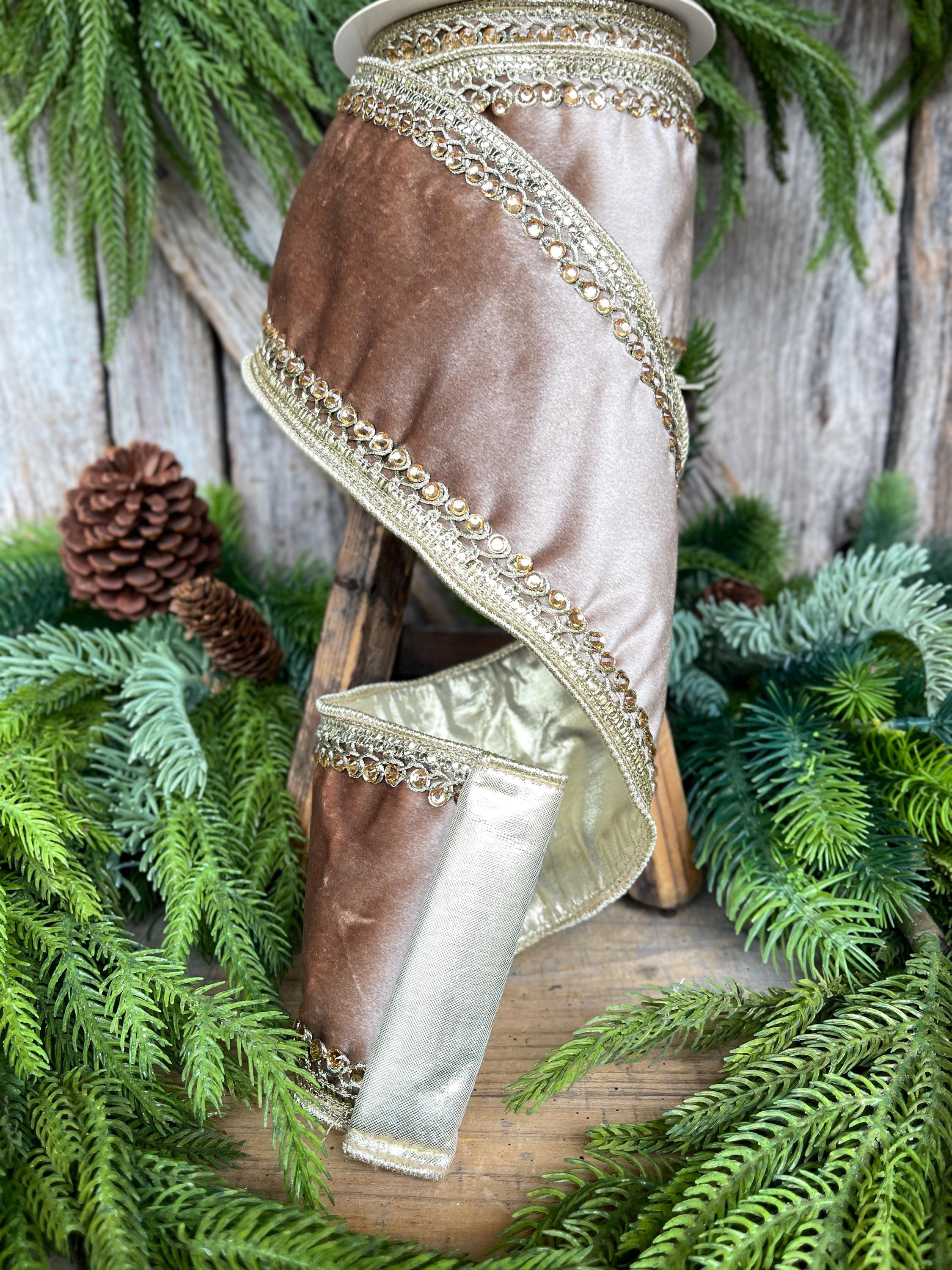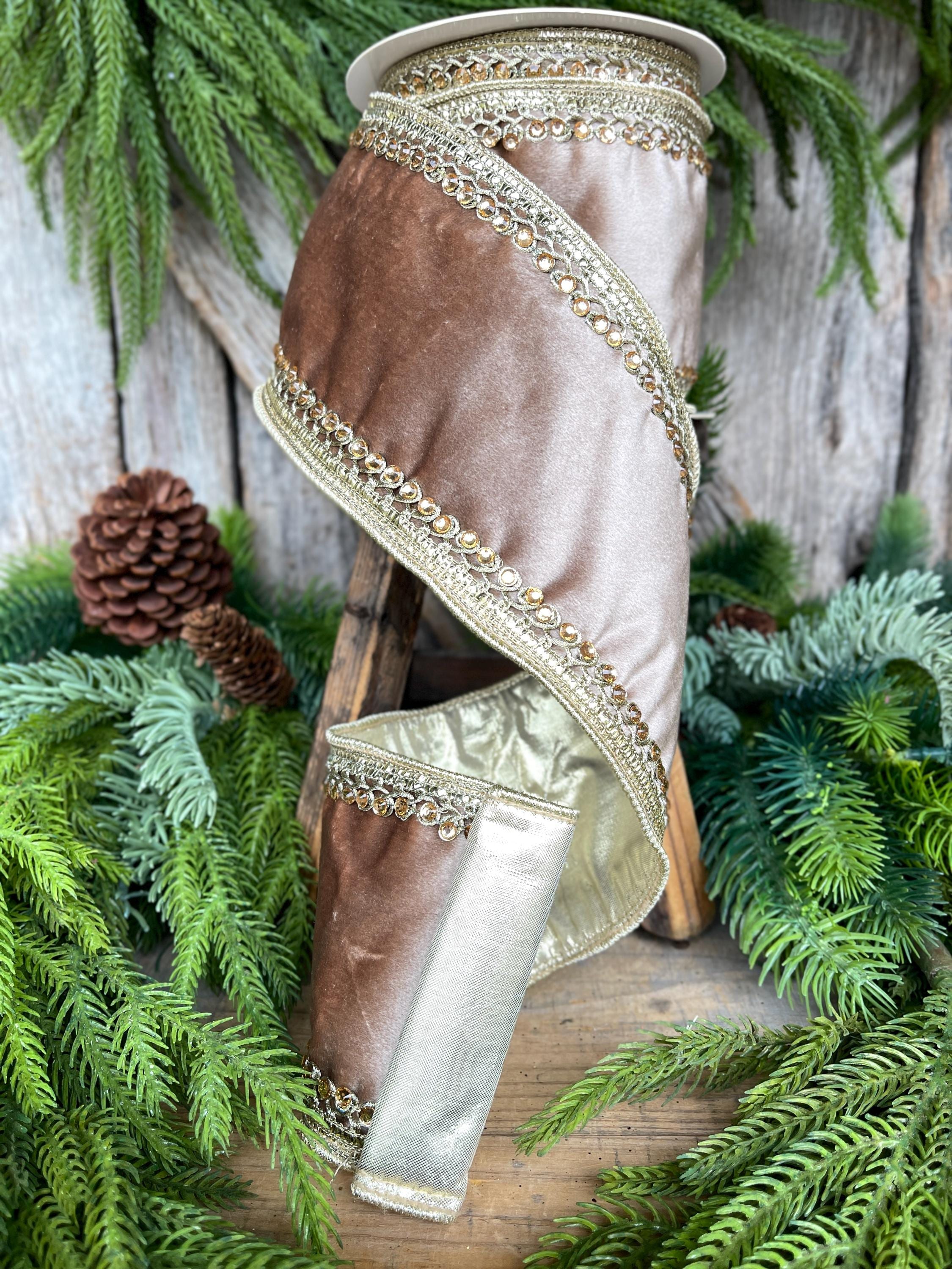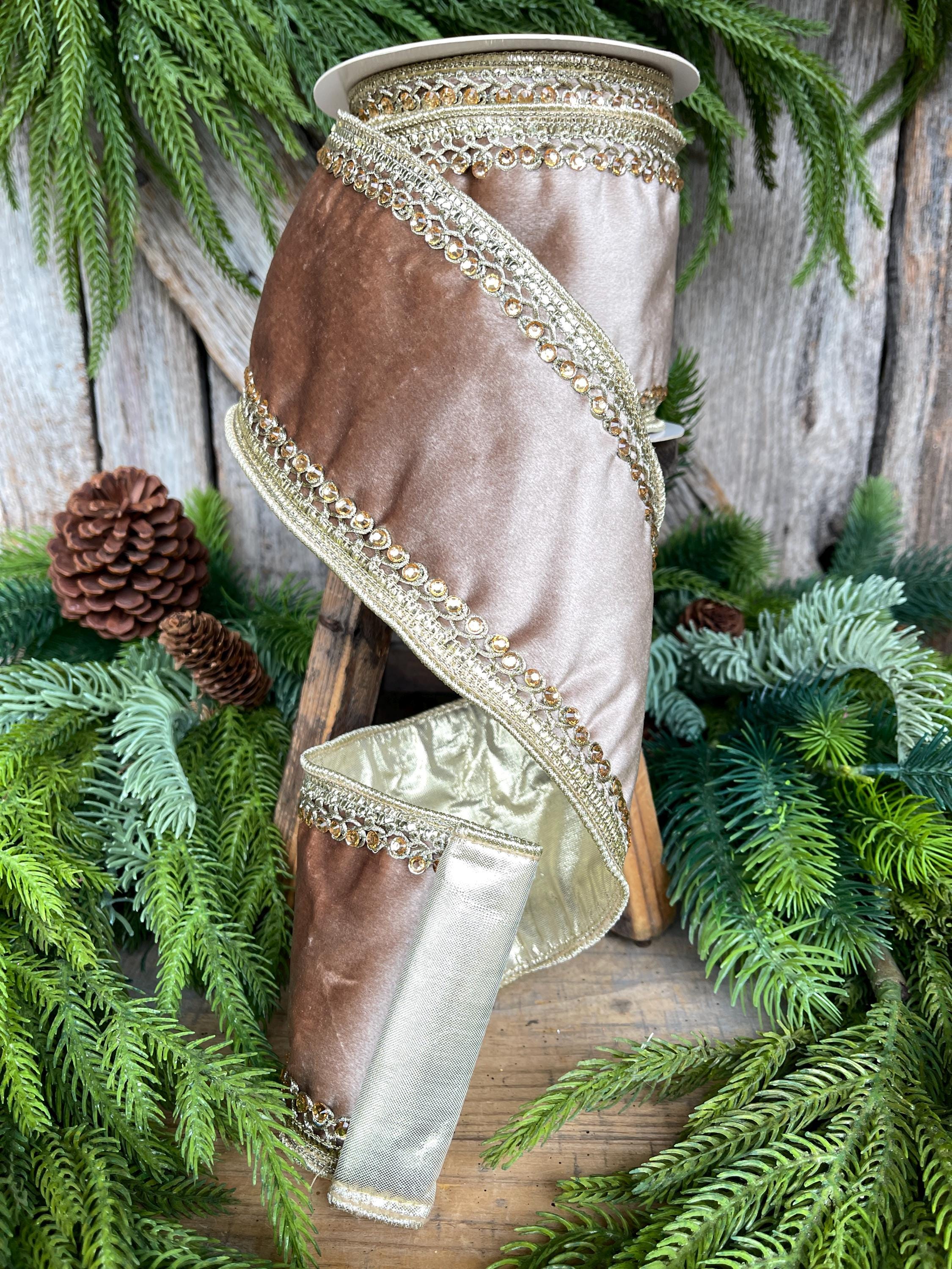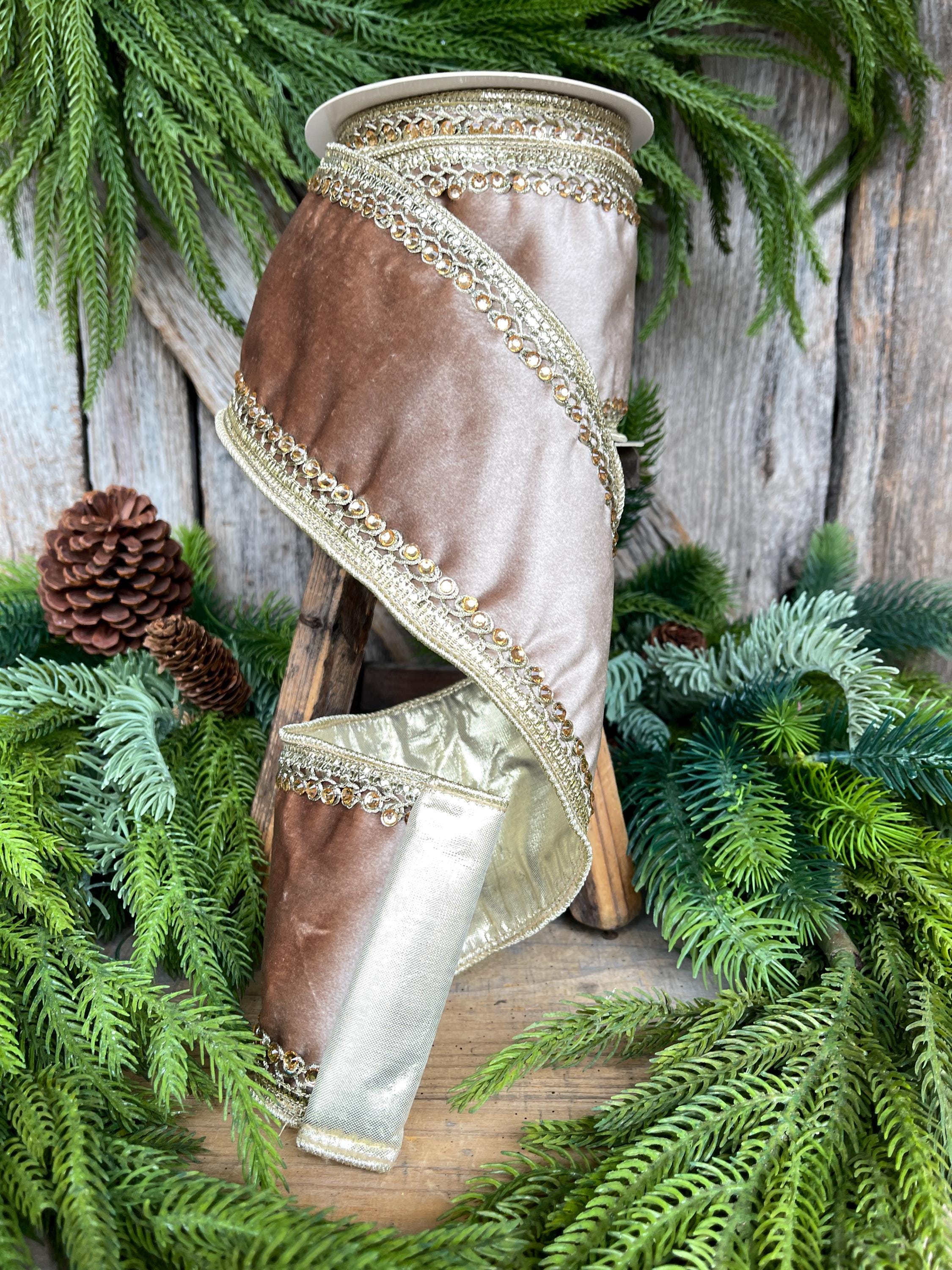 4" Champagne Jewel Velvet Ribbon, Christmas Ribbon, Champagne Gold Ribbon