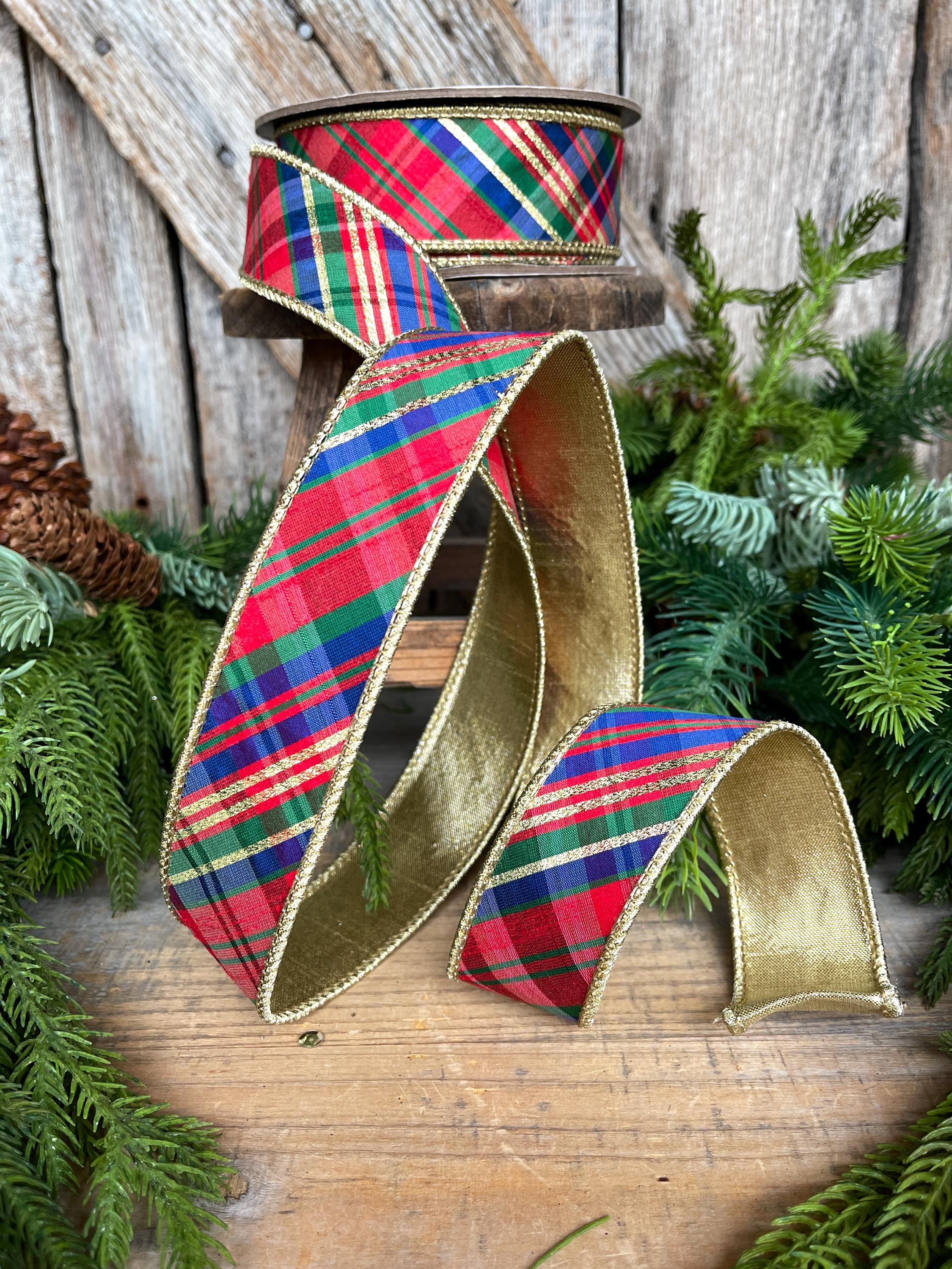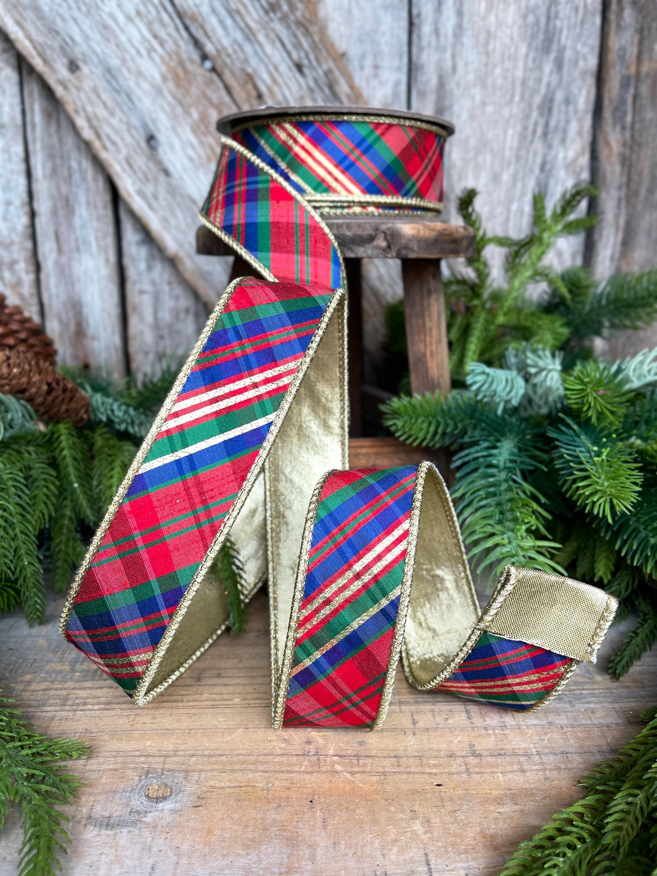 1.5" Christmas Plaid Ribbon, Red Blue Plaid Ribbon, Tartan Plaid Ribbon