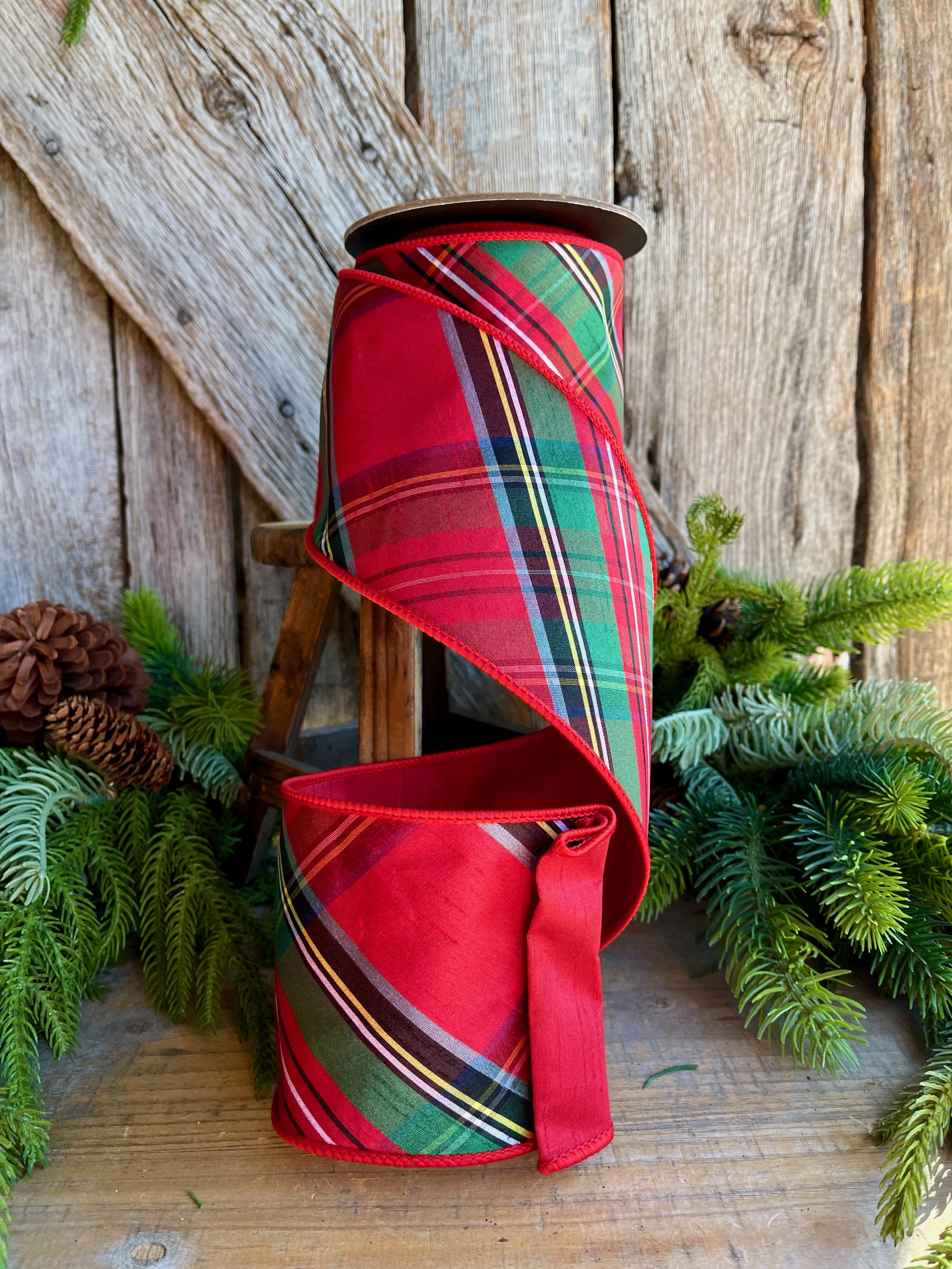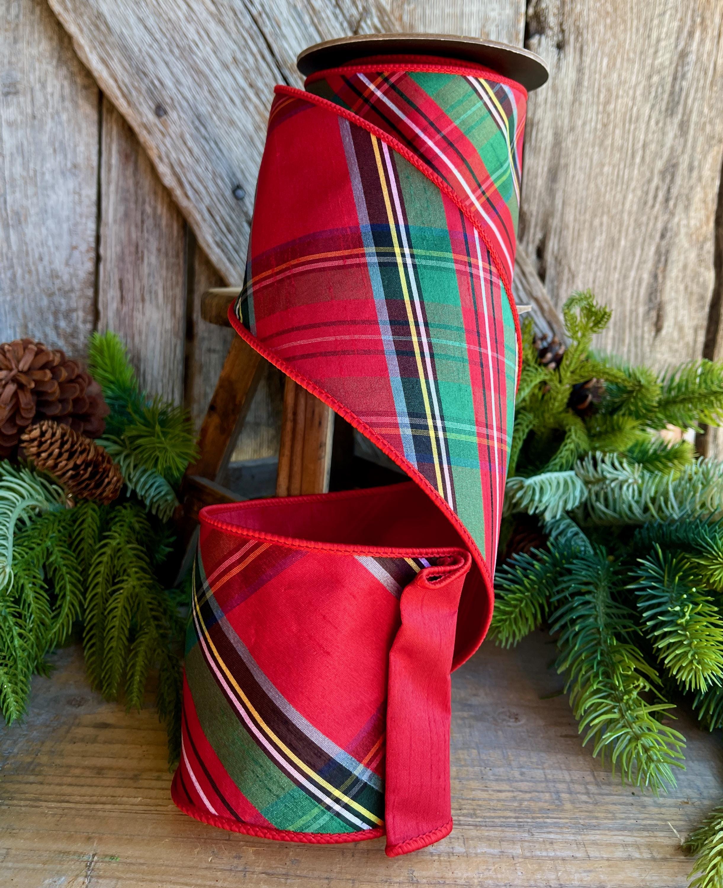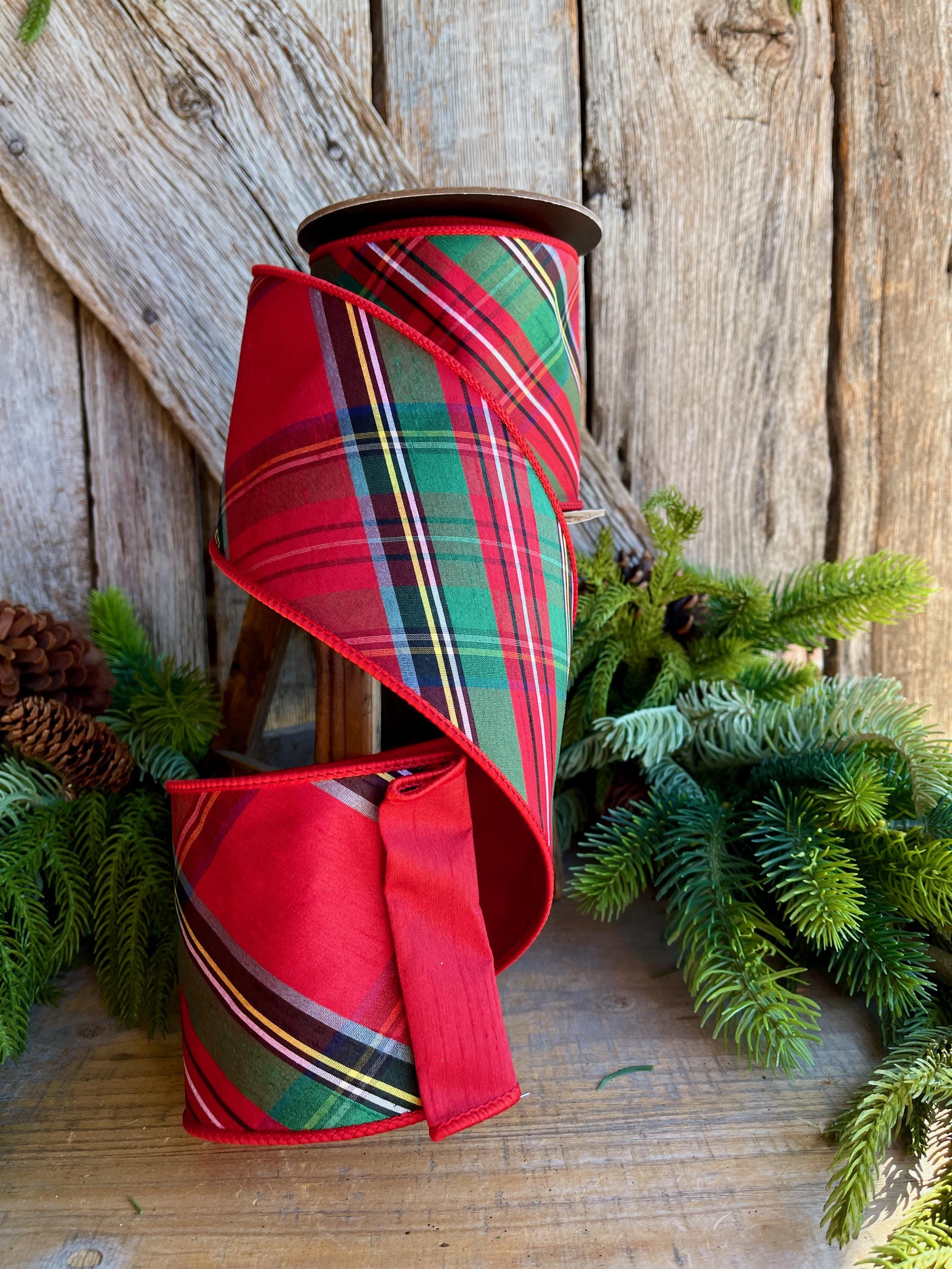 4" Traditional CHristmas Plaid, Wired Ribbon, Red Blue Chirstmas Plaid RIbbon, RIbbon for Treee, Christmas Plaid