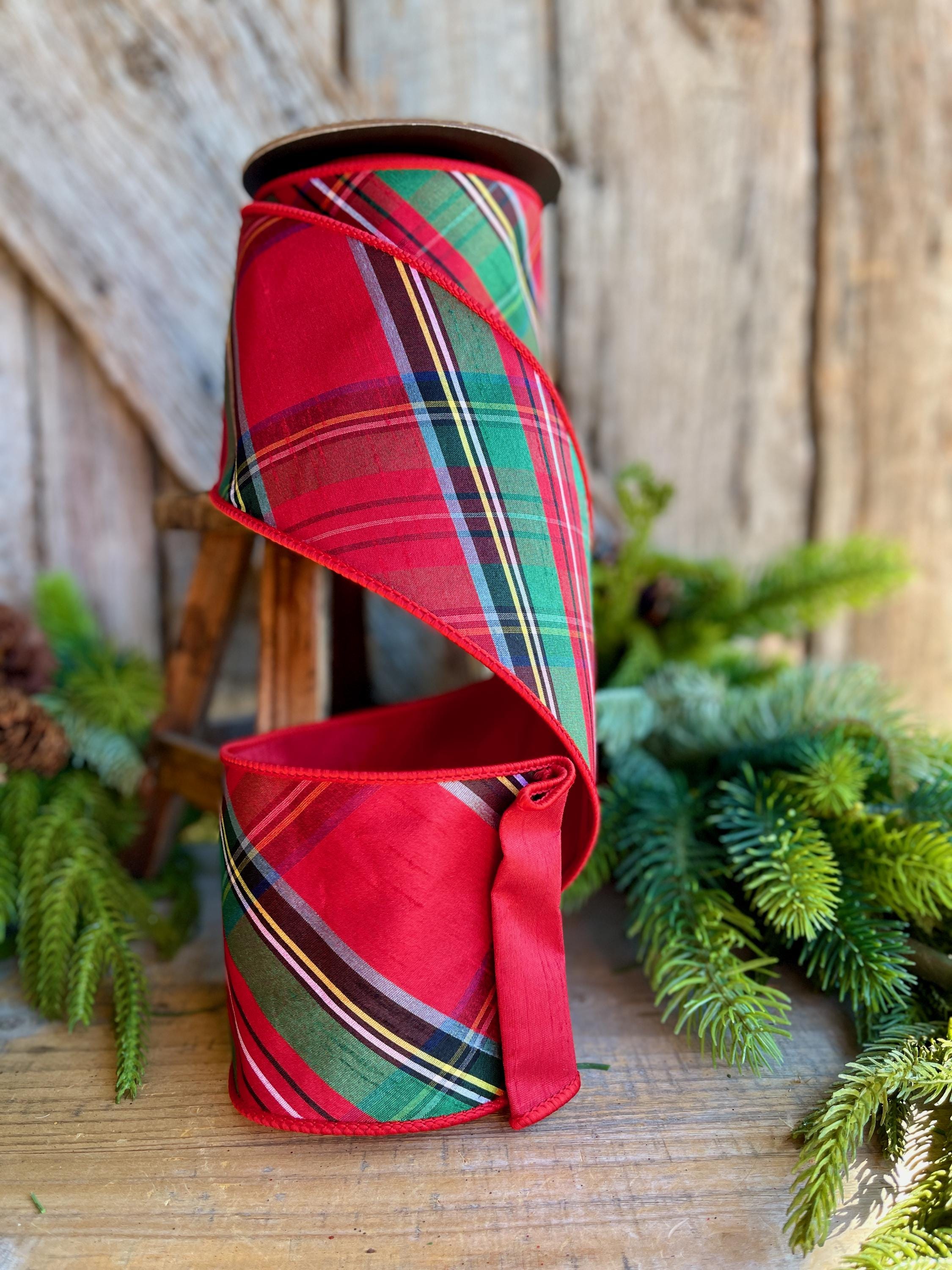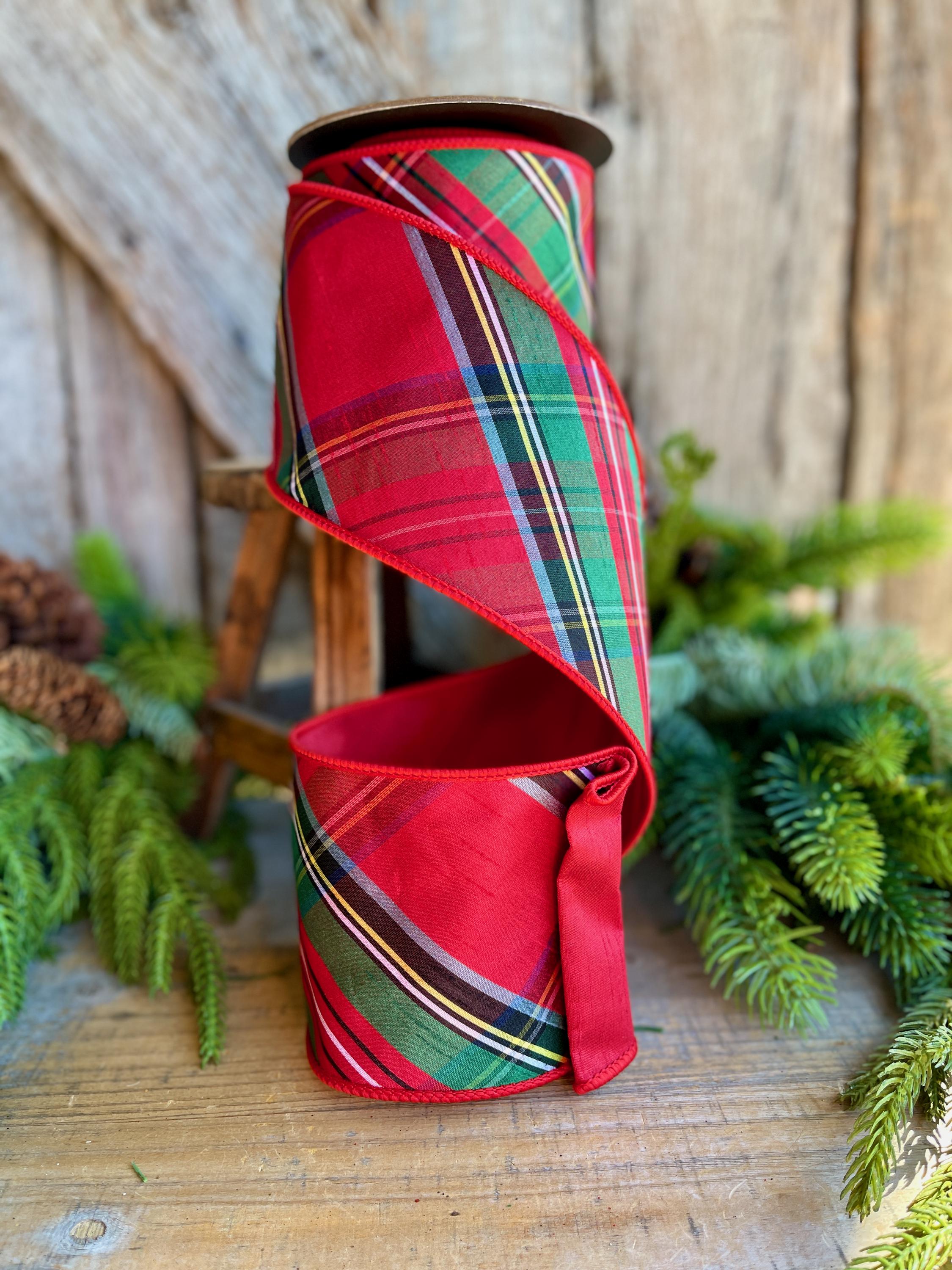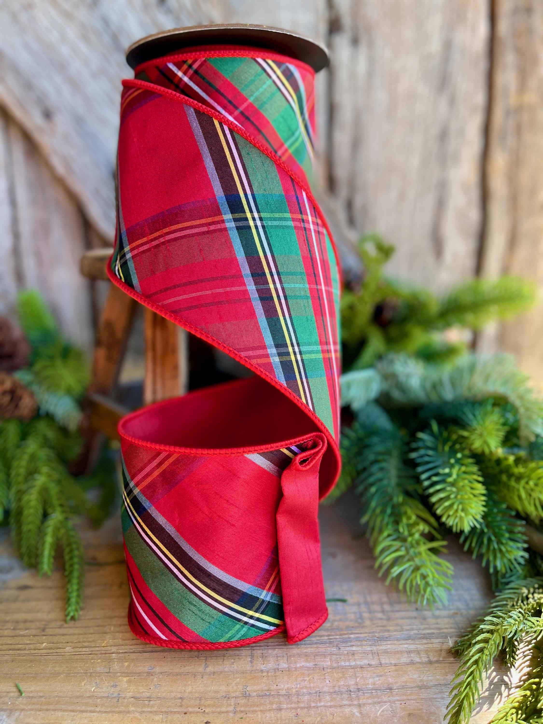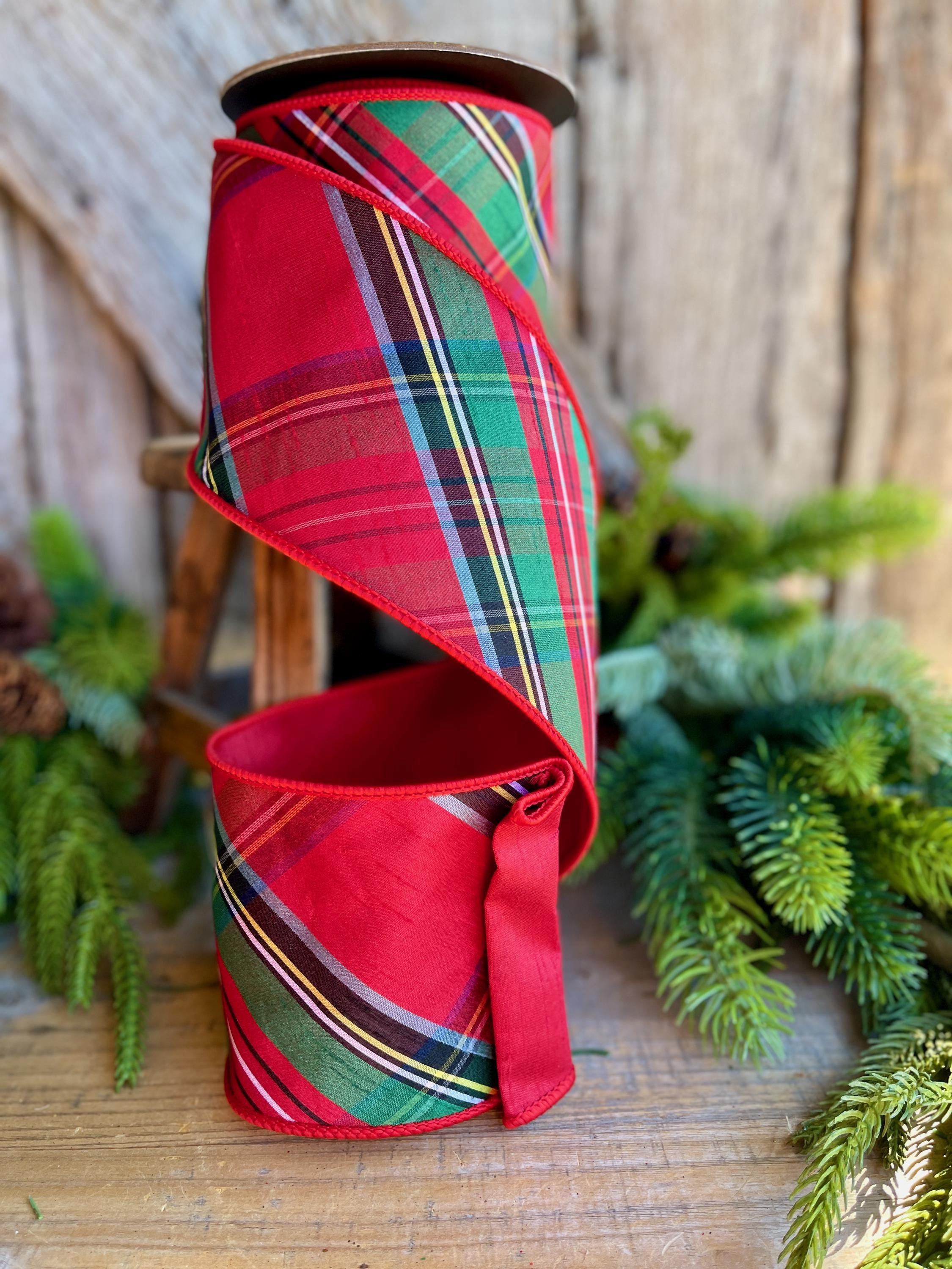 4" Traditional CHristmas Plaid, Wired Ribbon, Red Blue Chirstmas Plaid RIbbon, RIbbon for Treee, Christmas Plaid