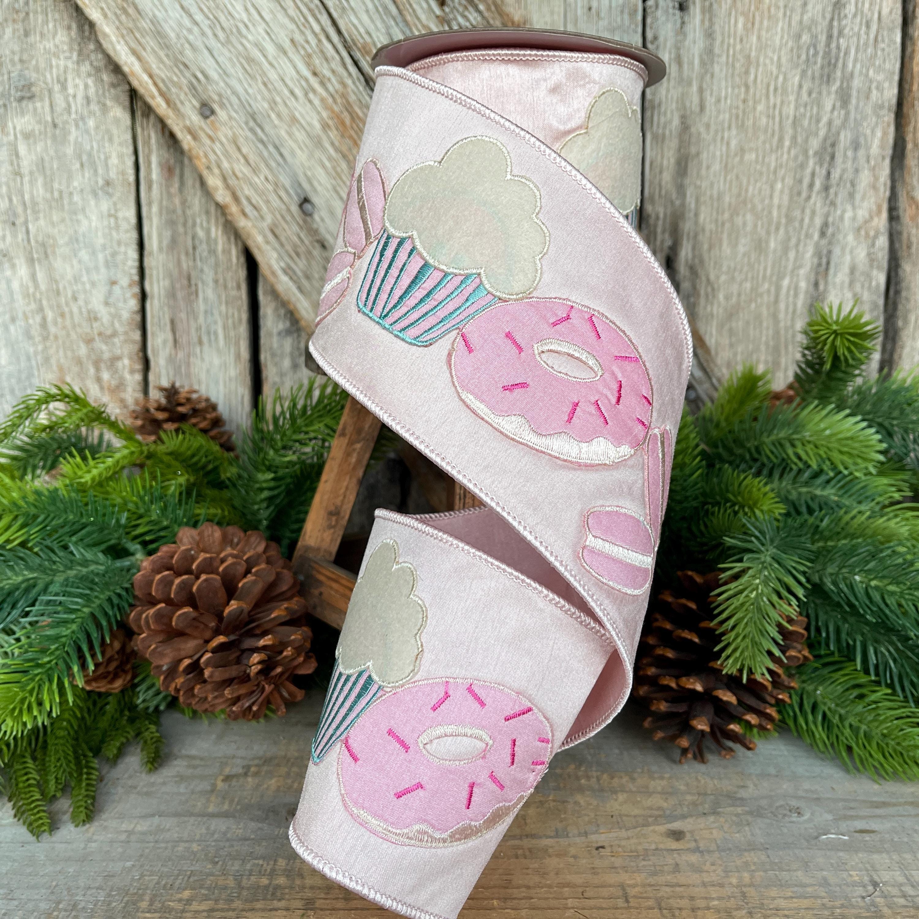 4" Cupcake Donut Ribbon, Farrisilk Ribbon, Sweet Treat Theme Ribbon, Christmas Ribbon, PASTEL PATISSERIE Ribbon