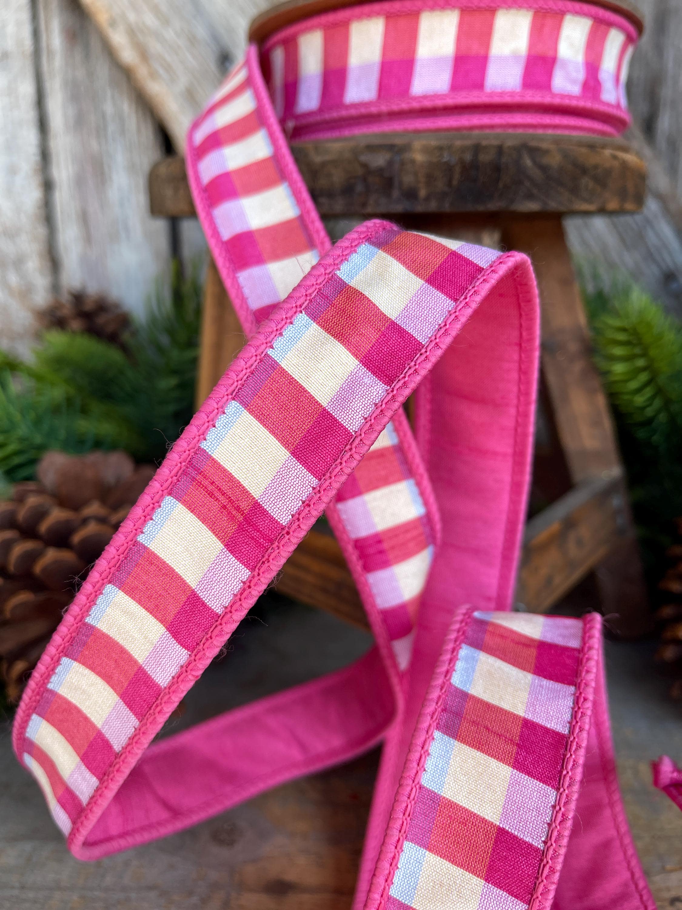 1" Pink Plaid Ribbon, Christmas Ribbon, Pink Ribbon