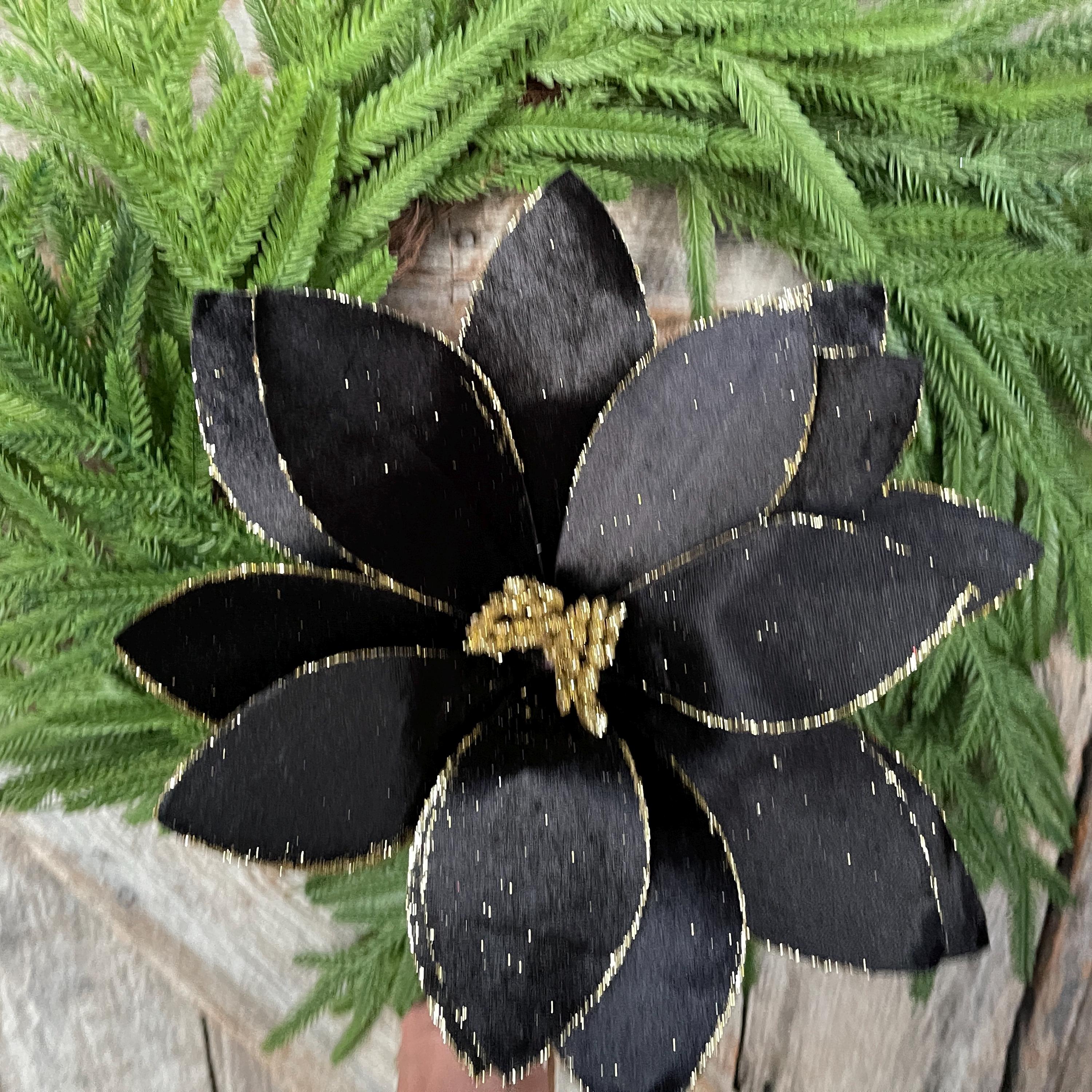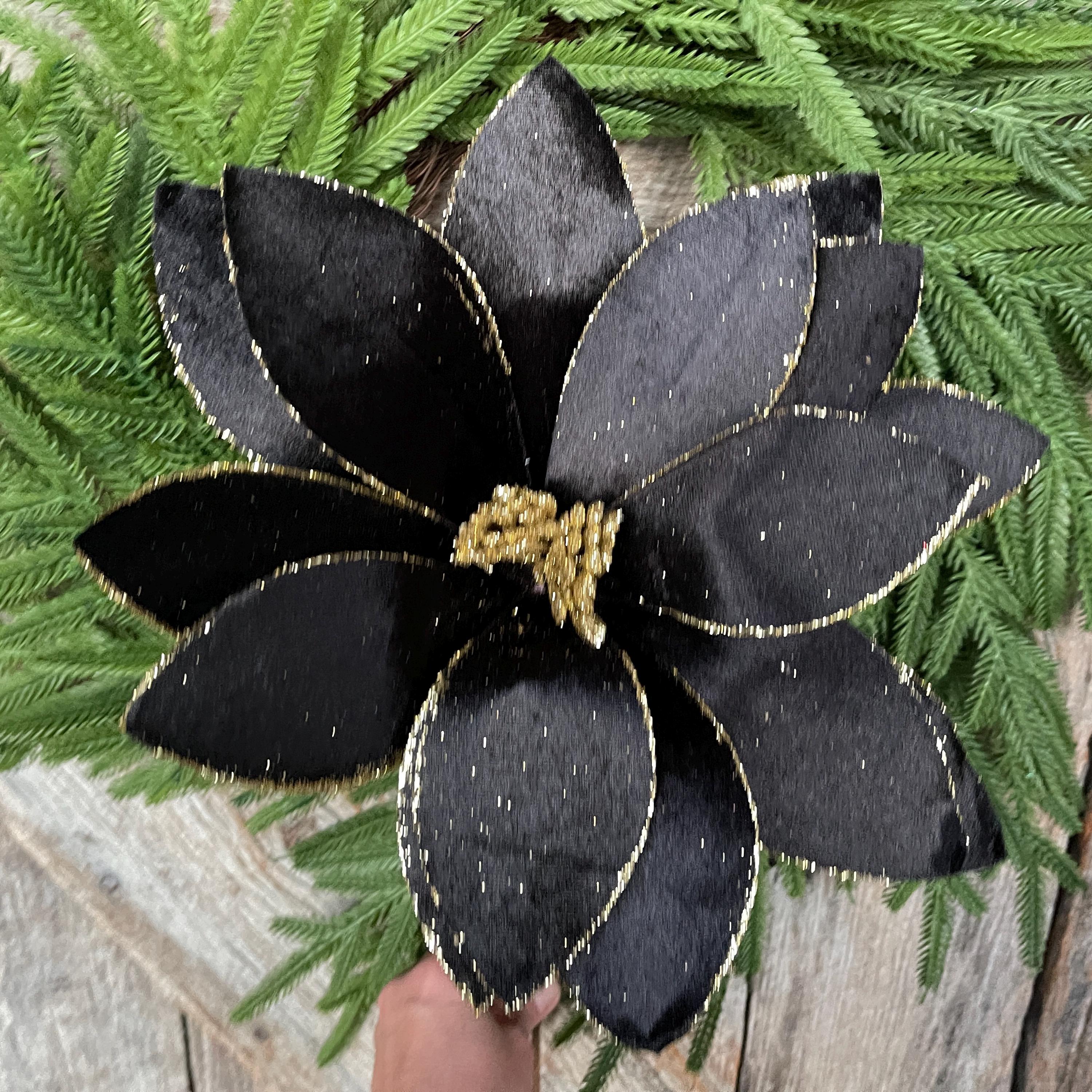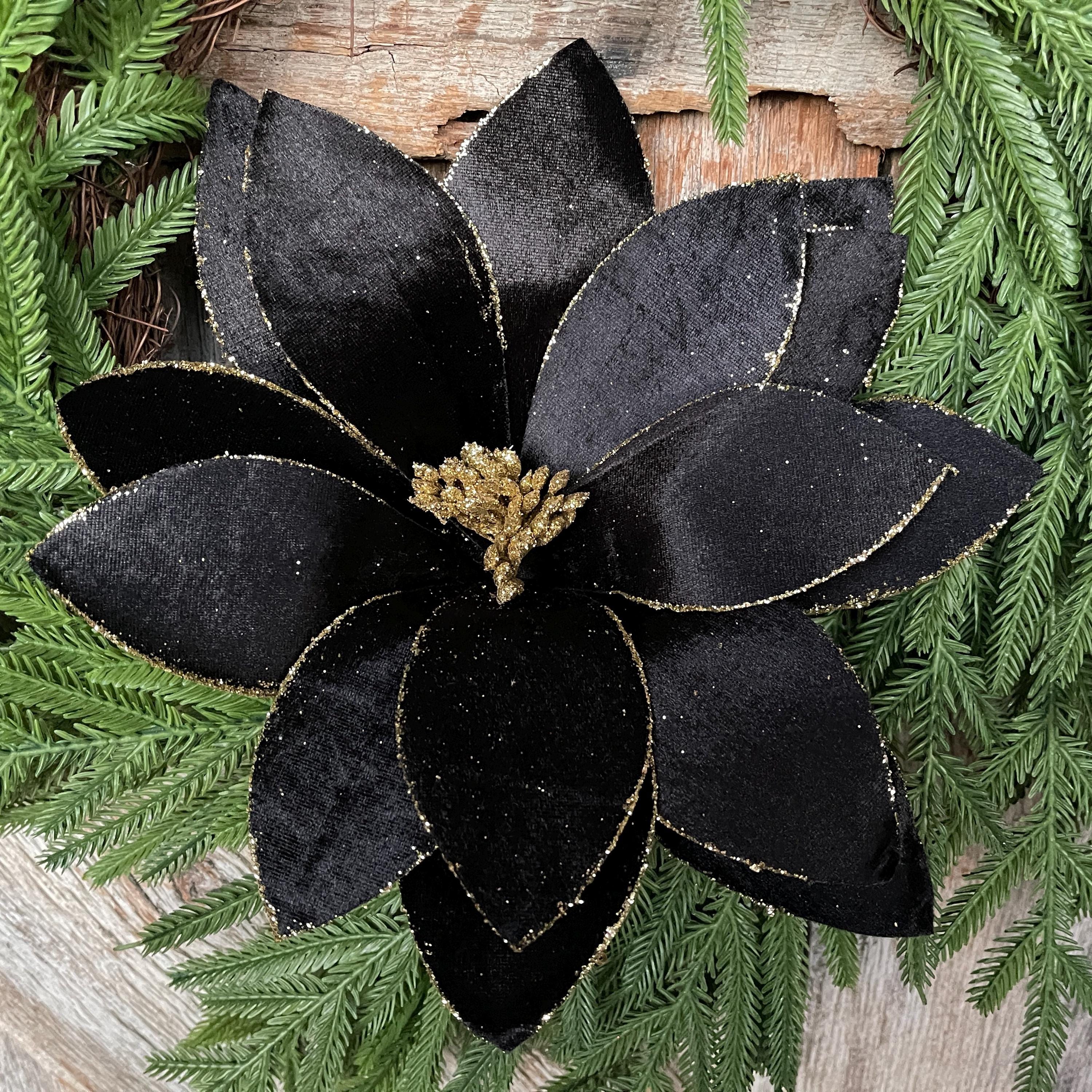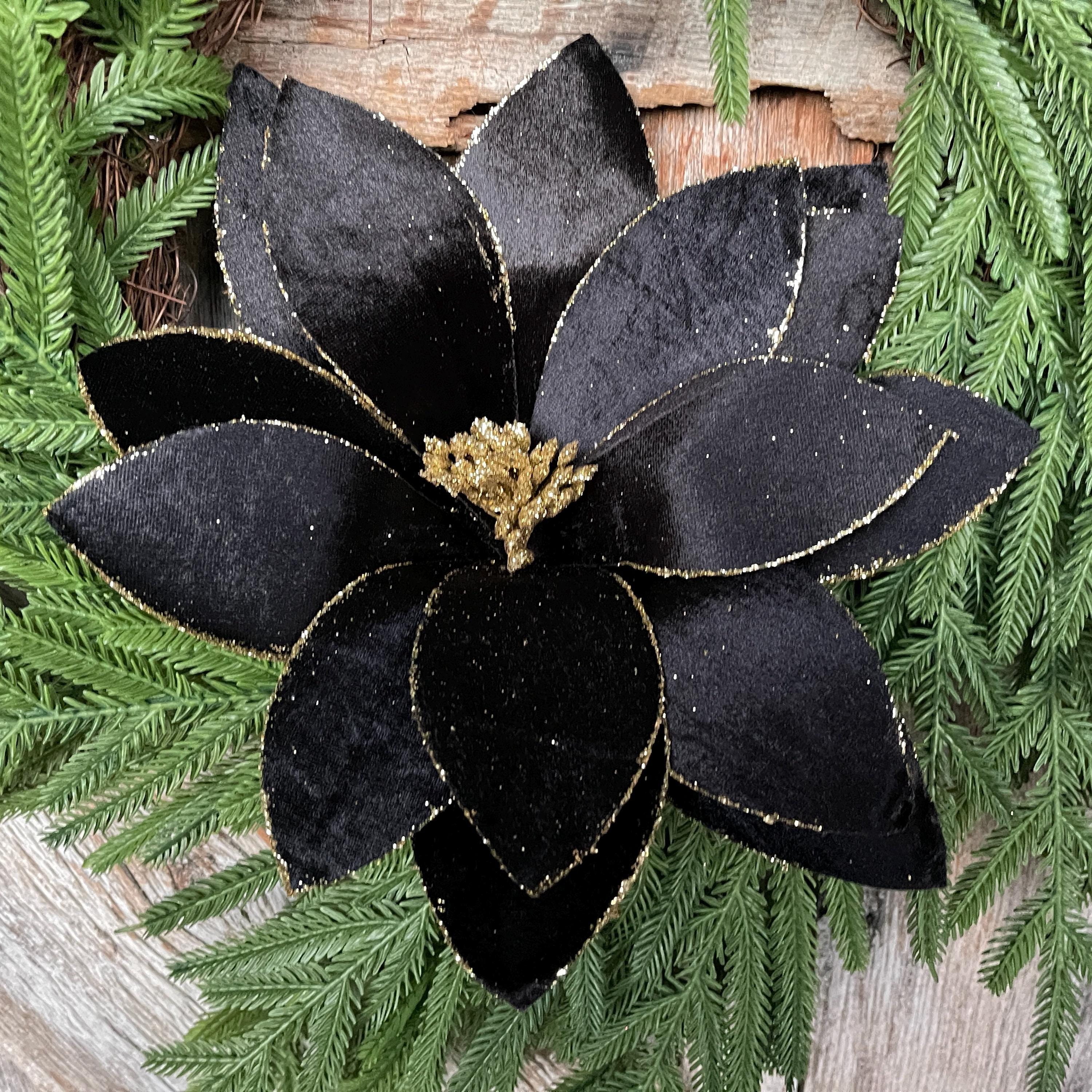 22" Black Velvet Poinsettia Stem, Christmas Floral Stem, Black Florals