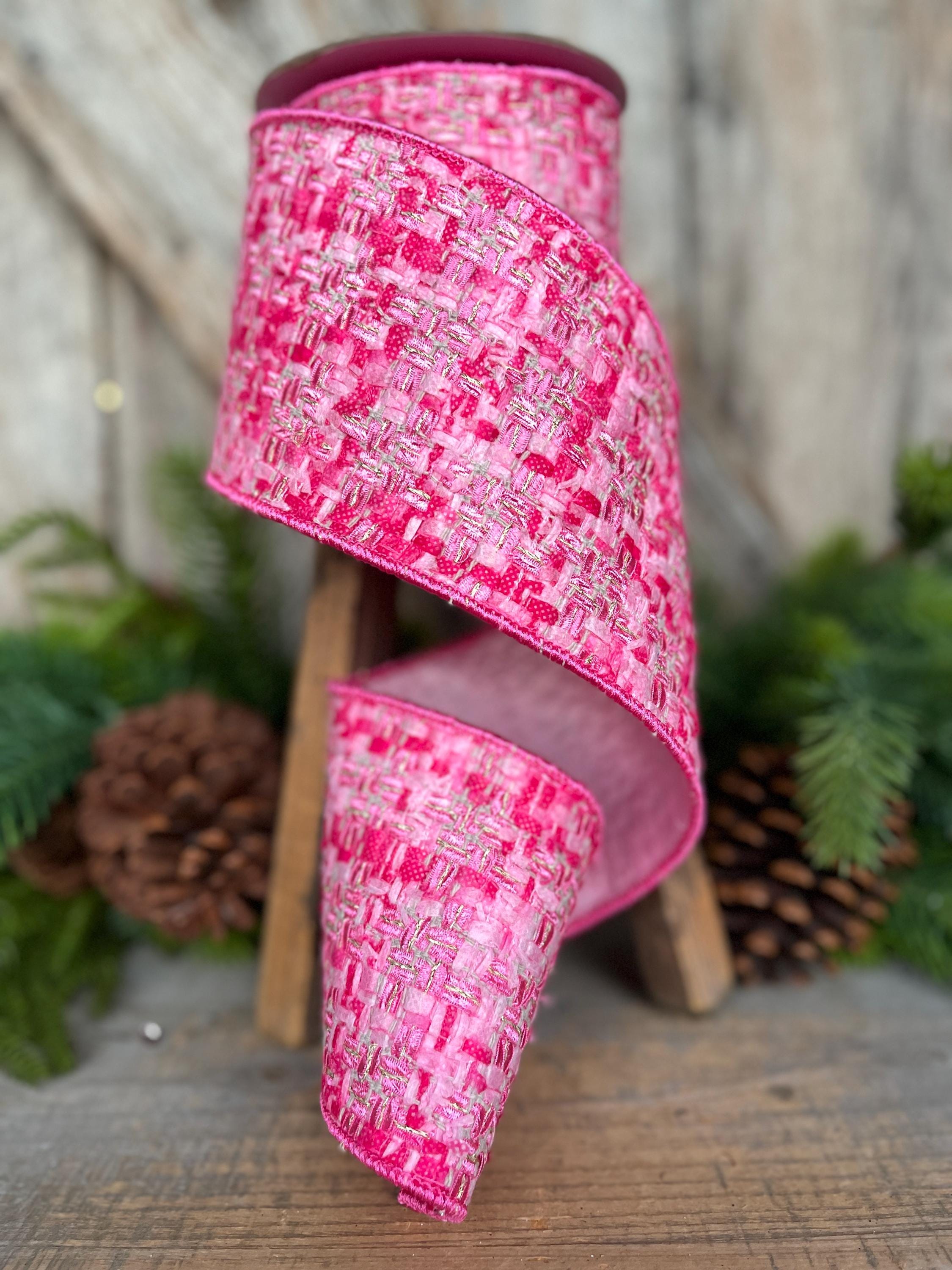 4" Hot Pink Tweed Ribbon, Hot Pink Christmas Ribbon