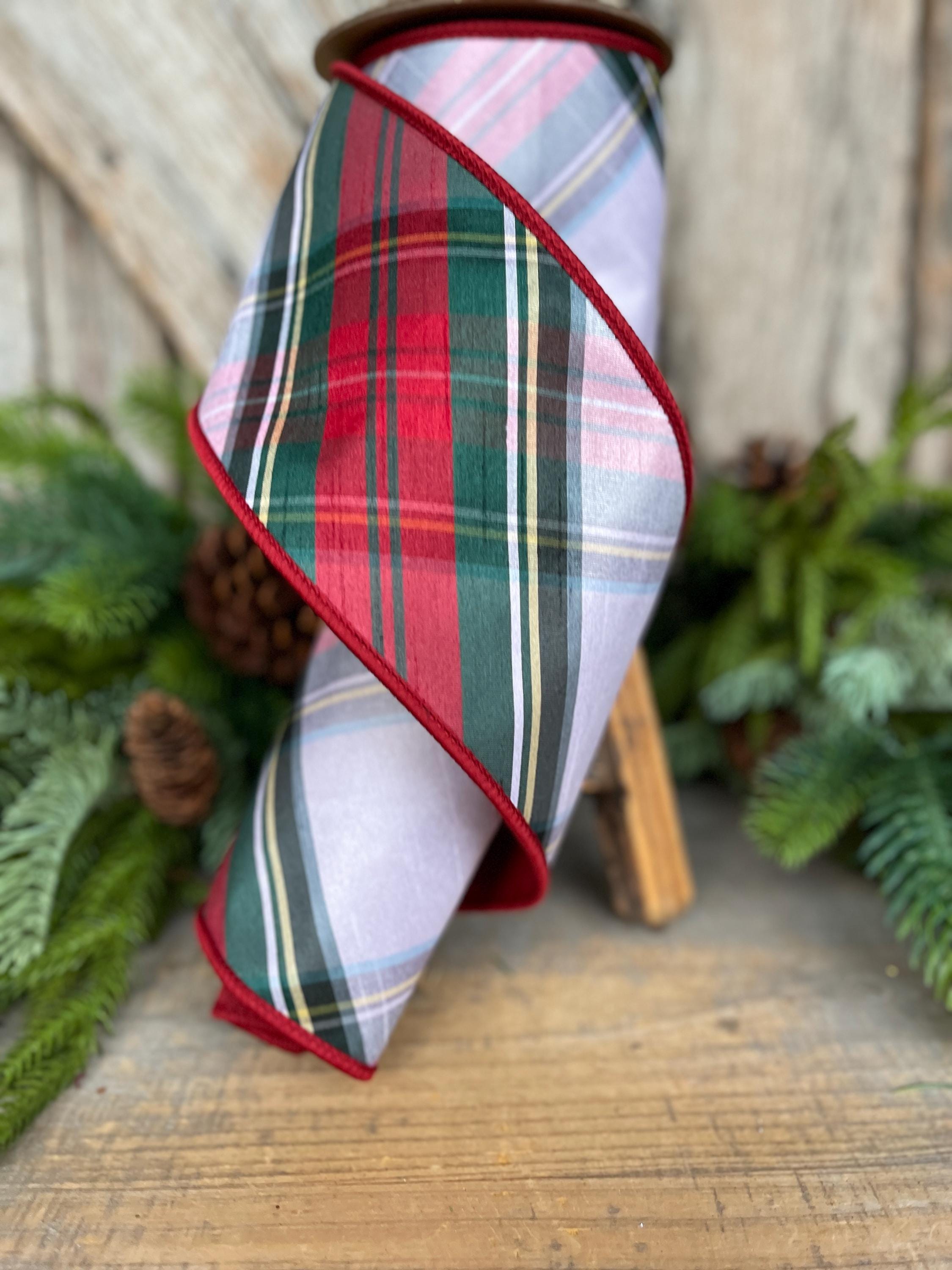 4" Traditional CHristmas Plaid, Wired Ribbon, Red Blue Chirstmas Plaid RIbbon, RIbbon for Treee, Christmas Plaid