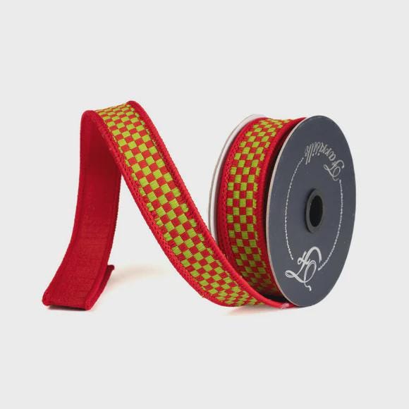 1" Red Lime Green Ribbon, Farrisilk Ribbon, Kitschy Checks Ribbon