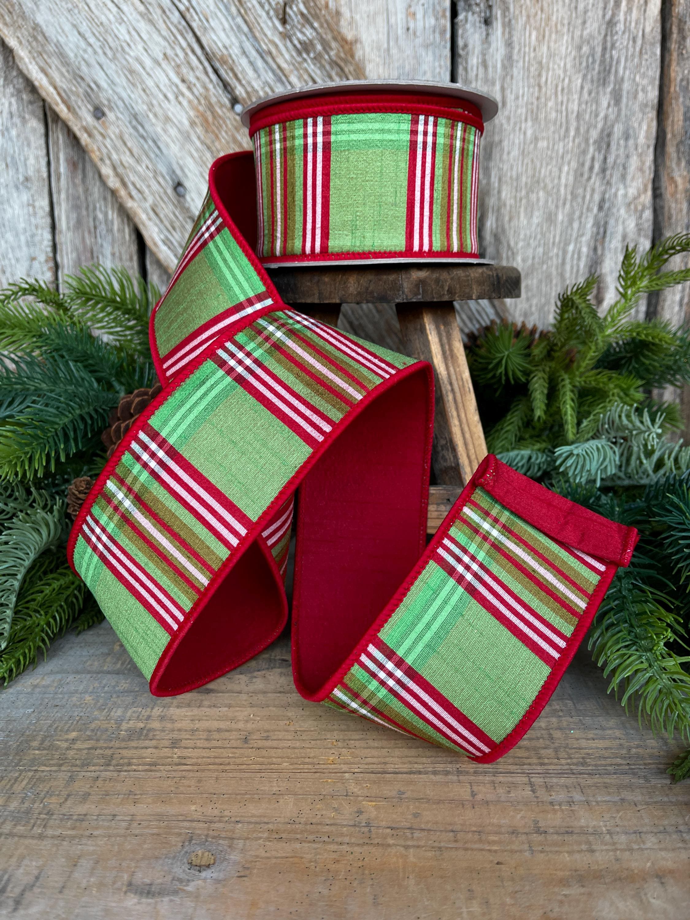 2.5" Red Green Plaid Ribbon, Christmas Tree Ribbon