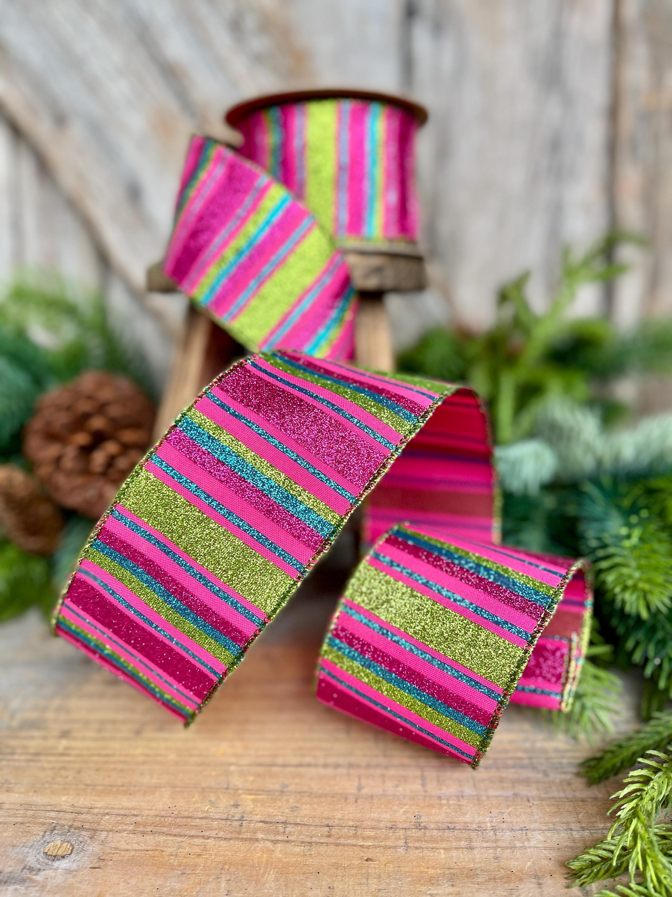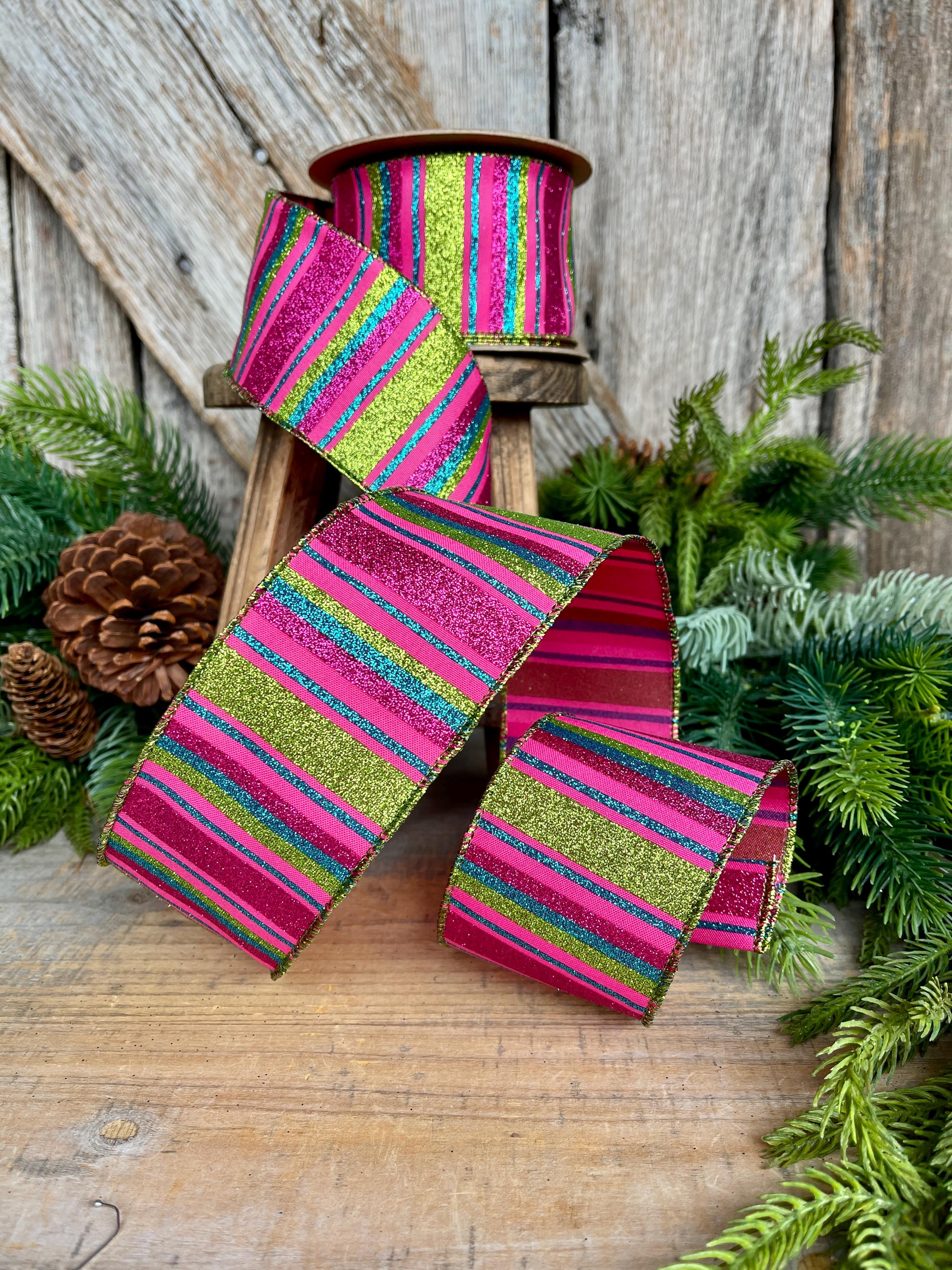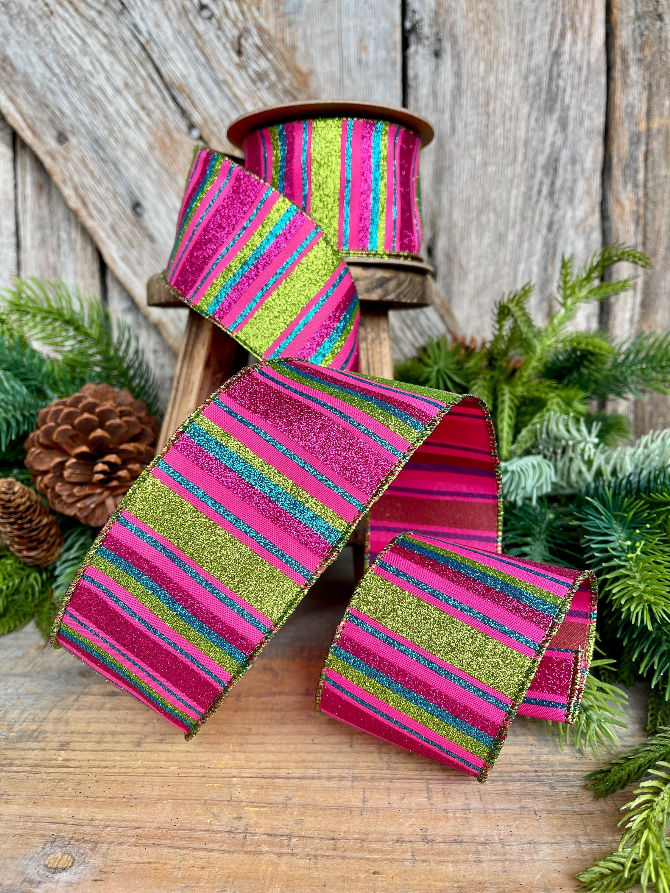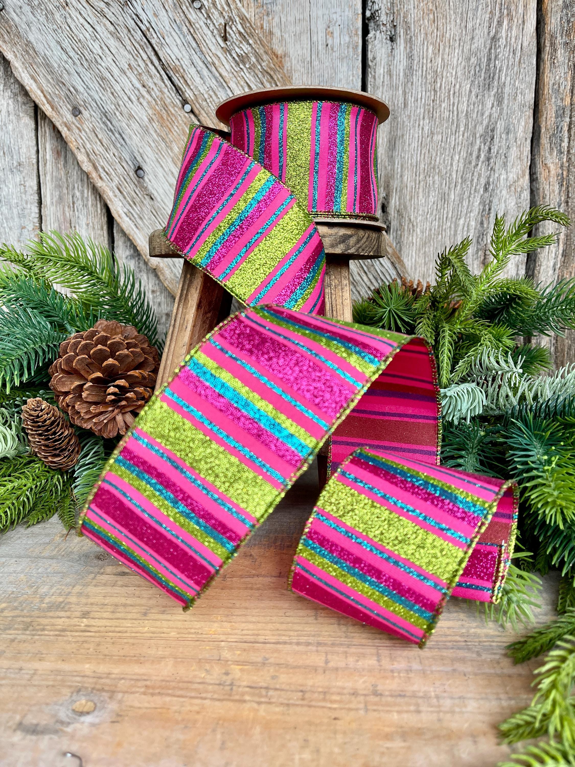 2.5" Hot Pink Lime Turquoise Ribbon, Christmas Ribbon