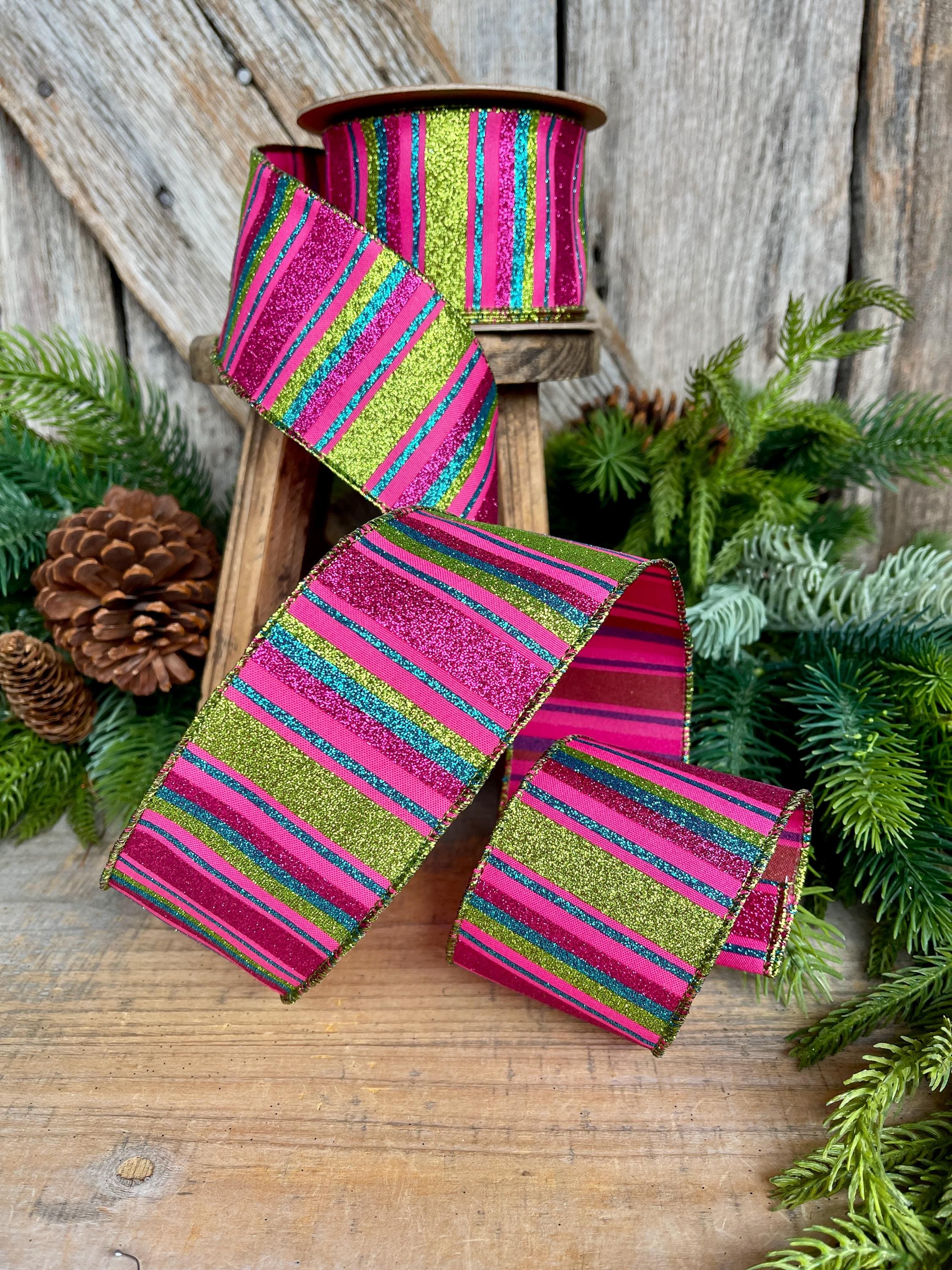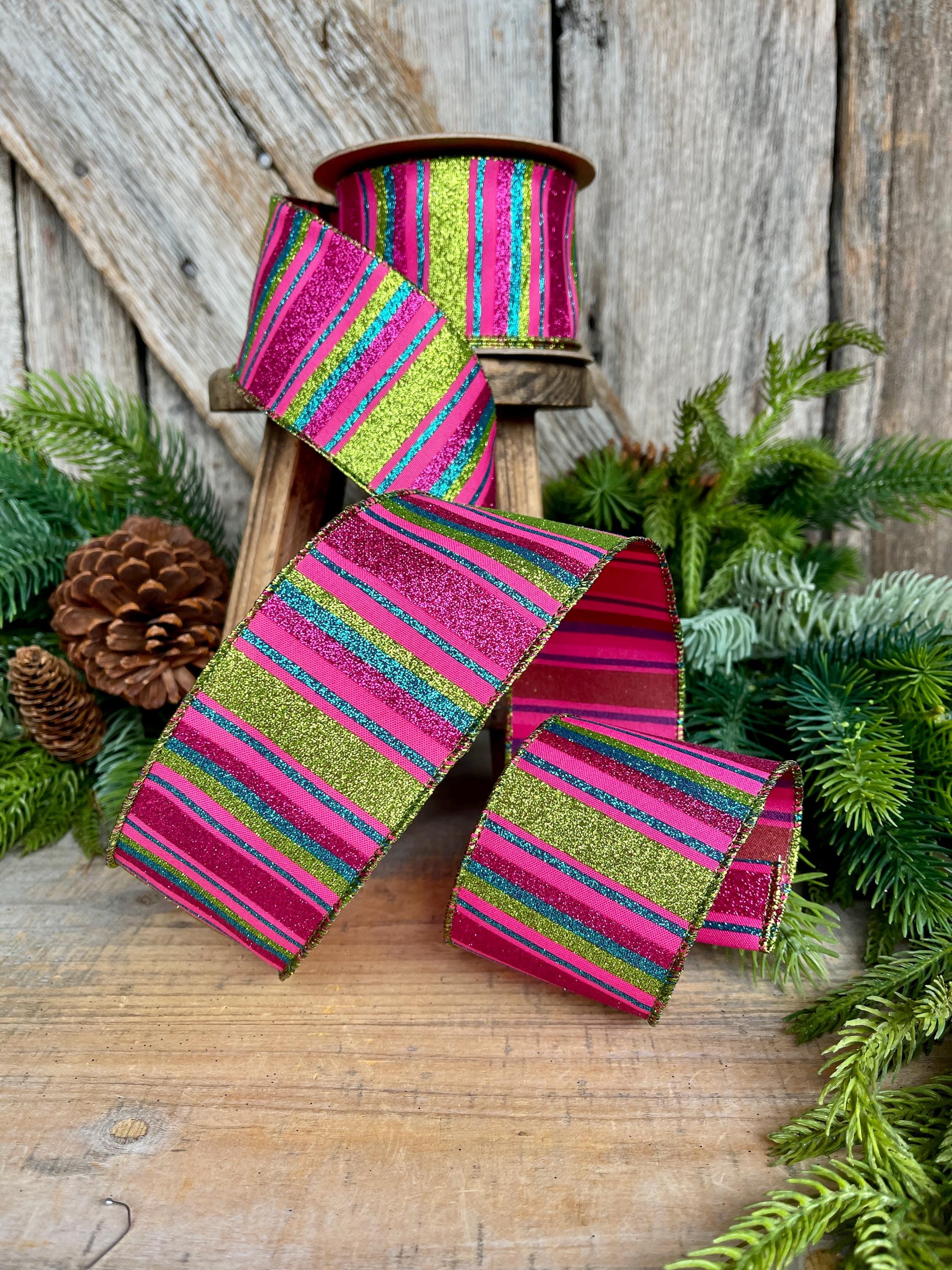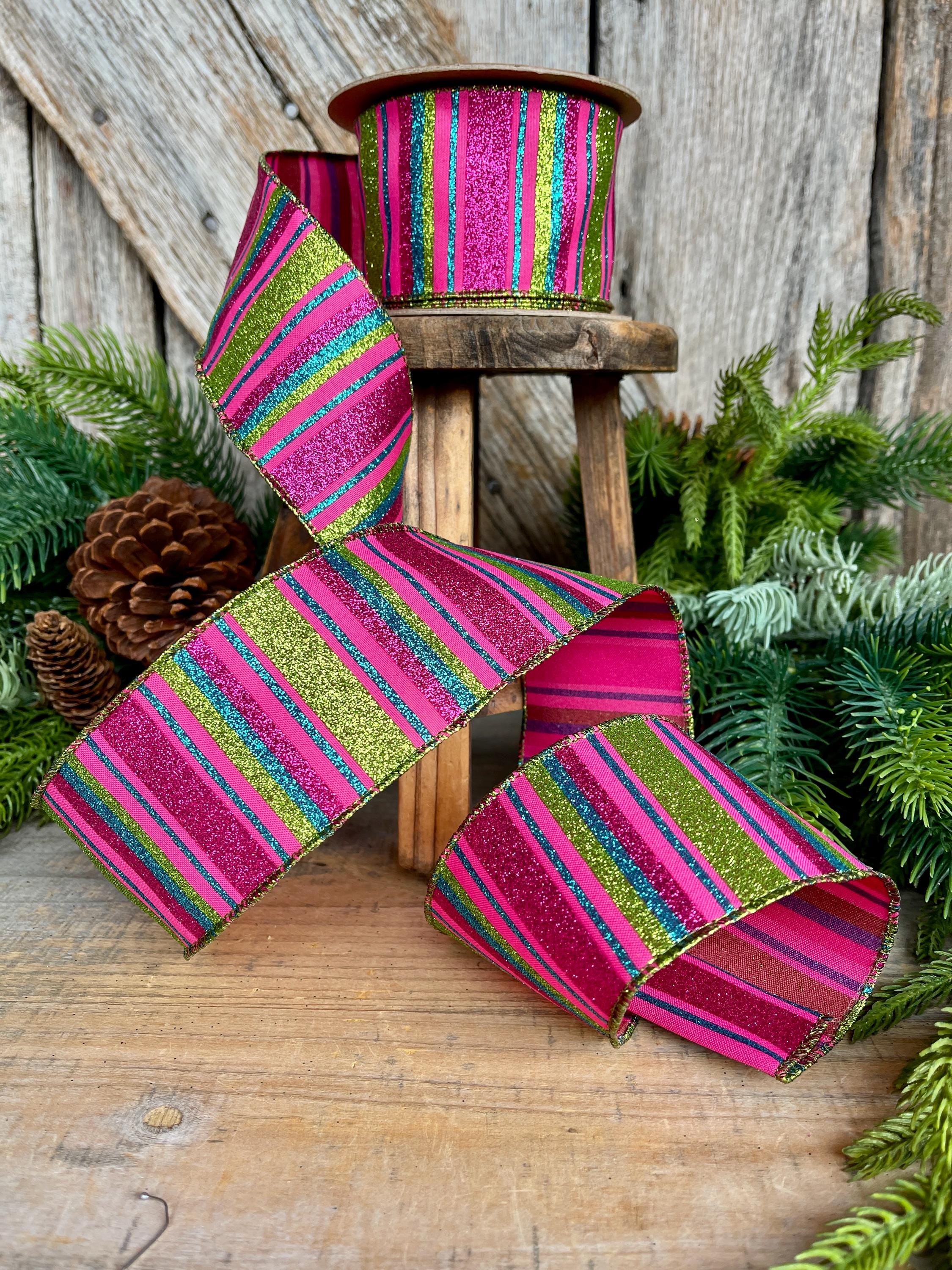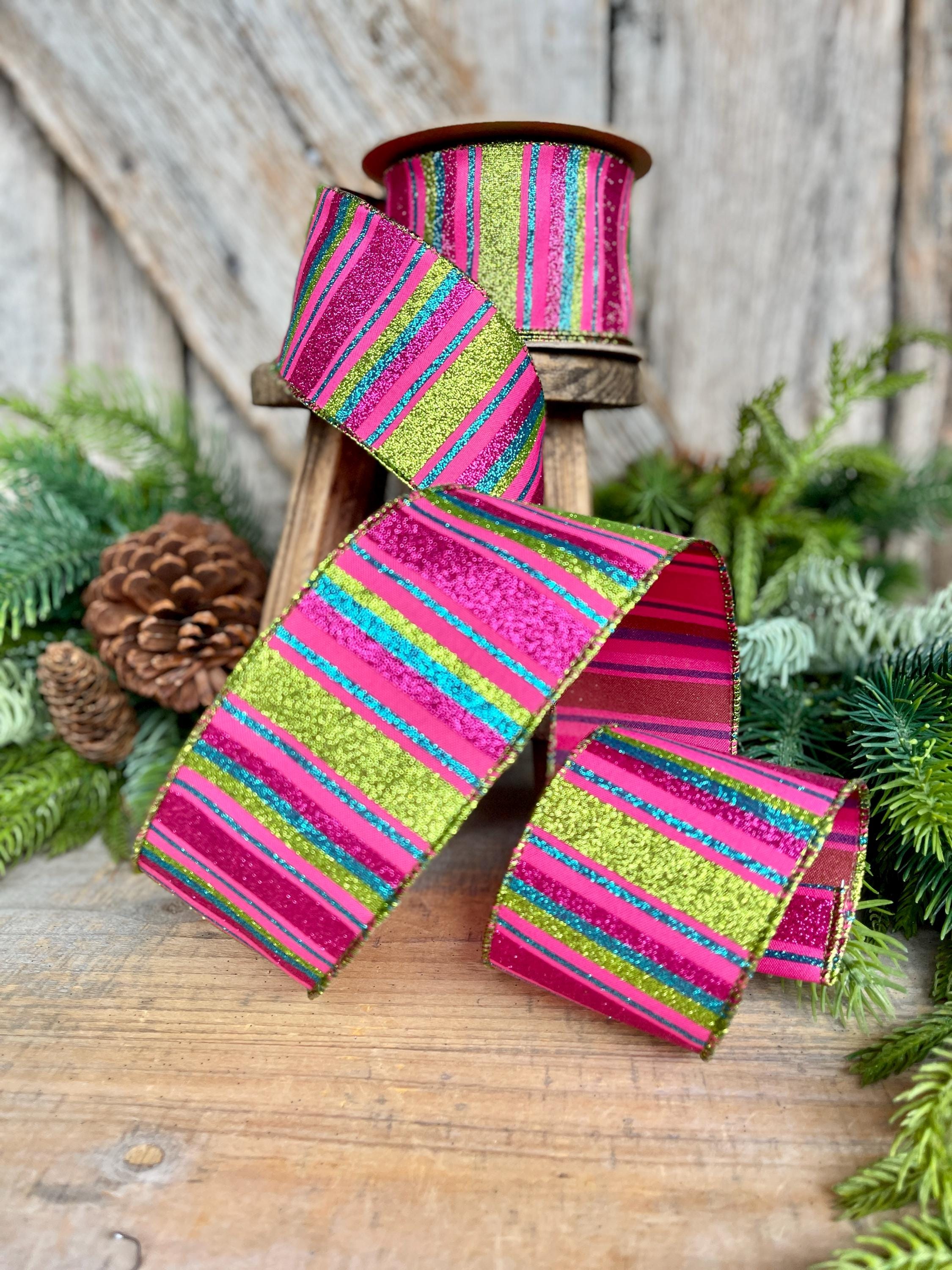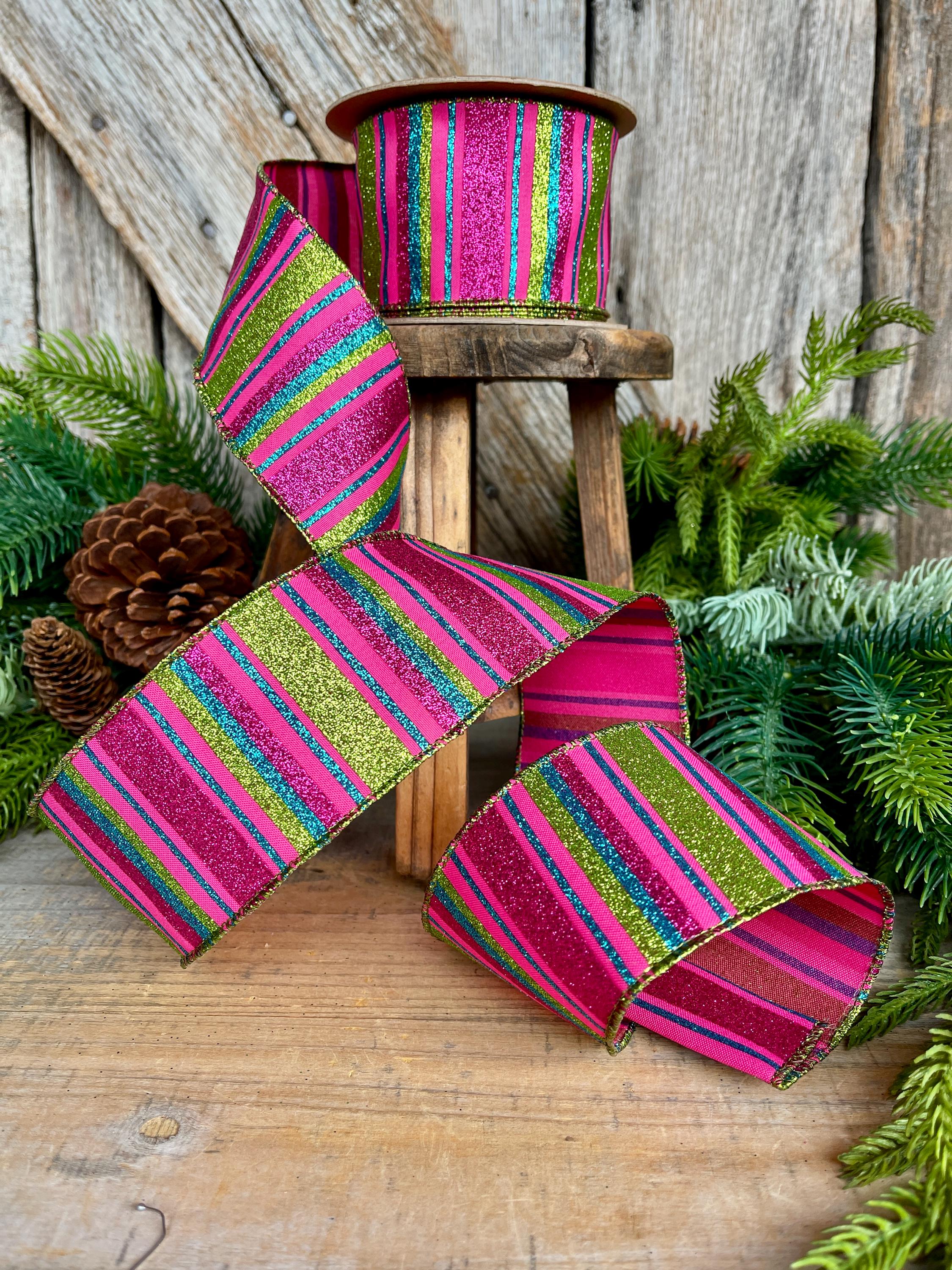 2.5" Hot Pink Lime Turquoise Ribbon, Christmas Ribbon