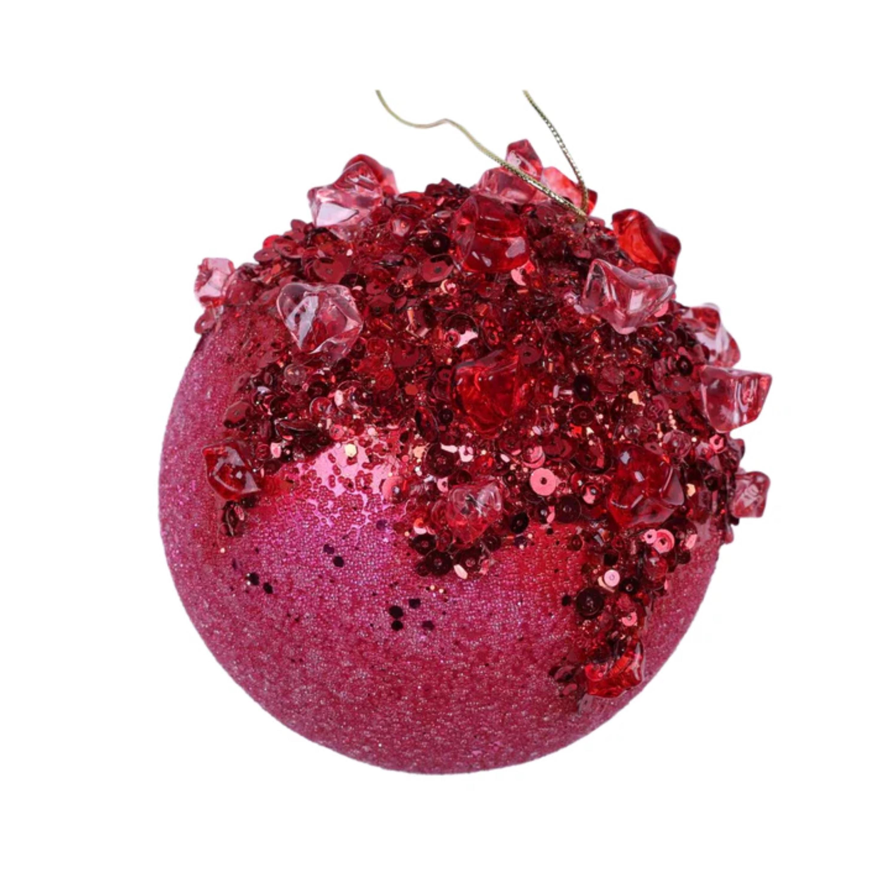 5" Pink Red Ornament, Sugar Crystal Ball Ornament, Farrisilk Ornament