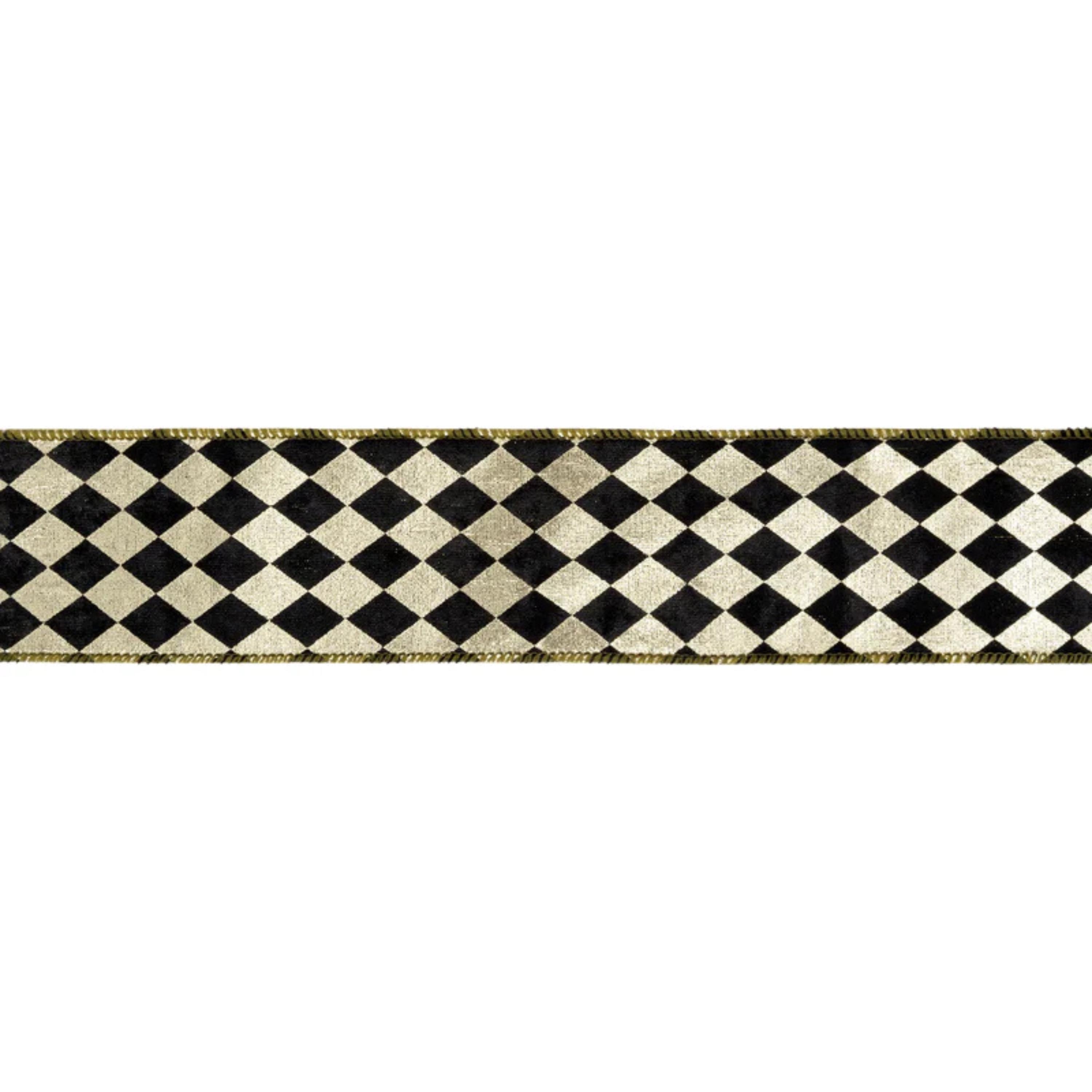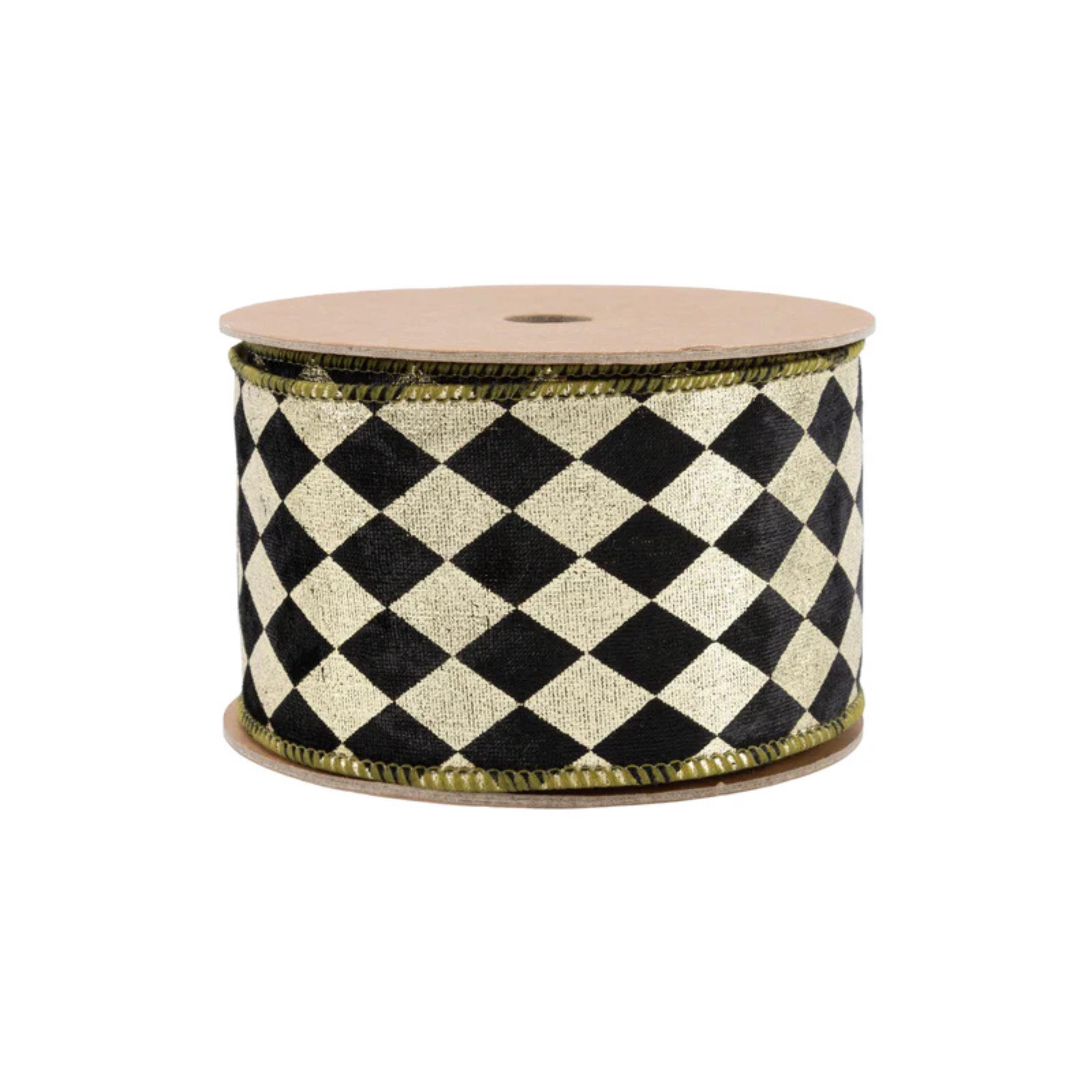 2.5" Black Gold Harlequin Ribbon, Diamond Ribbon, Black Gold Ribbon