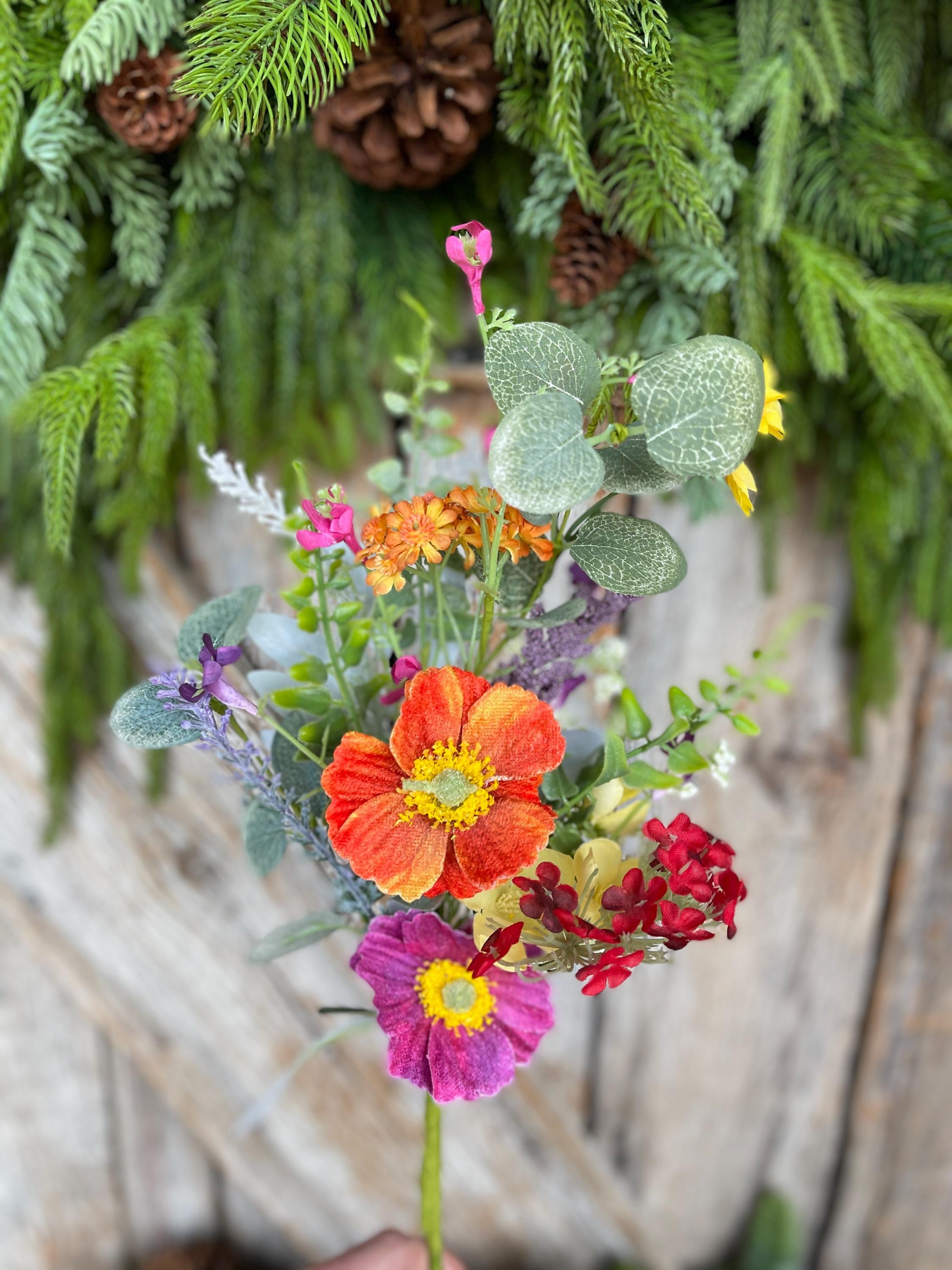 18" Spring Floral Bush, Bright Floral Spray, Artificial Poppy Flowers, Colorful Faux Flowers, Spring Wreath Supply, Floral Arrangement