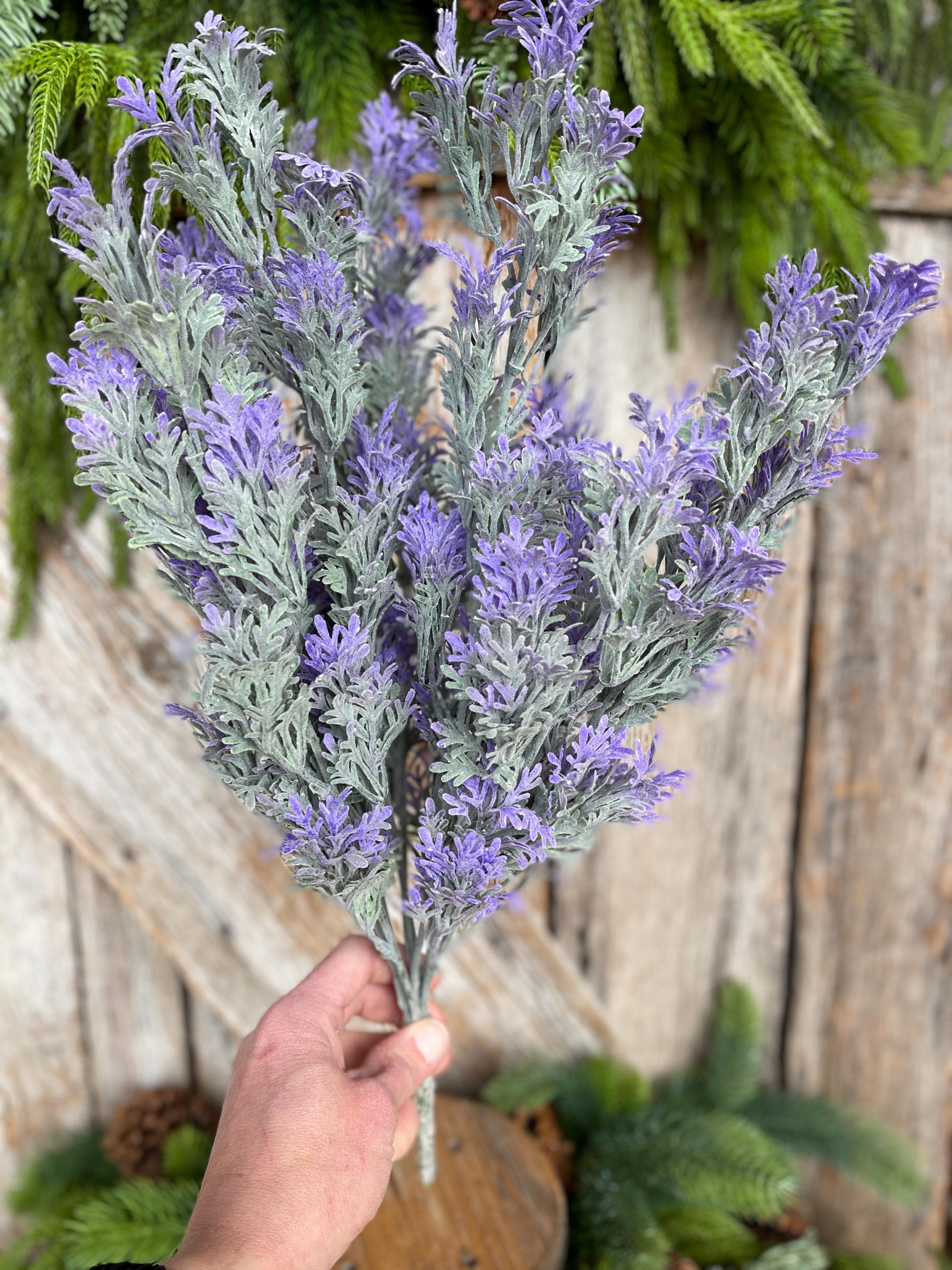 Bring soft color and timeless charm to your décor with this realistic 18” faux lavender bush—perfect for wreaths, arrangements, and everyday styling.