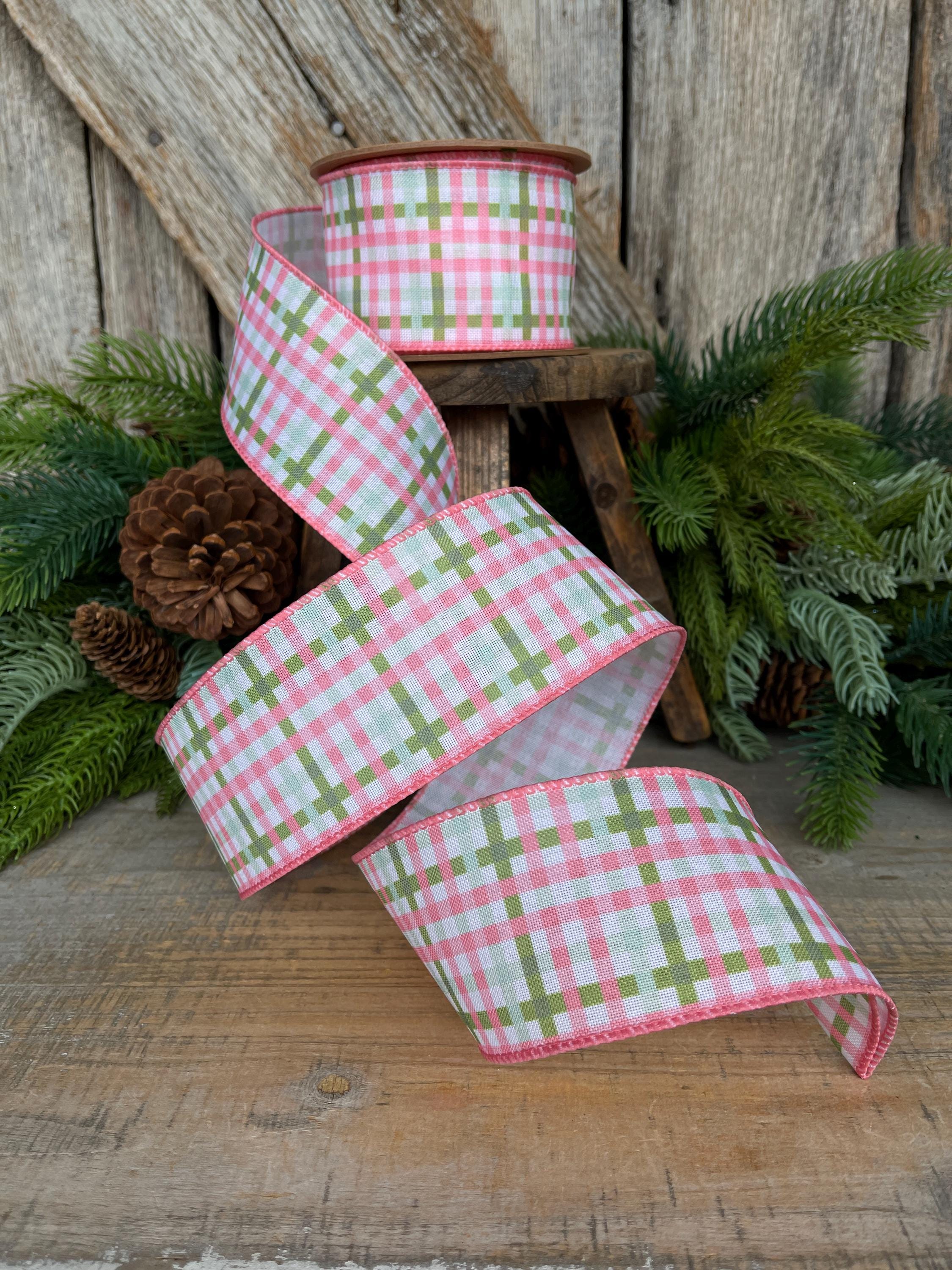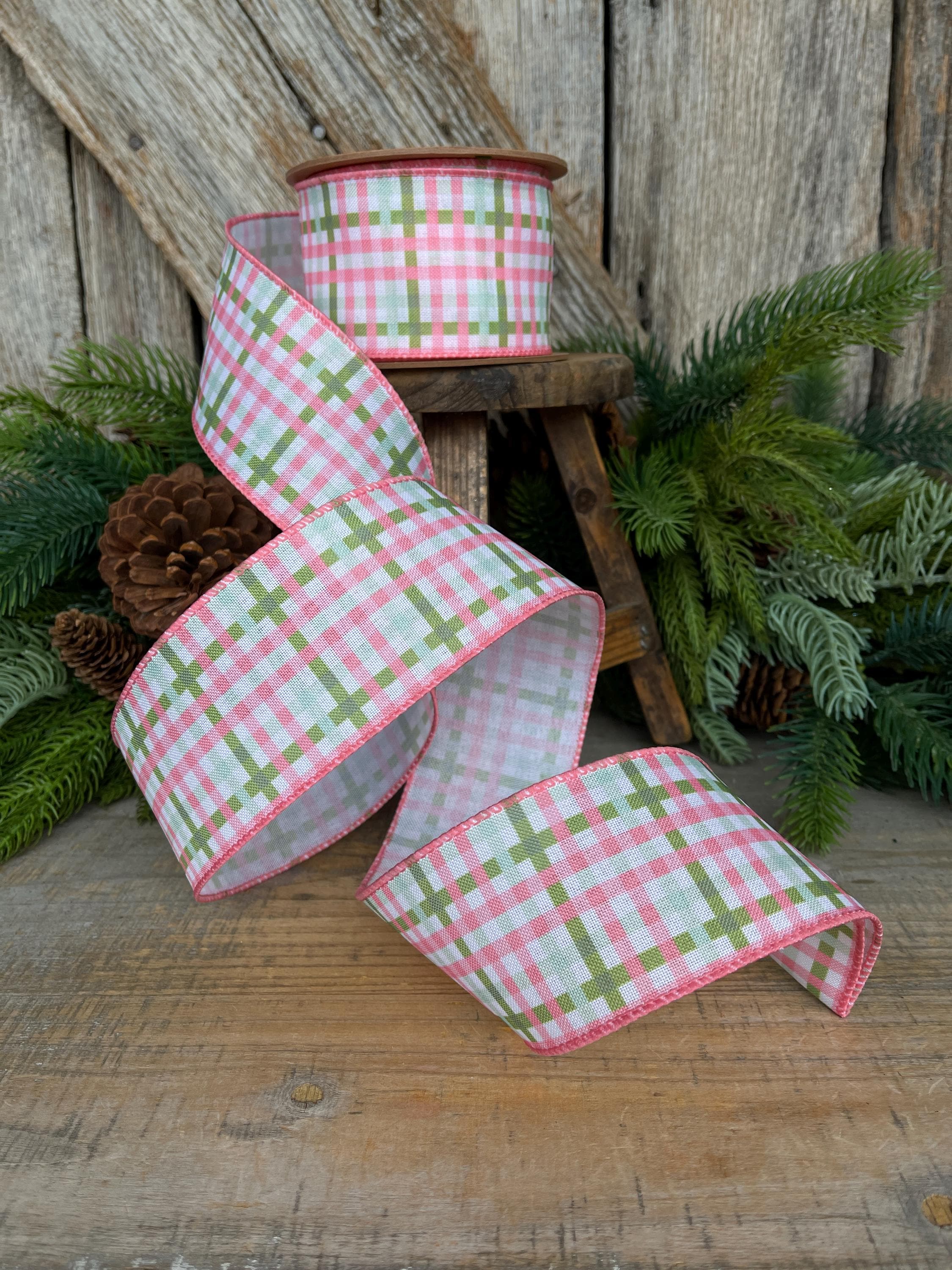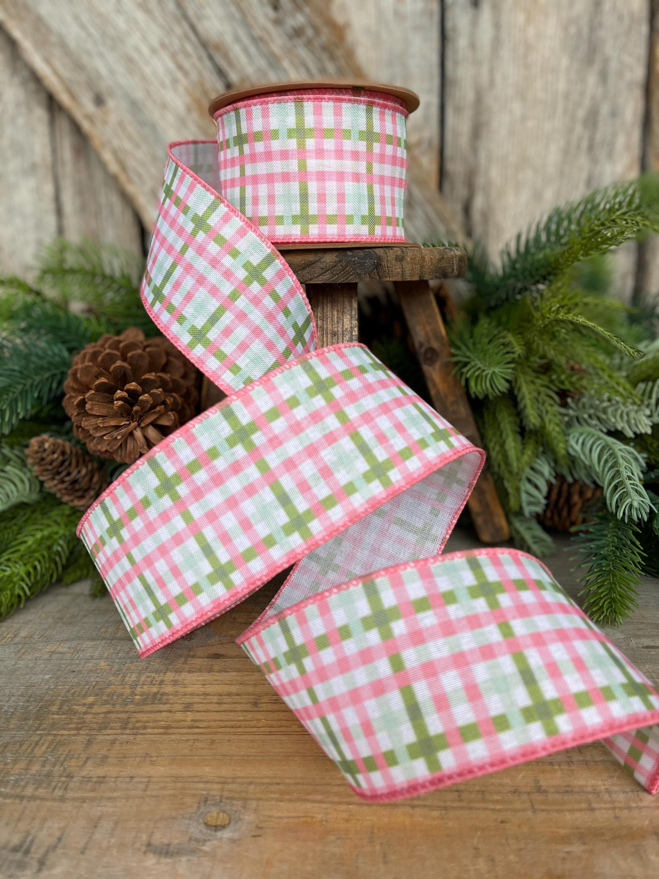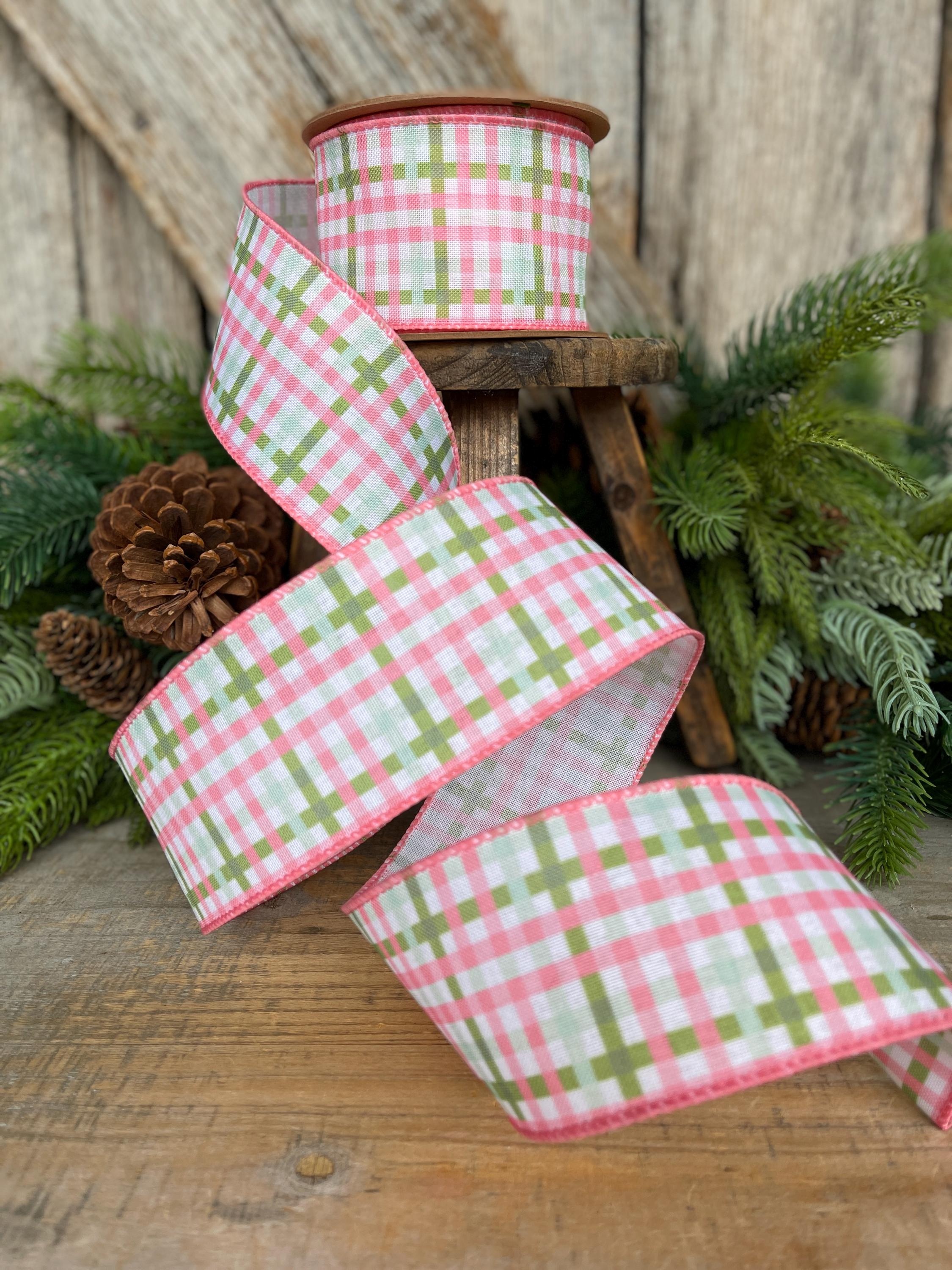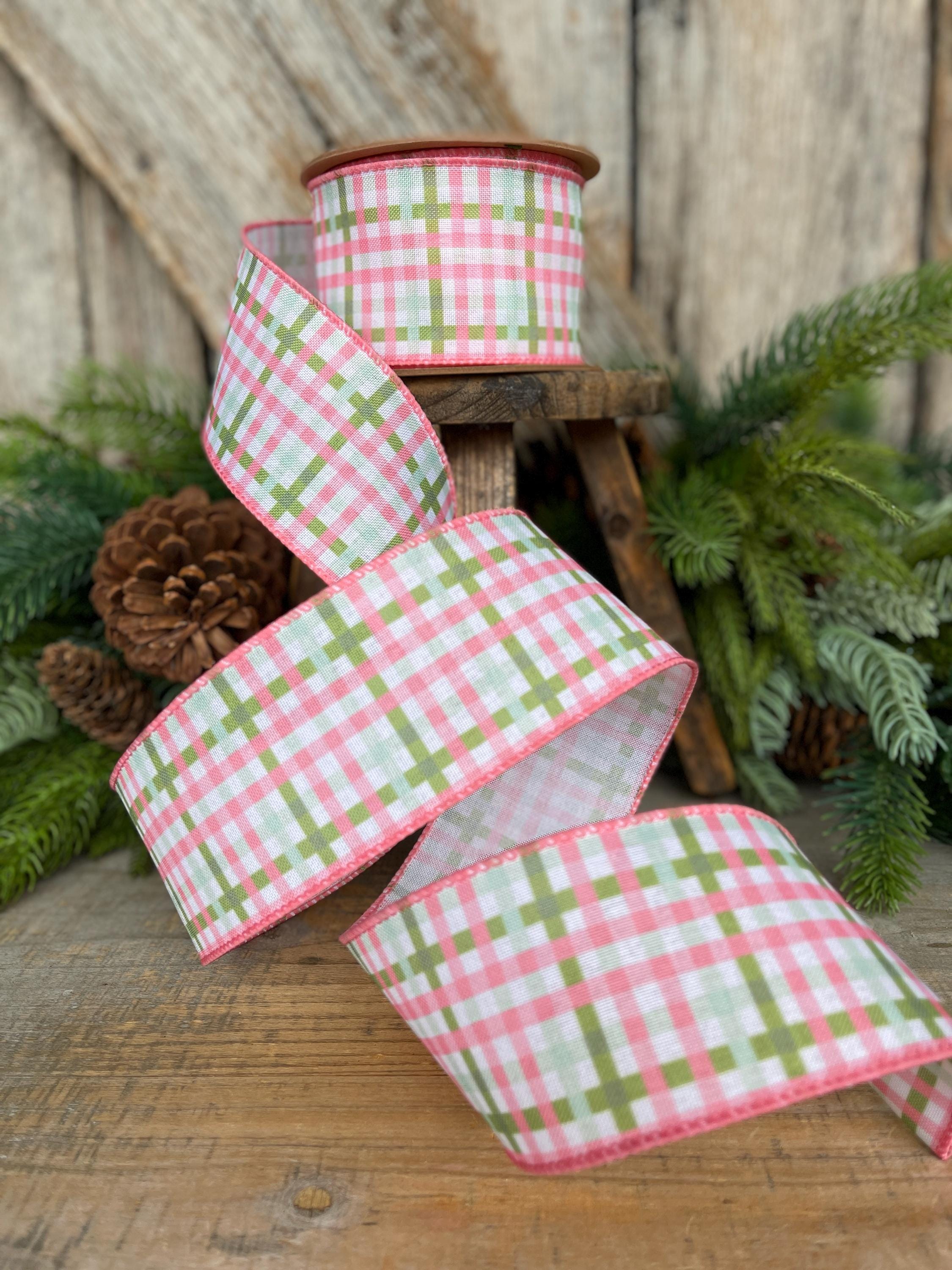 Add a fresh pop of color to your designs with this 2.5 inch pink and green plaid wired ribbon. Featuring a classic plaid pattern with soft pink, crisp white, and fresh green tones, this ribbon is perfect for spring, Easter, Christmas, and year-round wreath designs. The wired edge allows for easy shaping and holds beautiful bows effortlessly.