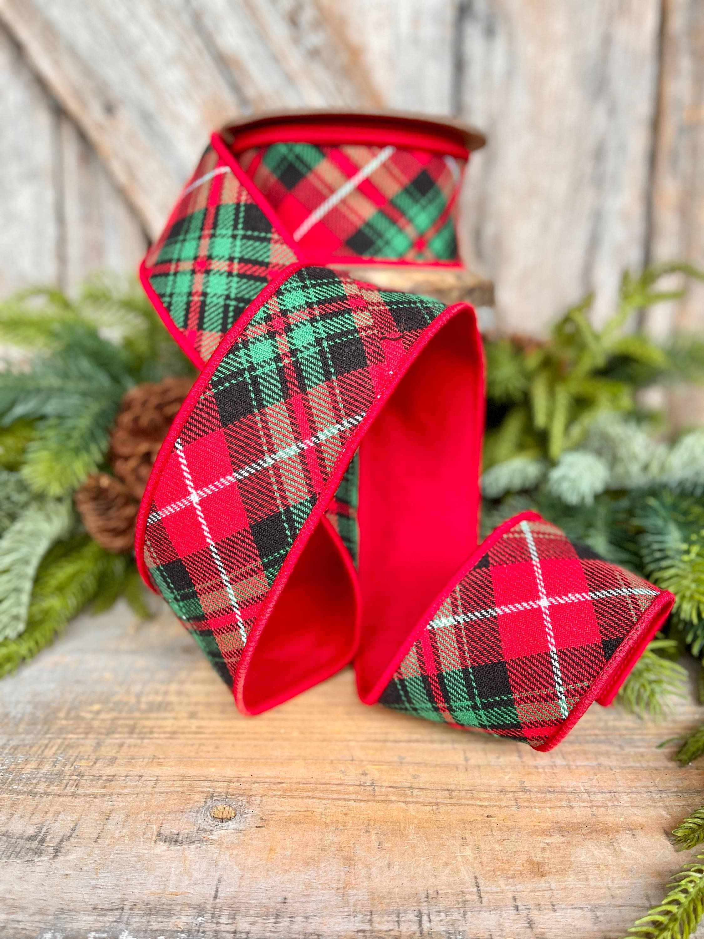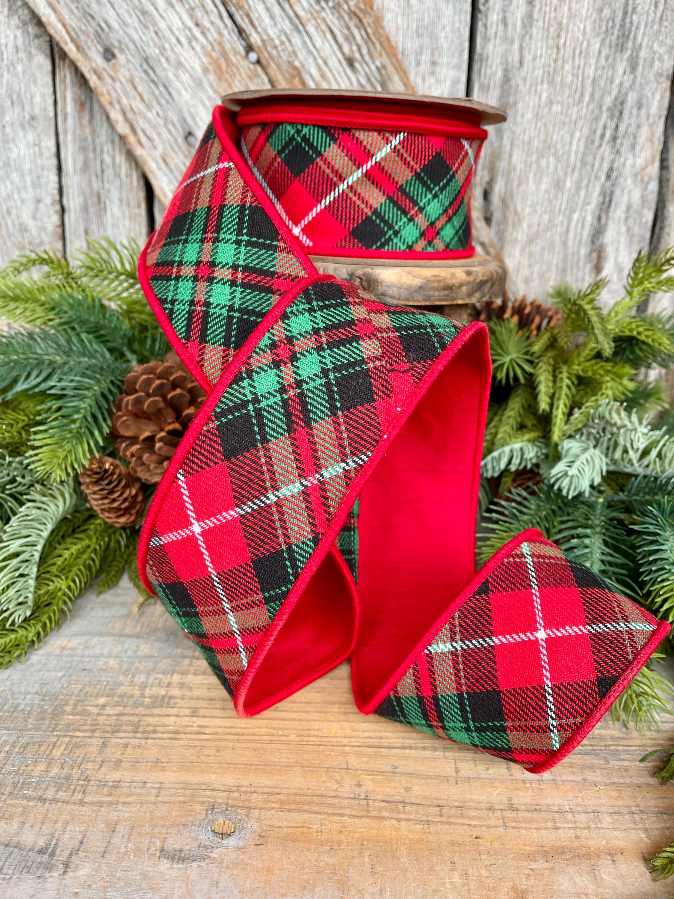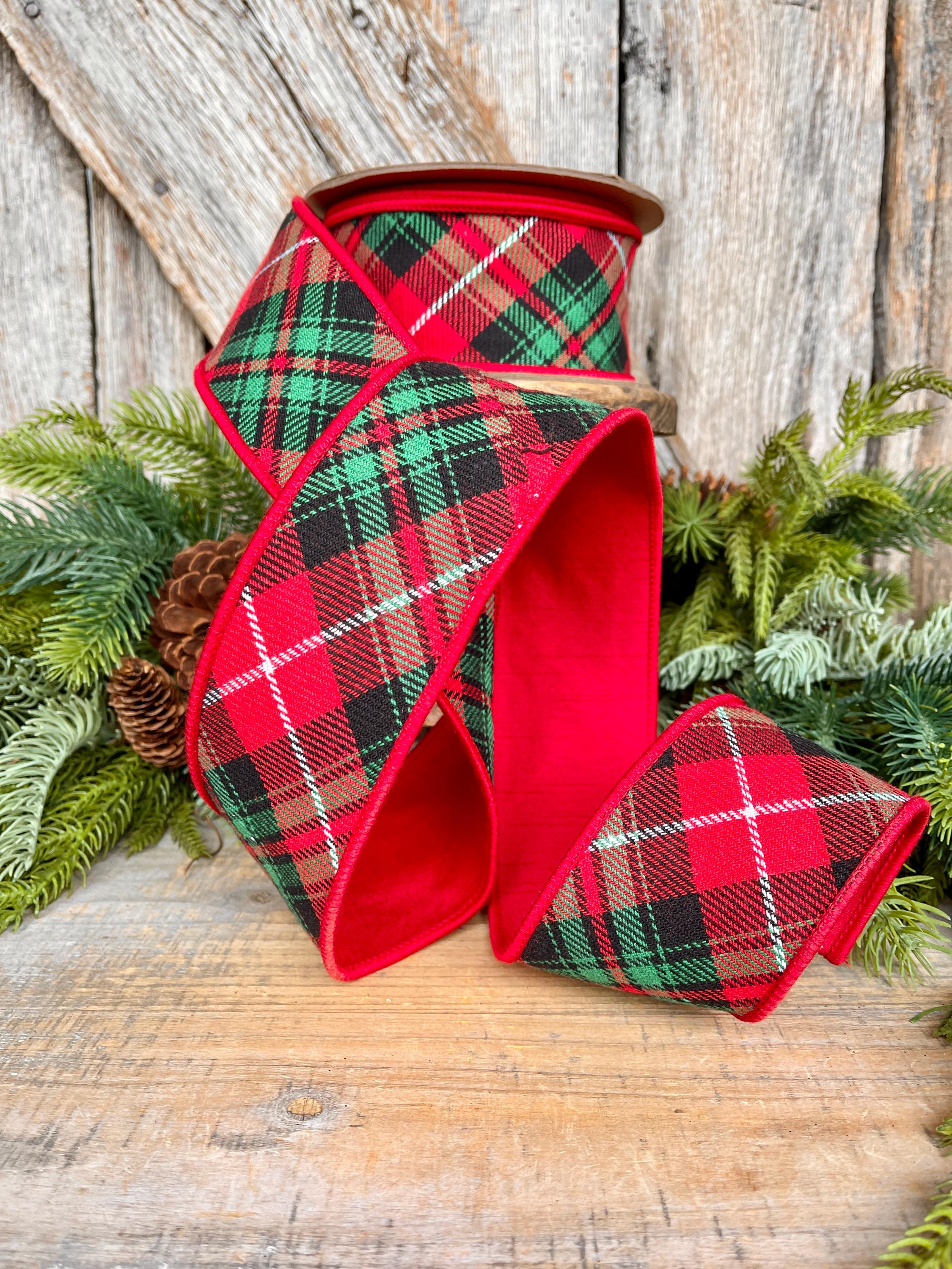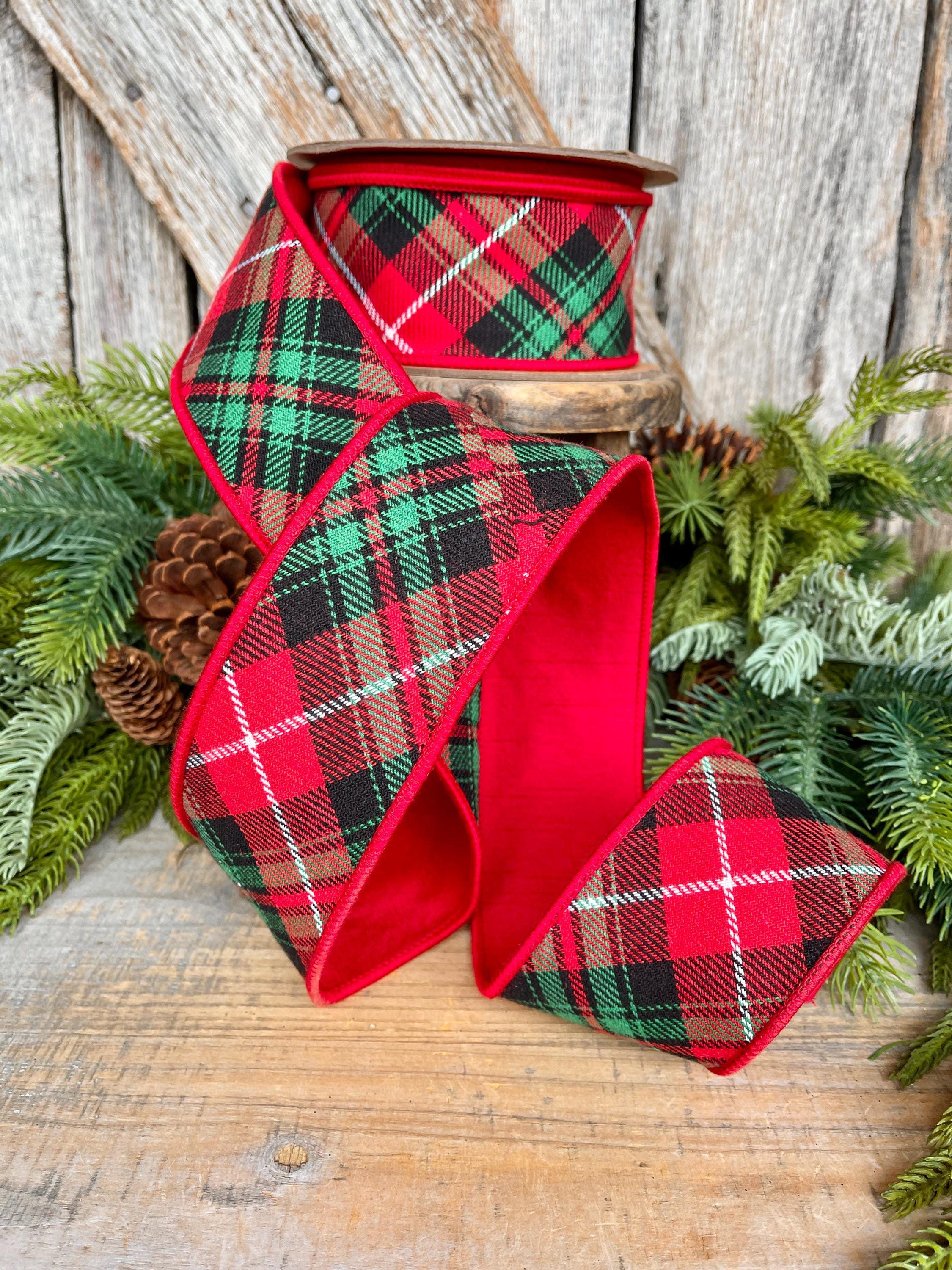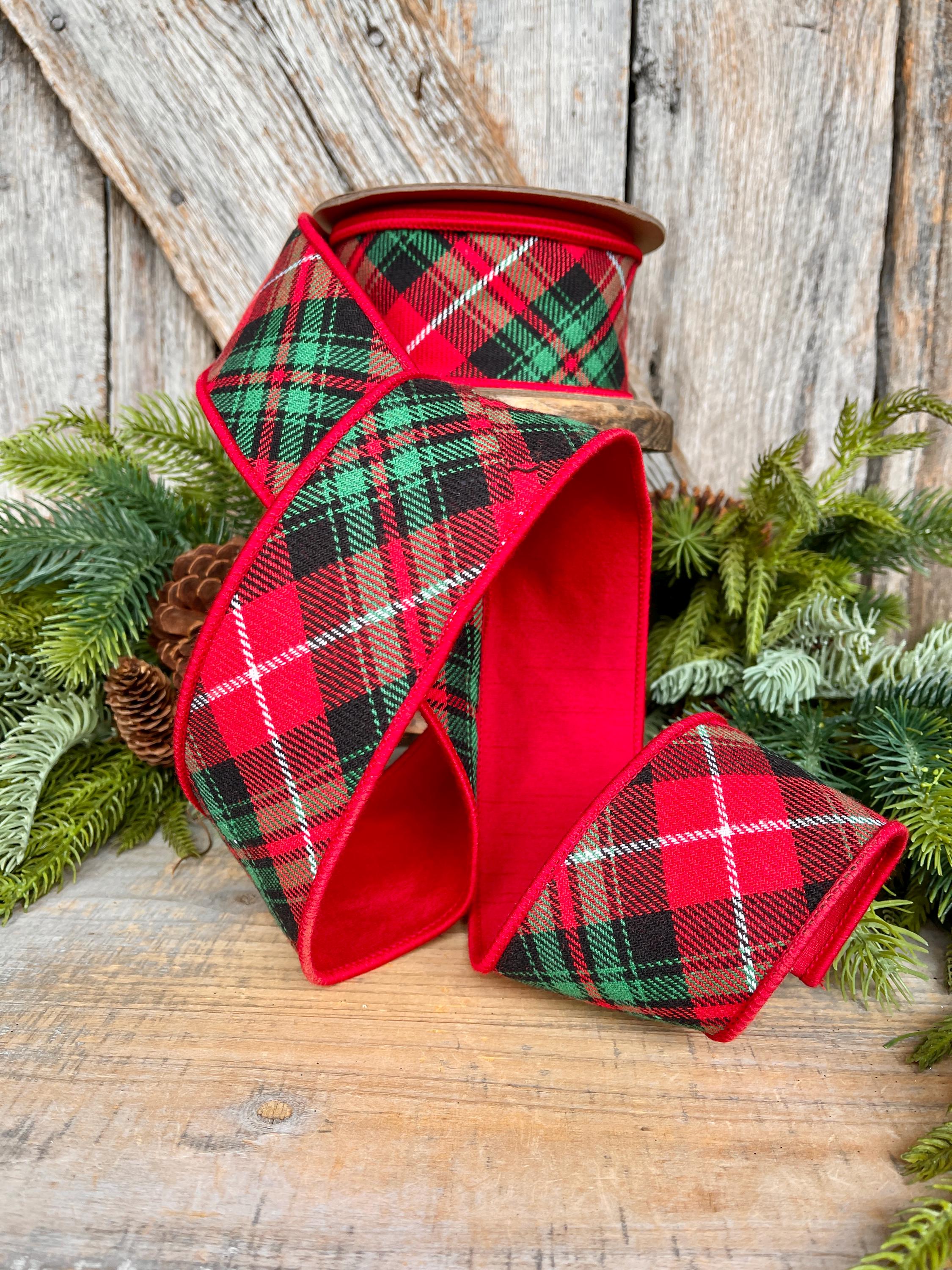 2.5" Christmas Plaid Ribbon, Green Plaid Ribbon, Traditional Christmas Ribbon