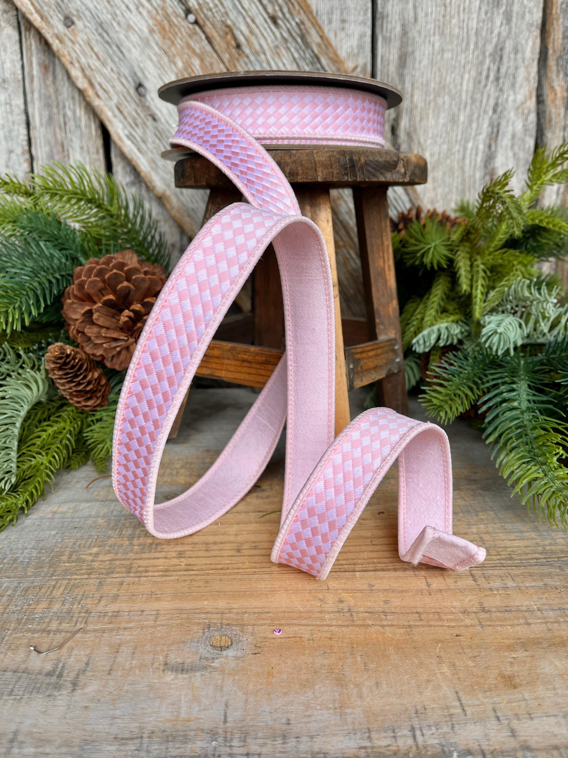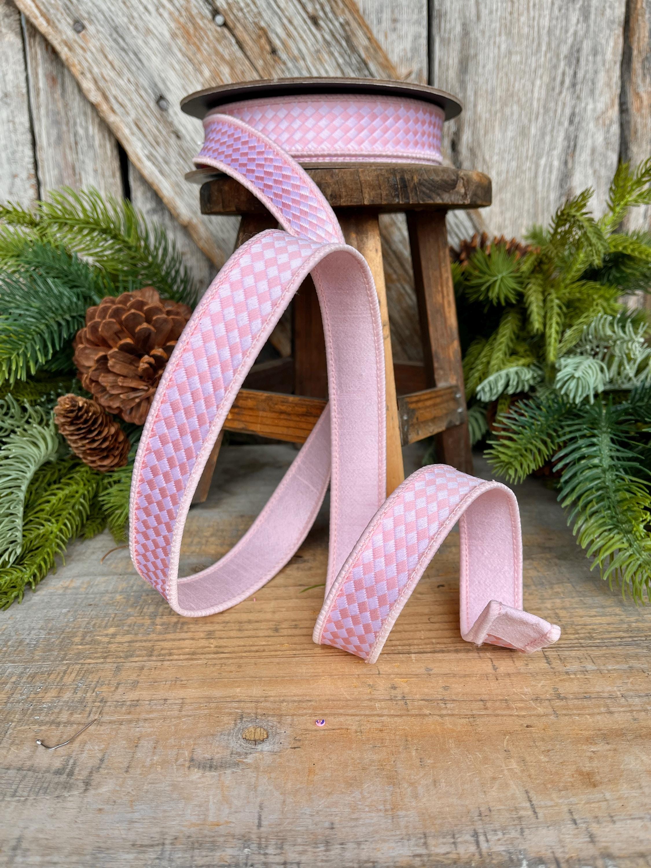 1" Pink Mini Check Ribbon, Checkerboard Ribbon, Pink Ribbon