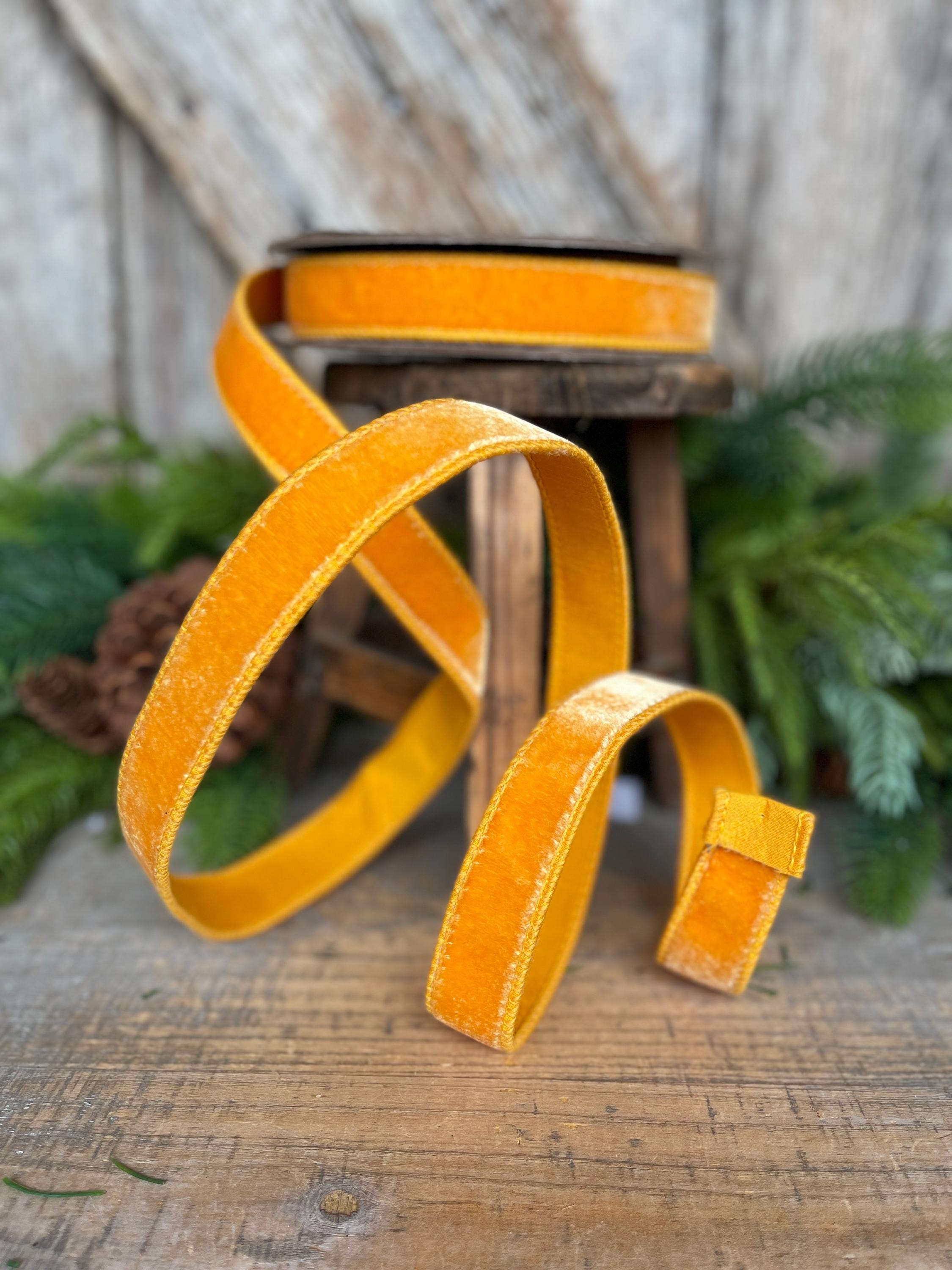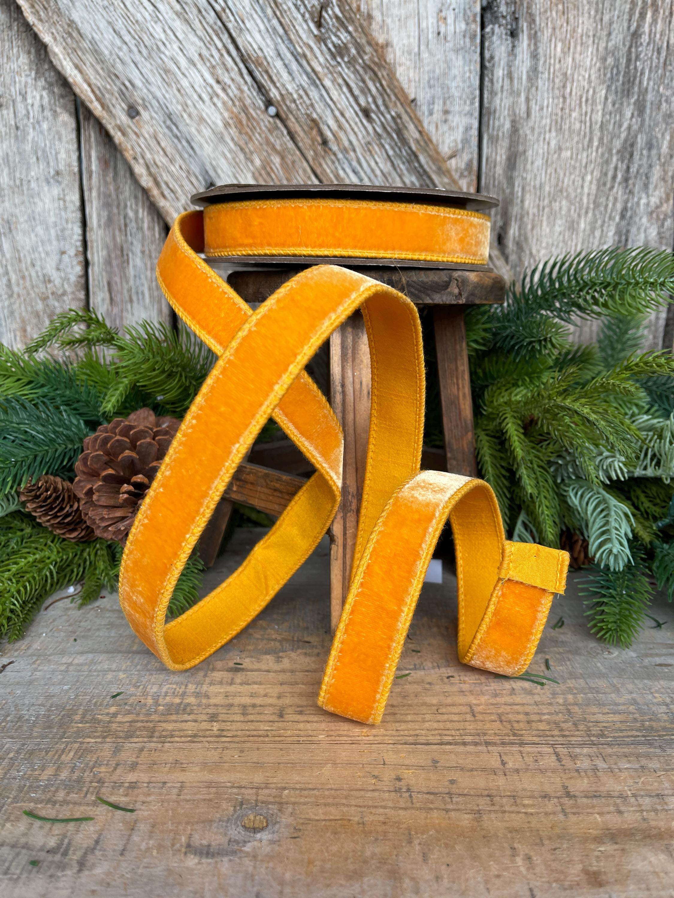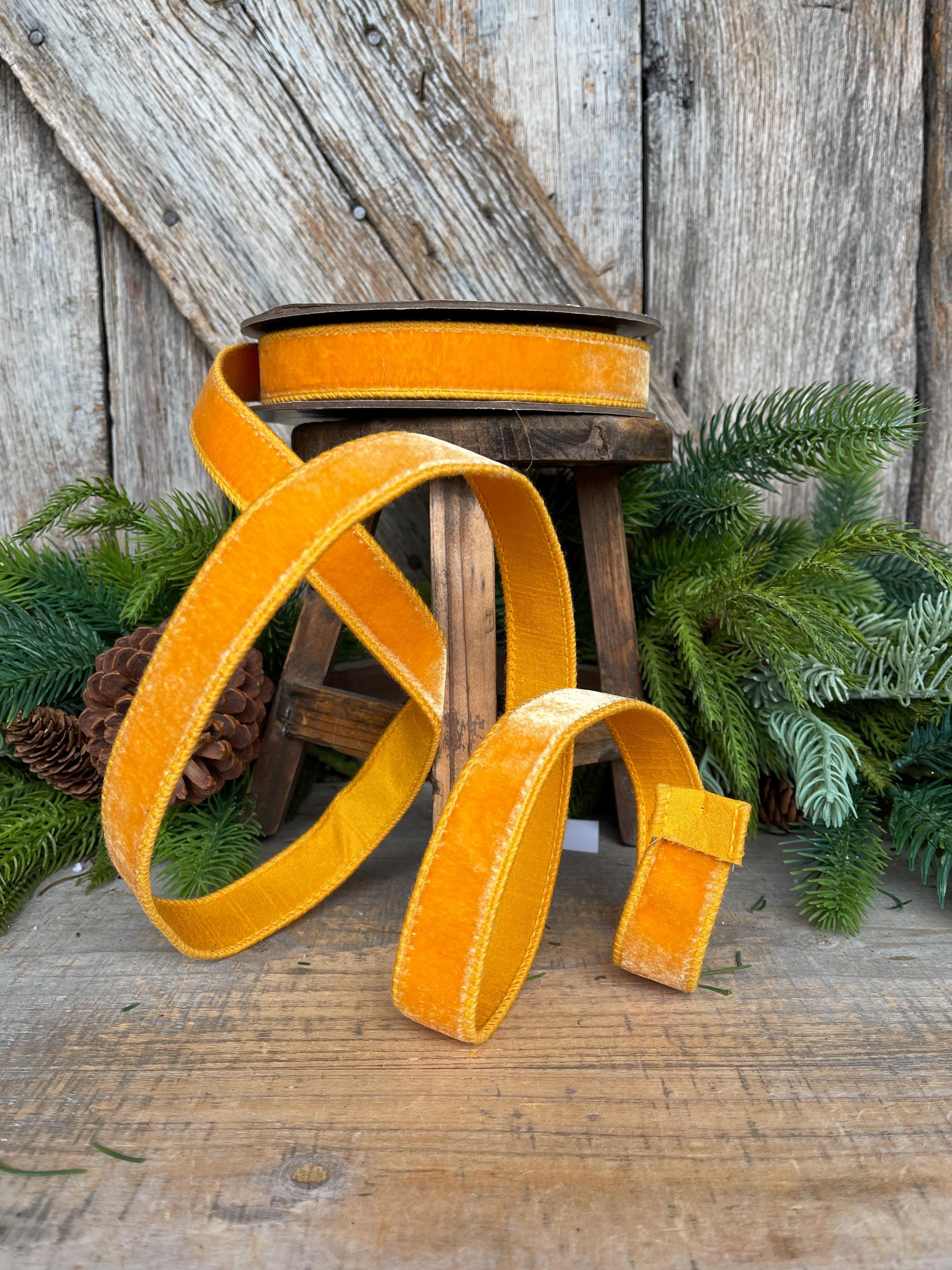 1" Golden Yellow Ribbon, Wired Velvet Ribbon, Honey Golden Velvet