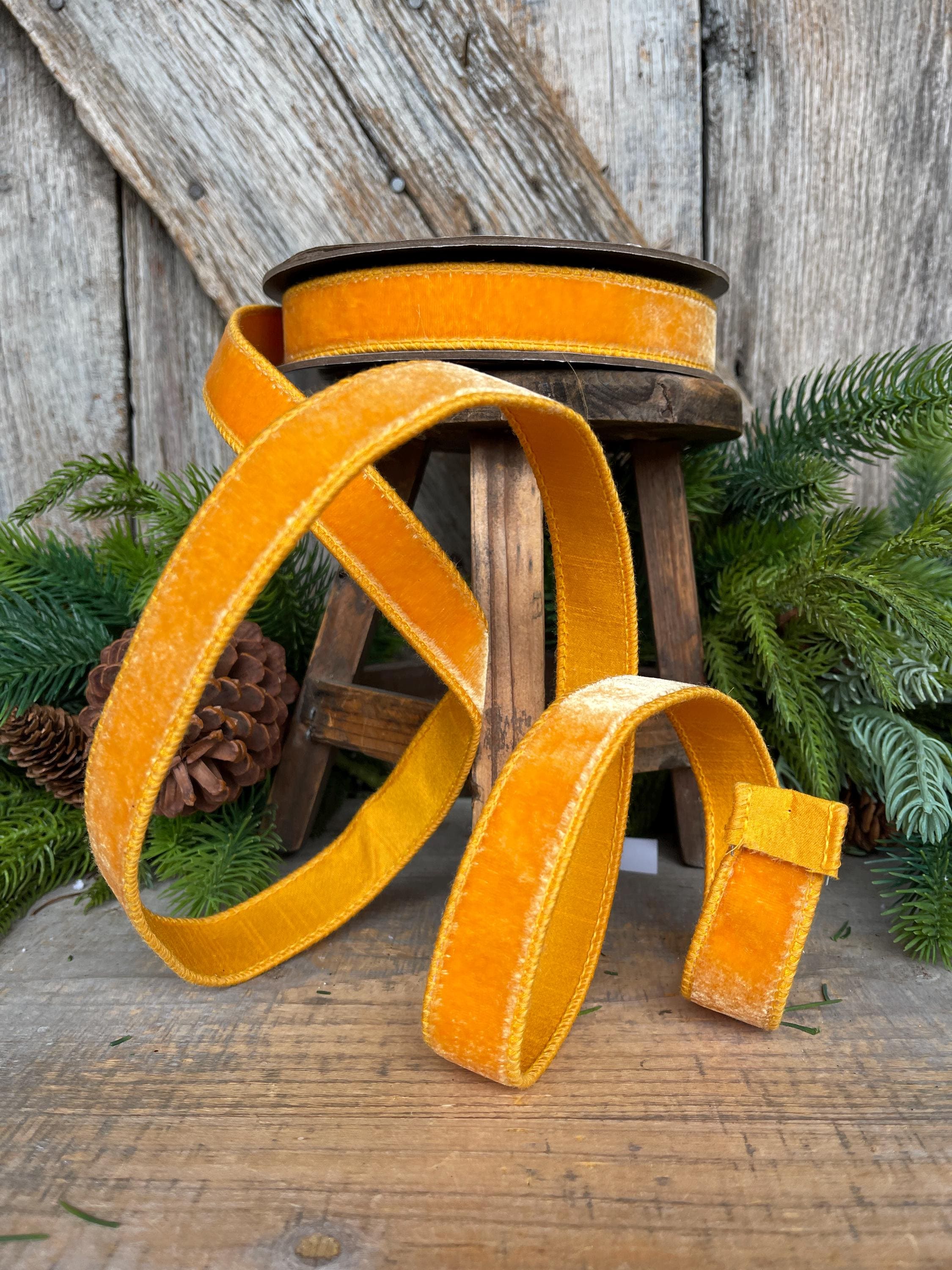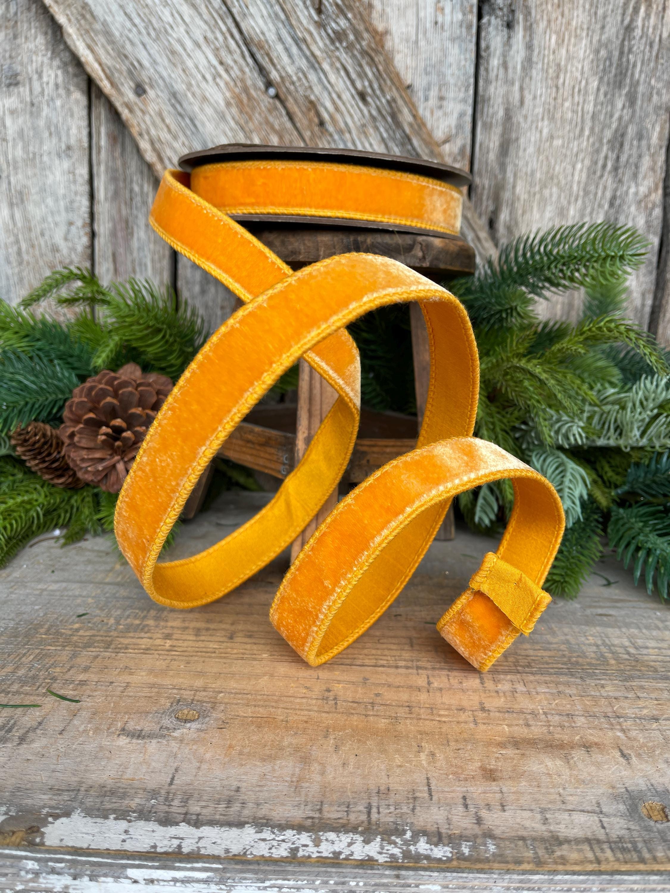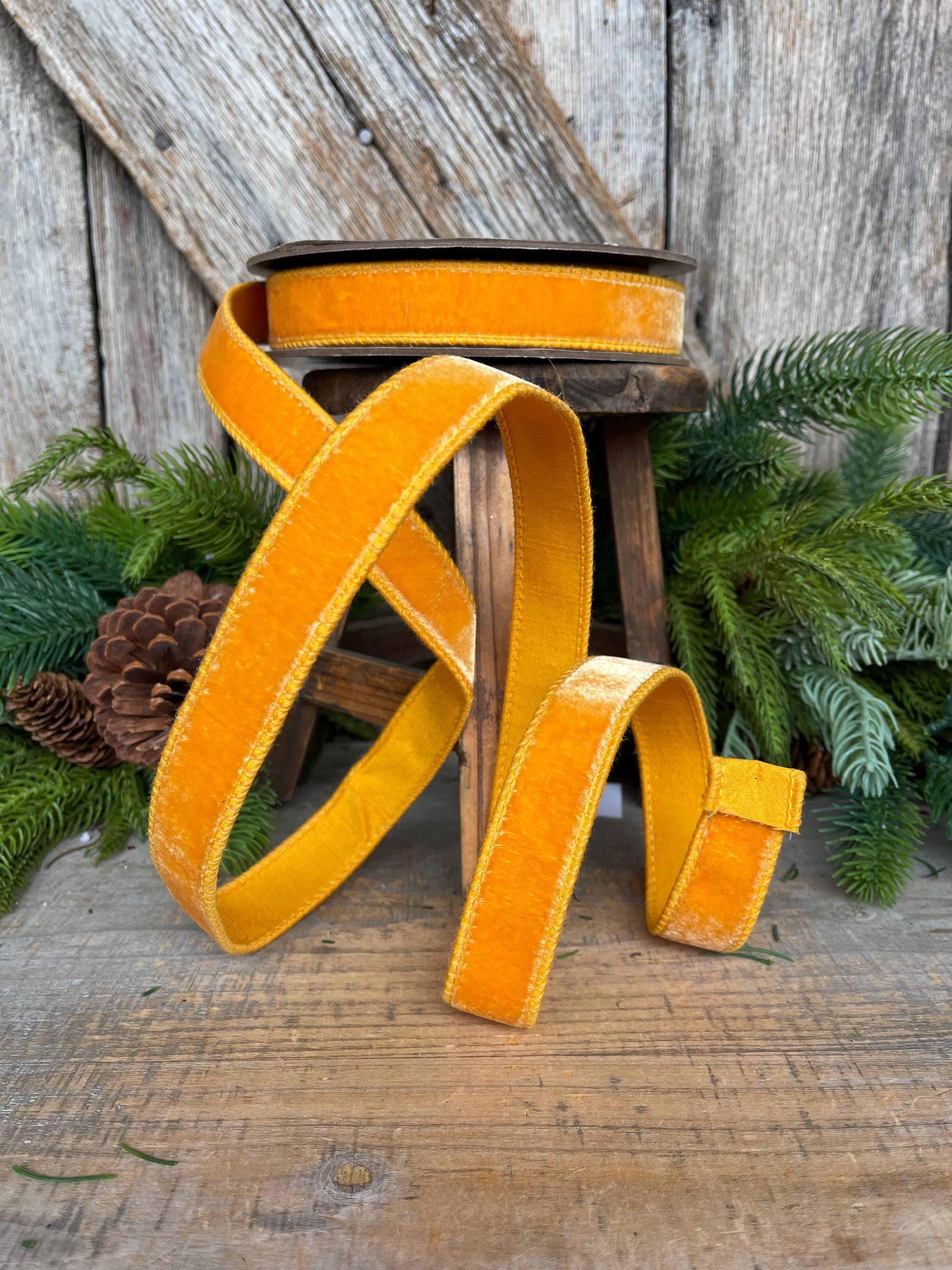 1" Golden Yellow Ribbon, Wired Velvet Ribbon, Honey Golden Velvet